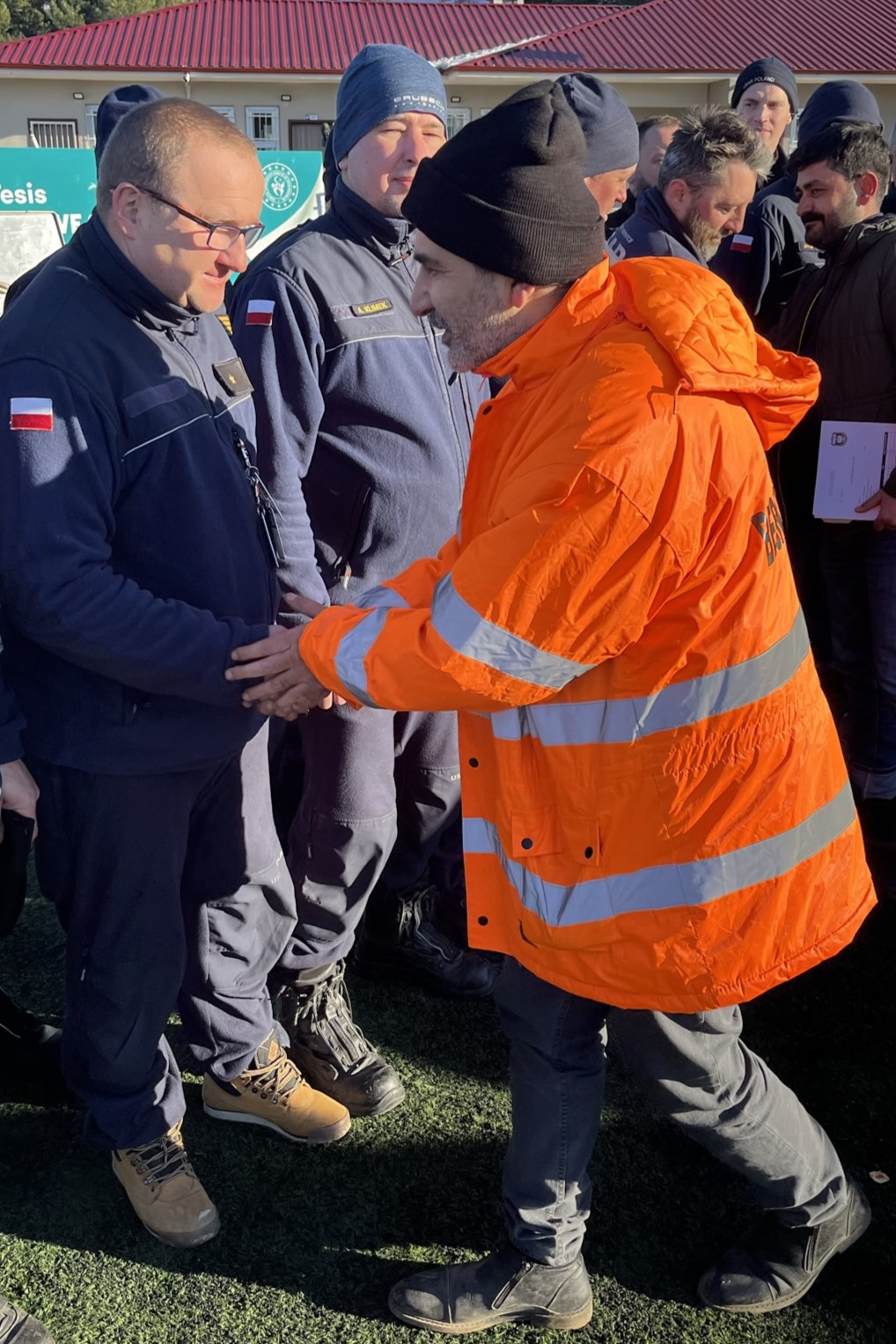 Z polskimi strażakami w bazie operacji spotkał się w poniedziałek Mer m. Besni. Przybył na spotkanie aby podziękować im za akcję poszukiwawczo – ratowniczą, wielkie zaangażowanie i każde uratowane ludzkie istnienie.