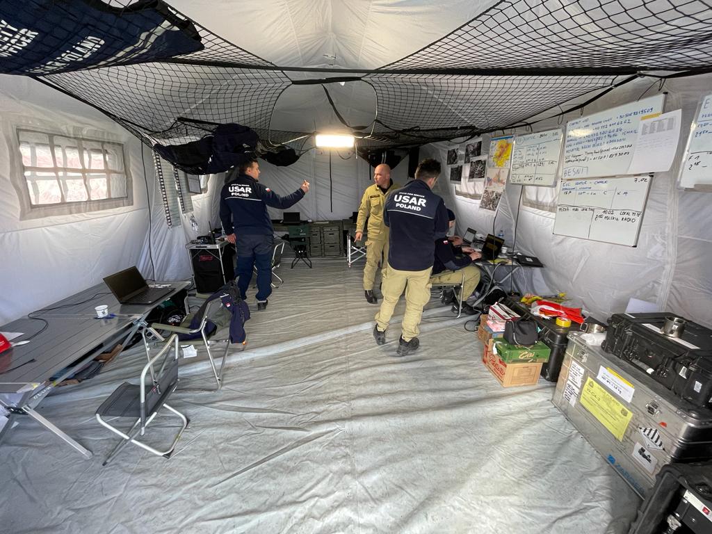 Strażacy rozpoczęli przygotowania do jak najszybszego wejścia zespołów ratowniczych do działań oraz równolegle rozpoczęli budowanie bazy operacji dla USAR Poland.