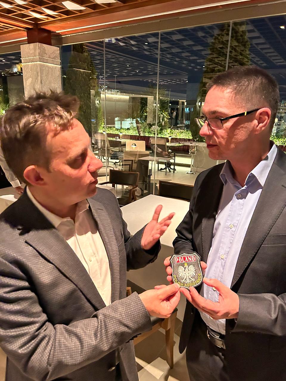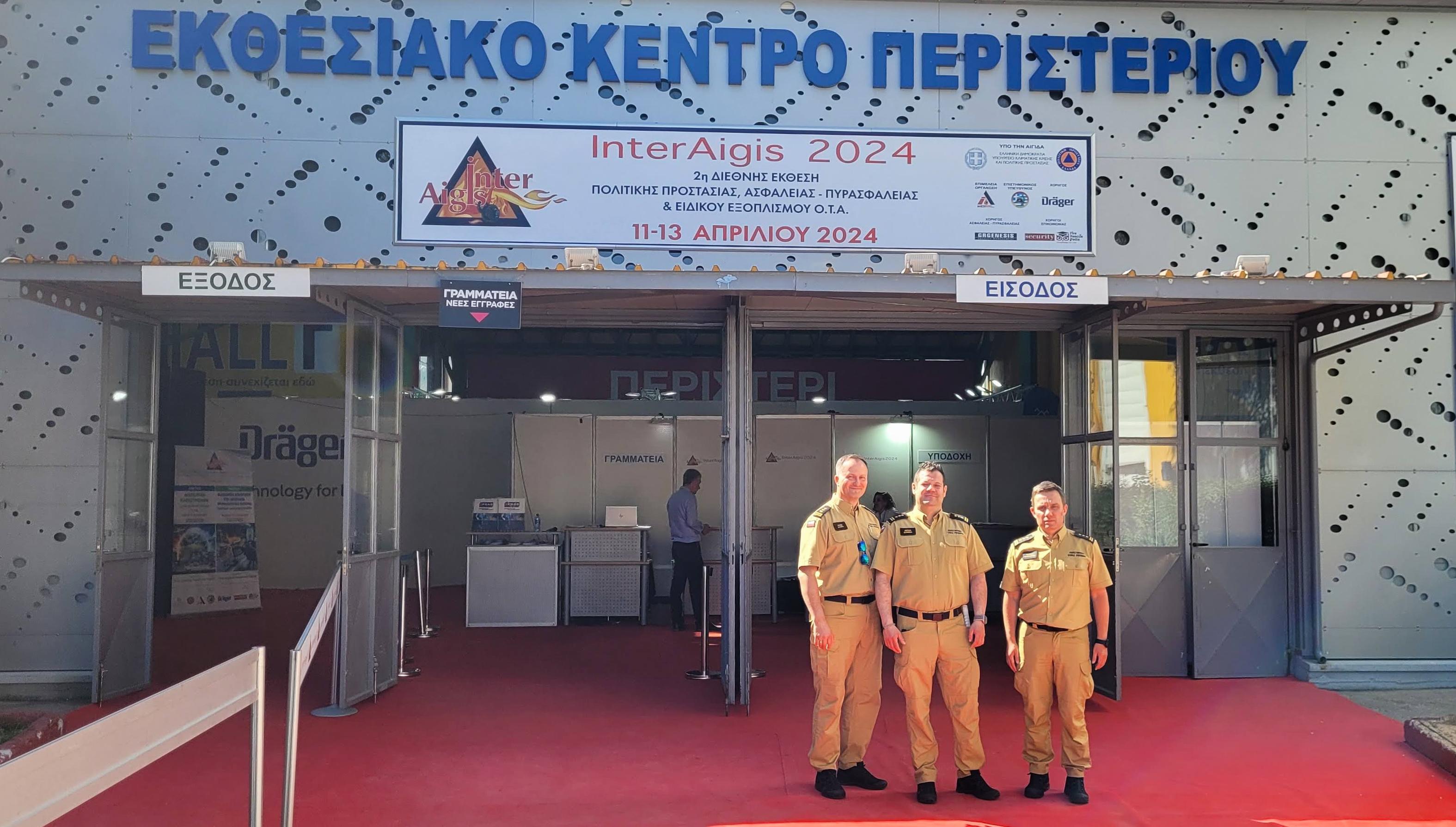 Oficjalne spotkania z kierownictwem Komendy Głównej Straży Pożarnej w Atenach i greckimi strażakami połączone zostały przez gospodarzy z pierwszymi targami pożarniczymi pn. Inter Aigis 2024, które odbywały się w tym czasie na terenie Grecji, a w których uczestniczyli również polscy wystawcy z rodzimymi „strażackimi” produktami. Wartym odnotowania jest fakt, że współautorem targów był Pan Dariusz Mąkol, na co dzień piastujący stanowisko wiceprezesa Polsko-Greckiej Izby Przemysłowo-Handlowej, który podczas wspomnianych pożarów w 2021 i w 2023 roku, był nieustannie obecny z naszymi strażakami. To w dużej mierze dzięki jego zaangażowaniu i pomocy, logistyka modułu GFFFV Poland mogła funkcjonować bez najmniejszych problemów, a naprawy sprzętu wykonywane były w rekordowym tempie.