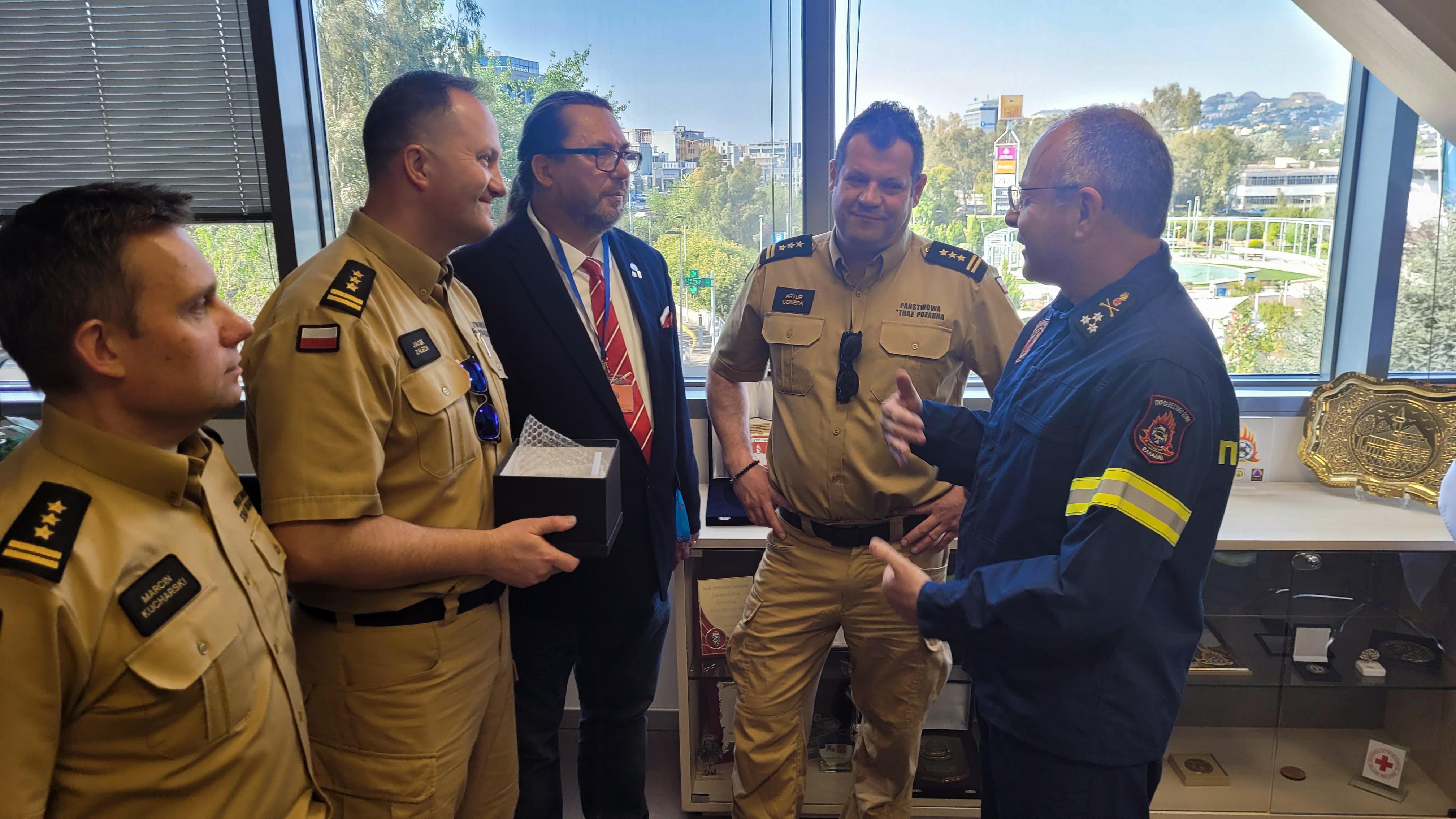 Podczas spotkania z komendantem głównym Straży Pożarnej w Grecji, generałem porucznikiem Teodorosem Vayasem, jego zastępcą generałem porucznikiem Nikolaosem Roumeliotisem oraz szefem Sztabu Straży Pożarnej w Grecji generałem porucznikiem Atanazym Balafasem, polscy strażacy potwierdzili stronie greckiej swoją gotowość do niesienia naszej pomocy ratowniczej, jeśli tylko będzie taka potrzeba, ze szczególnym uwzględnieniem nawiedzających południe Europy, pożarów wielkopowierzchniowych.