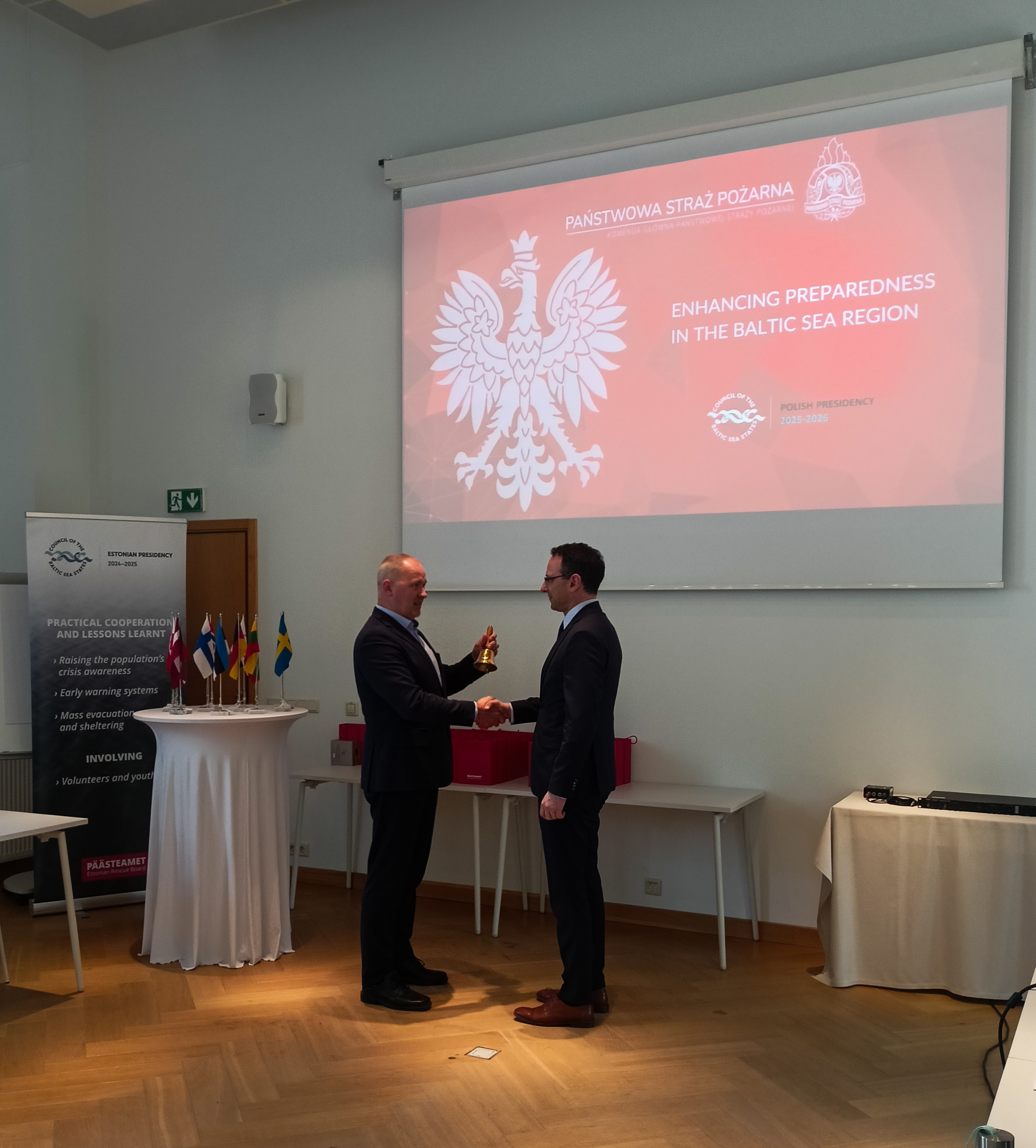 Podczas spotkania Margo Klaos, Szef Estońskiego Zarządu Ratownictwa (Paasteamet) - estoński Dyrektor Generalny Ochrony Ludności, oficjalnie przekazał symboliczny dzwon prezydencji Polsce, na ręce nadbryg. Wojciecha Kruczka, która jako kolejna obejmie przewodnictwo w RPMB.