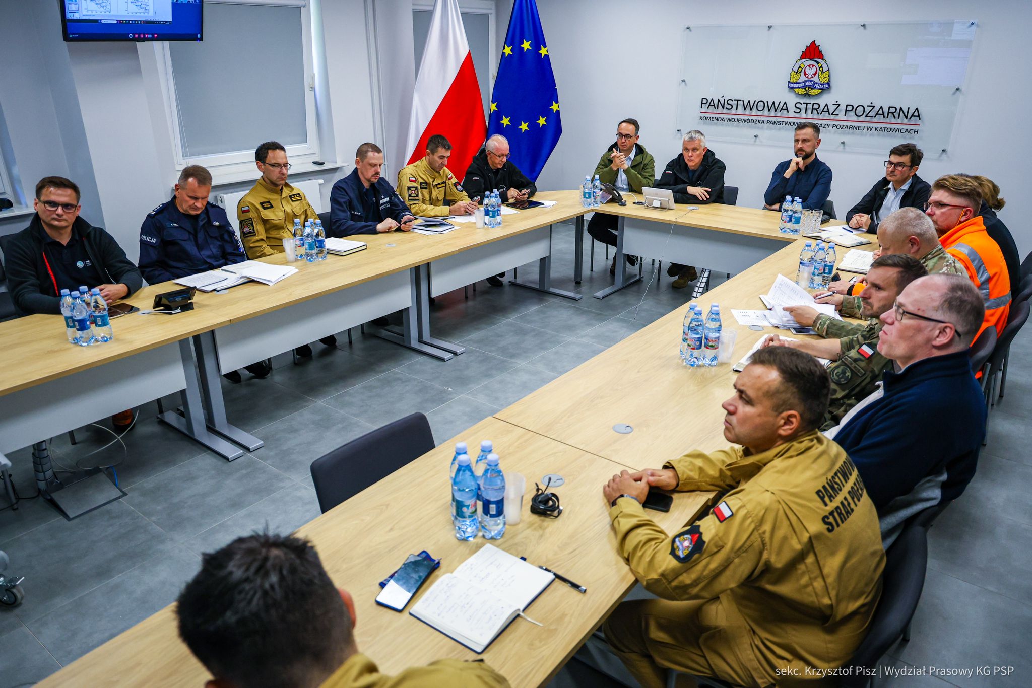Posiedzenie sztabu kryzysowego w Katowicach w związku z zagrożeniem powodziowym