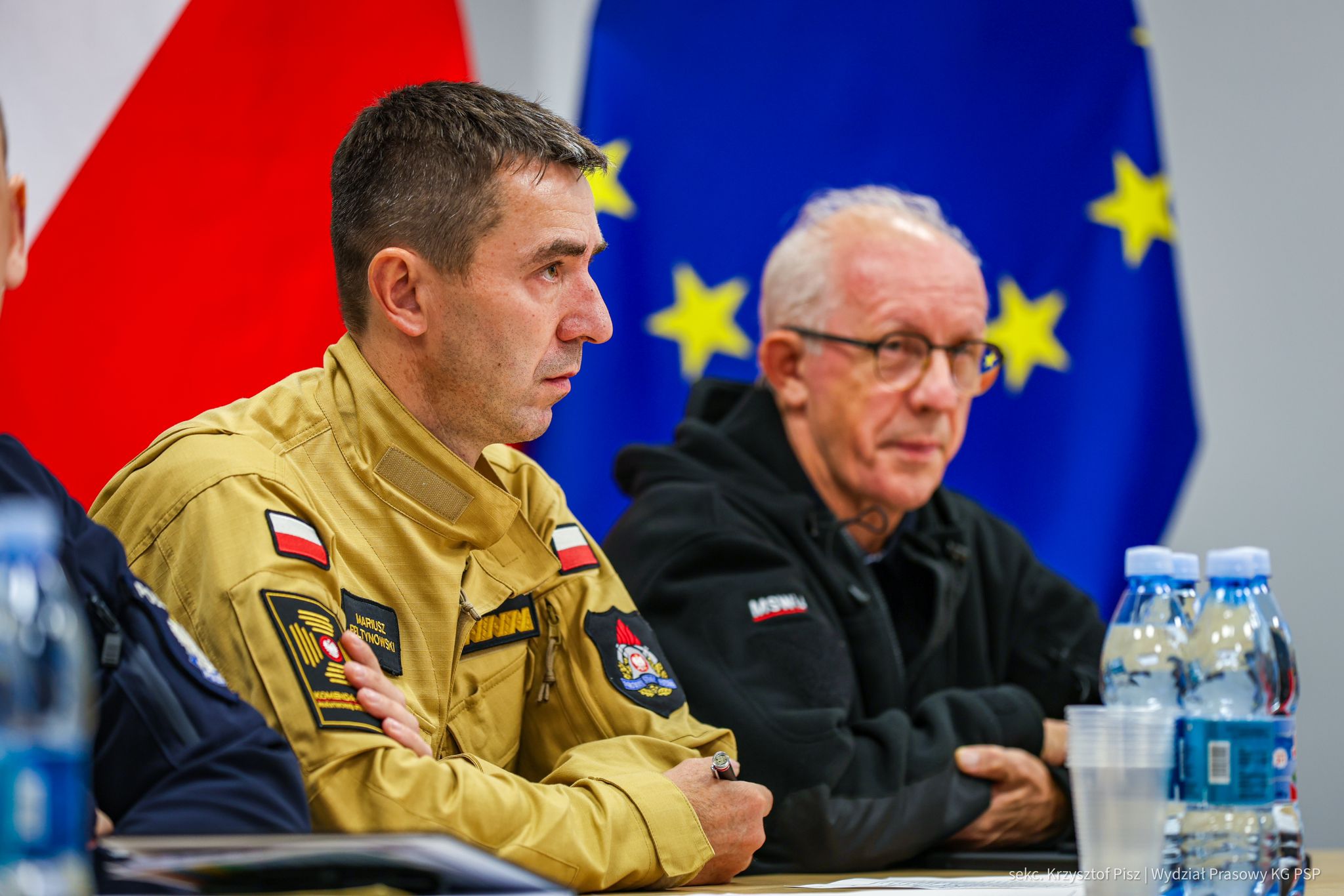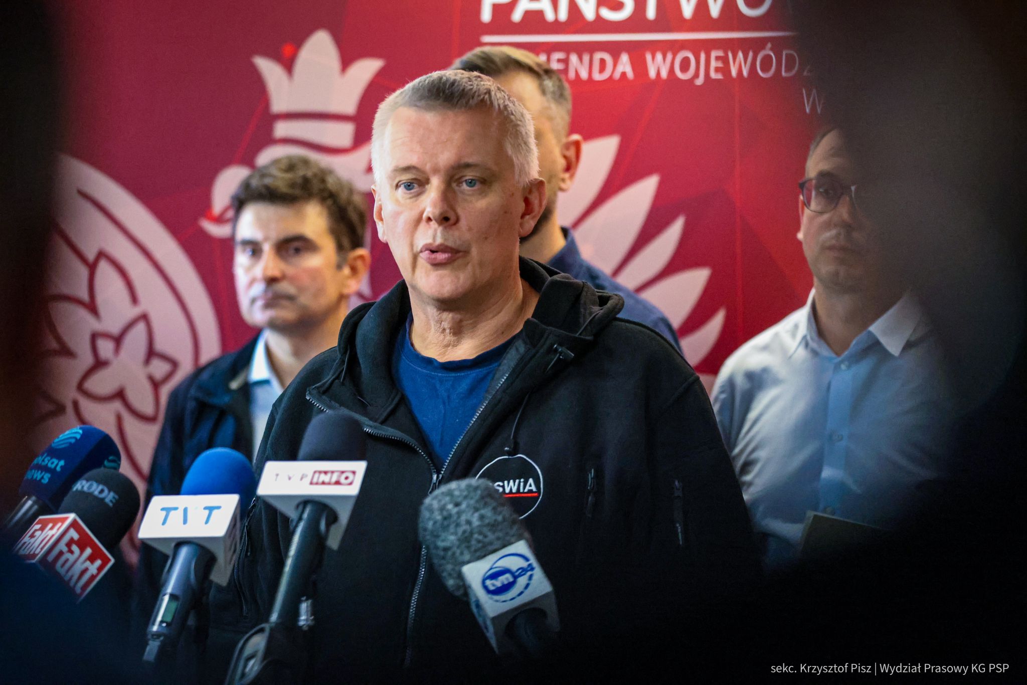 Mówiąc o współdziałaniu w tym trudnym czasie dodał – Chciałbym podkreślić również dobrą współpracę z innymi służbami, w tym m.in. Policją, Strażą Graniczną, Wojskiem Polskim. Apelujemy razem do społeczeństwa, że jeśli na podstawie prognozy zalecamy ewakuację wspólnie z Policją, to proszę to realizować.