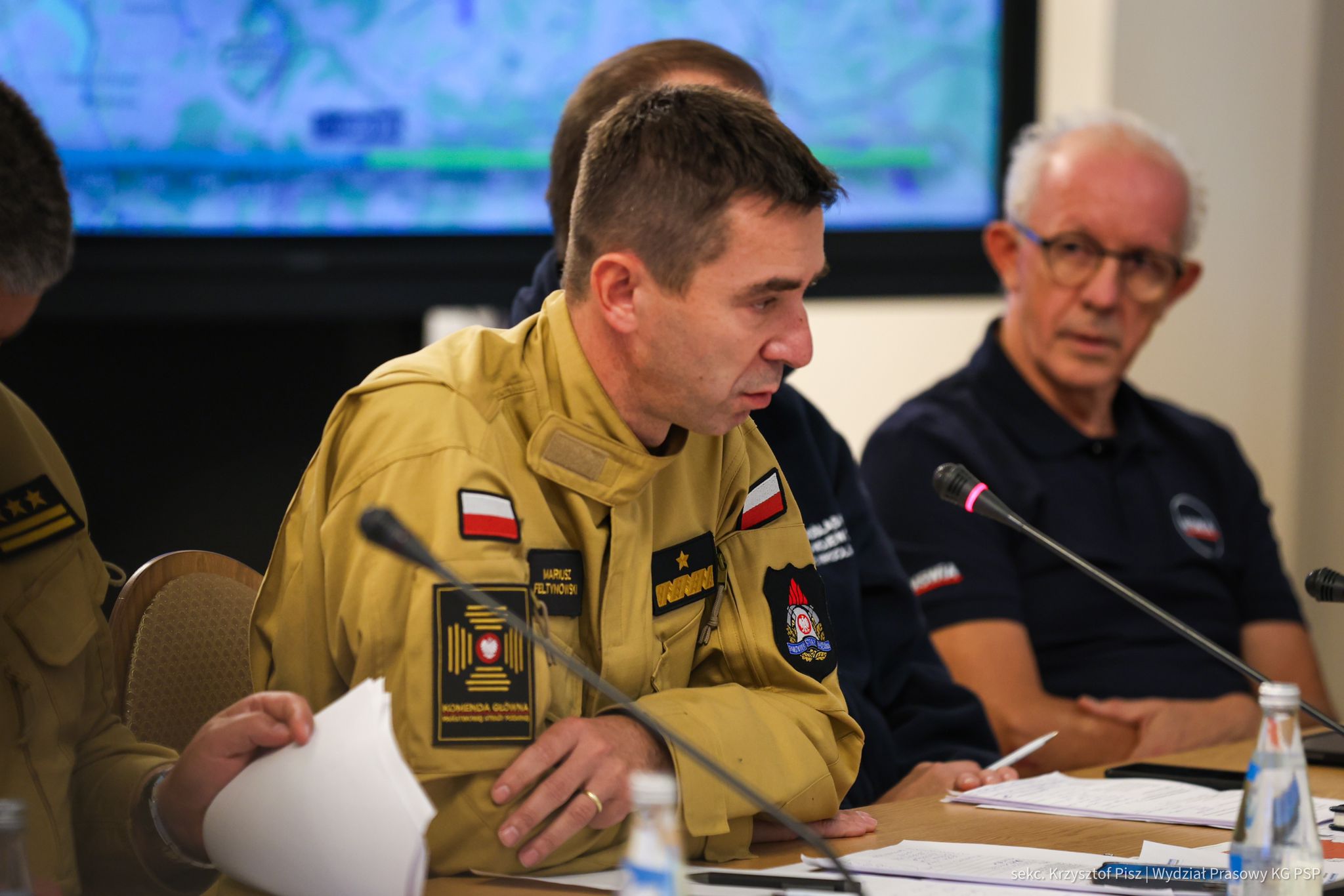 Prowadzimy działania ewakuacyjne, pompowe, podnoszenia wałów przeciwpowodziowych, zasilania agregatami prądotwórczymi - przekazał podczas spotkania Komendant Główny PSP.