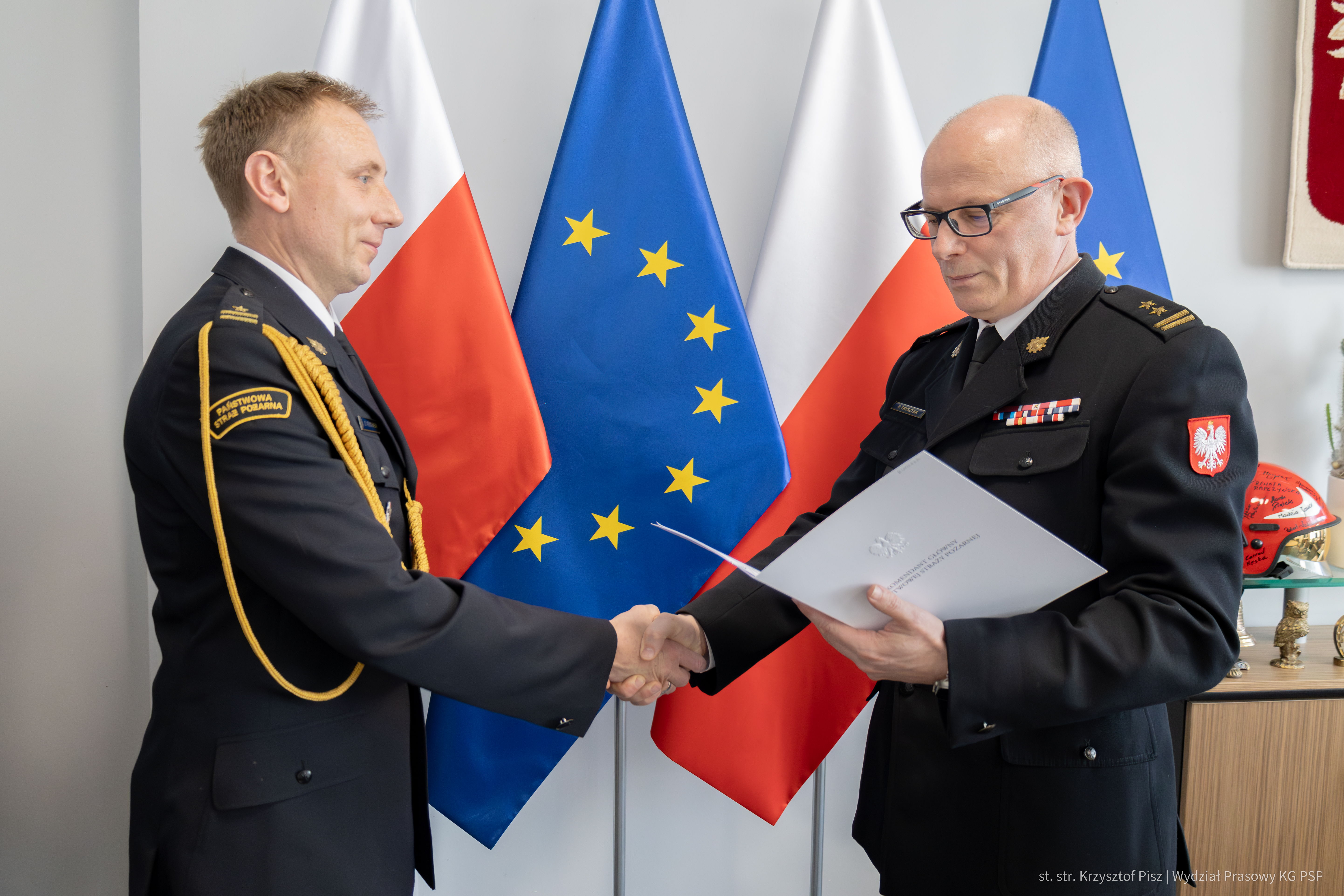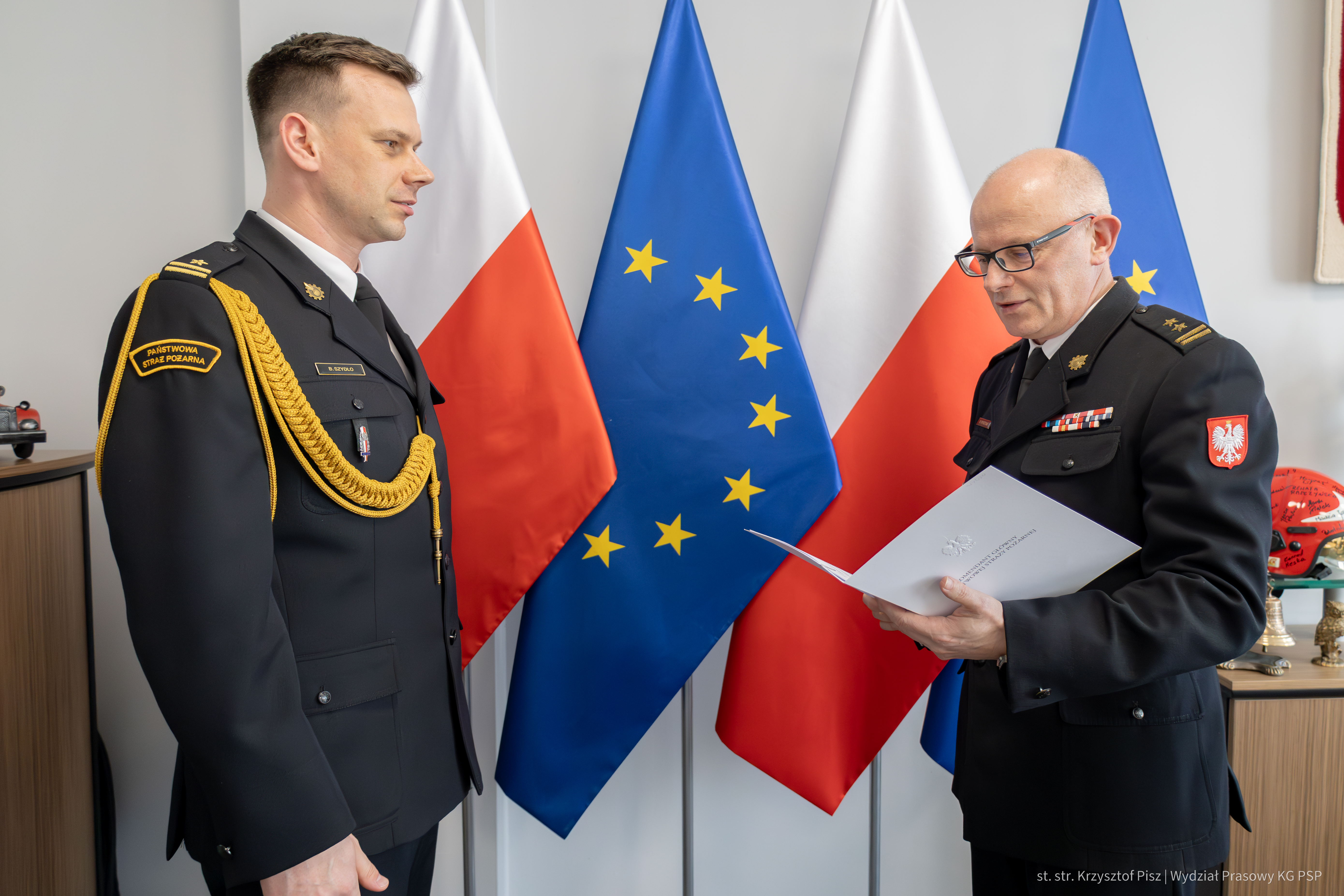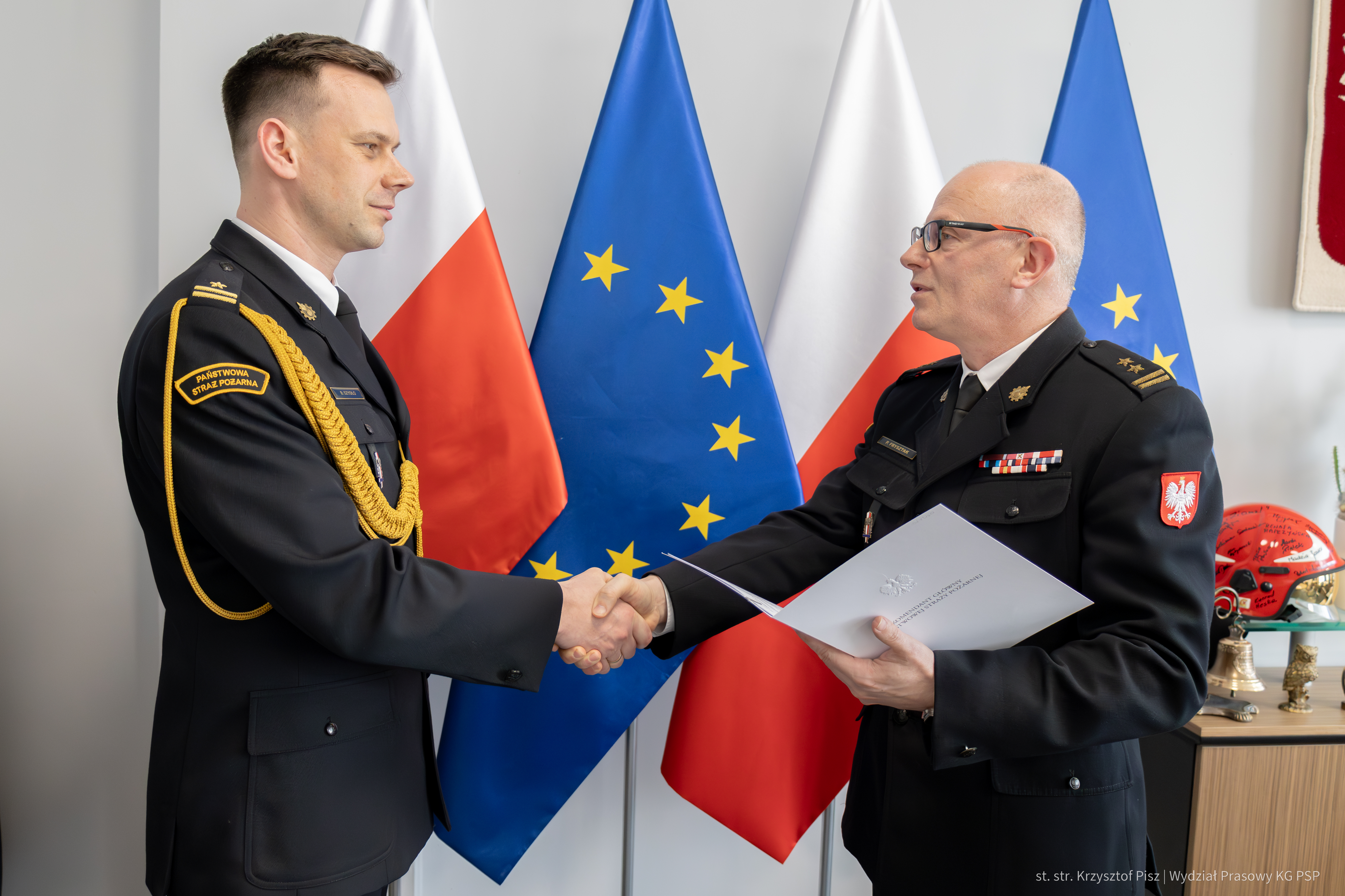 Decyzje personalne zostały wręczone w siedzibie Komendy Głównej PSP przez zastępcę komendanta głównego PSP bryg. Pawła Frysztaka.