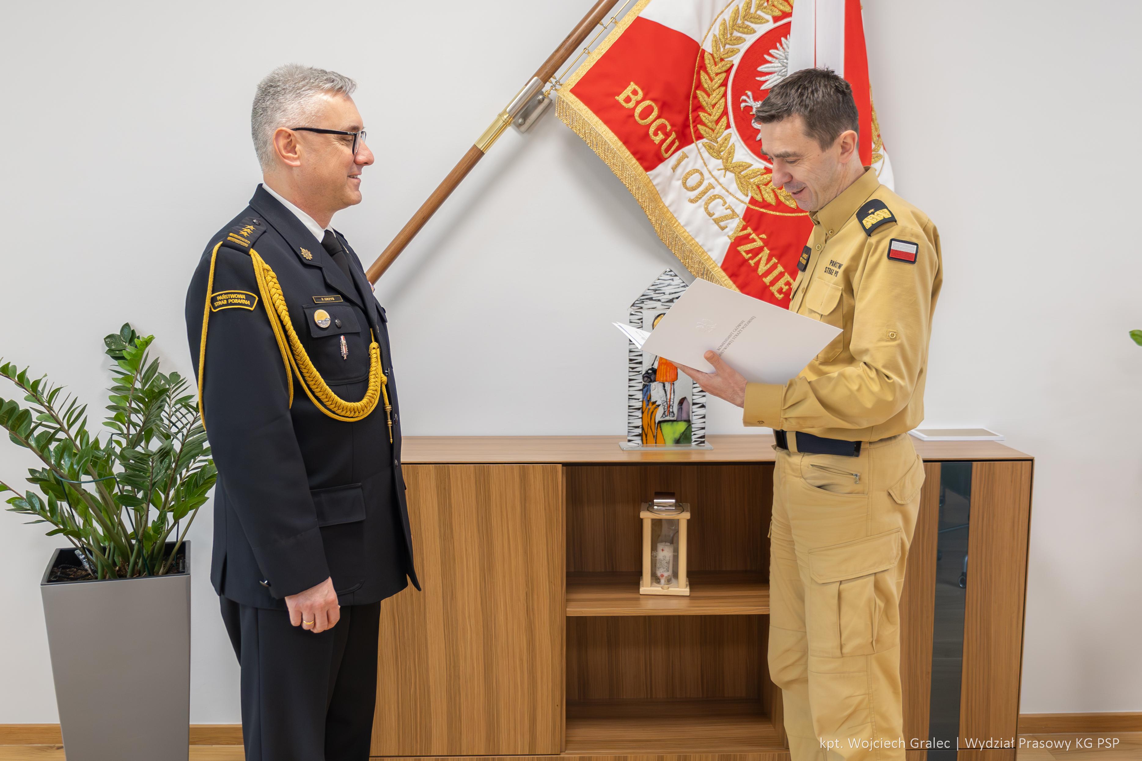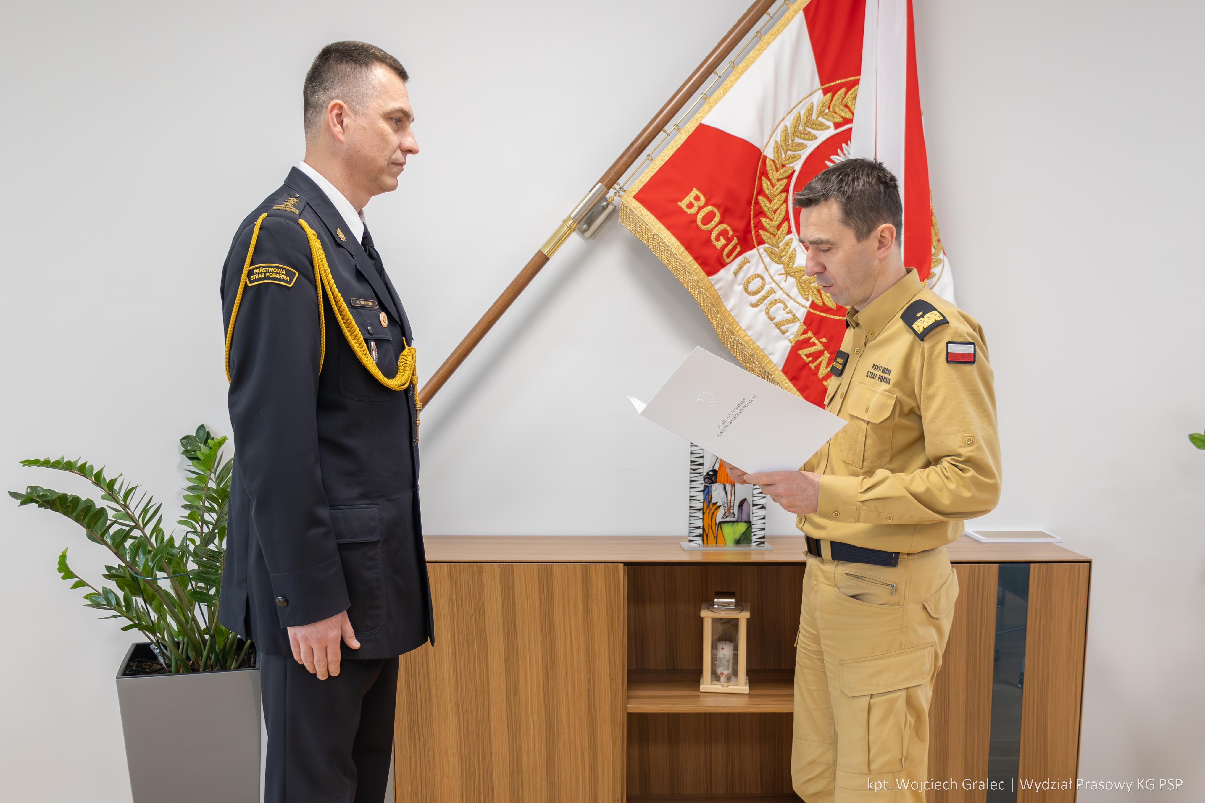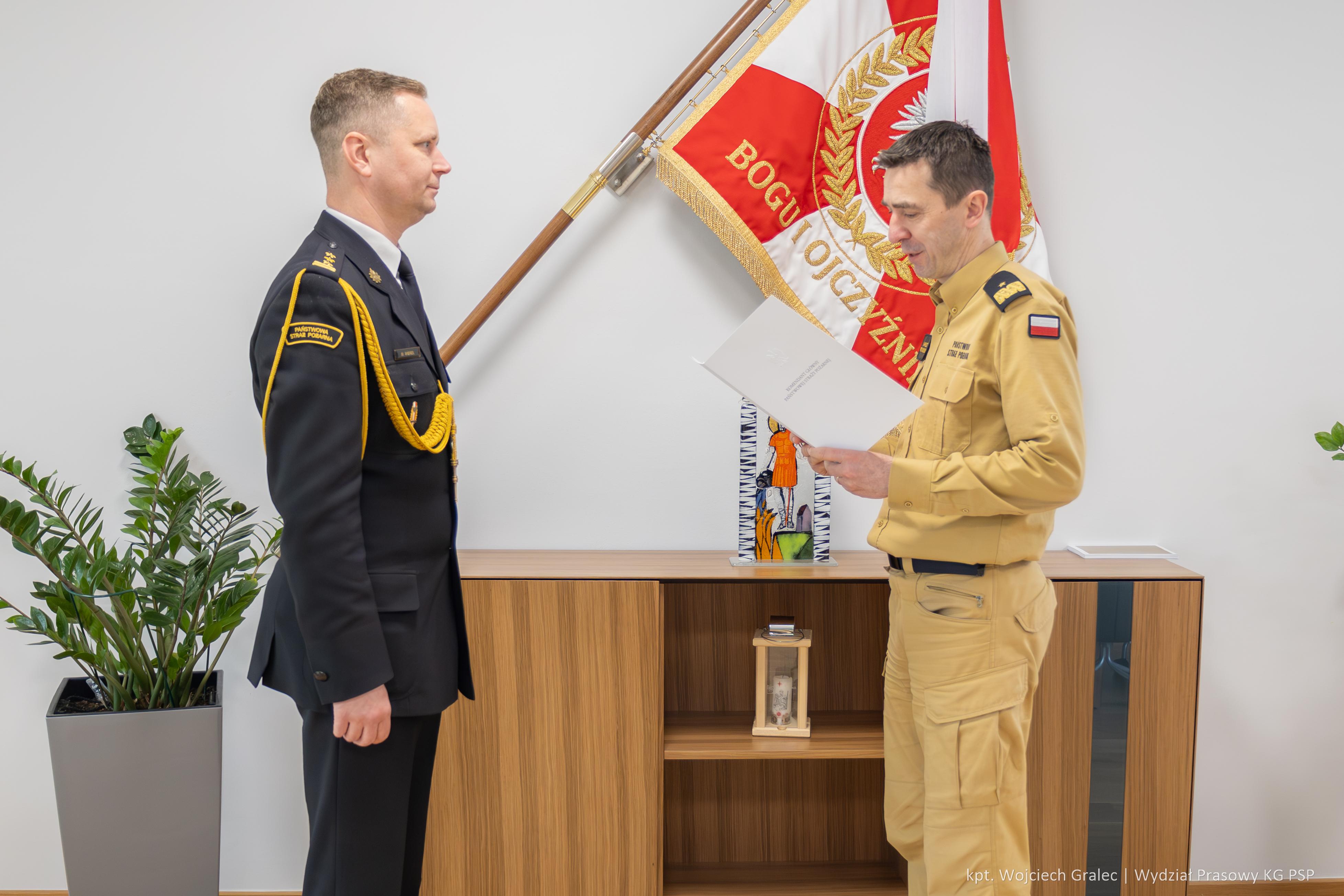 24 kwietnia 2024 r. komendant główny PSP nadbryg. dr inż. Mariusz Feltynowski wręczył decyzje personalne o powołaniu: