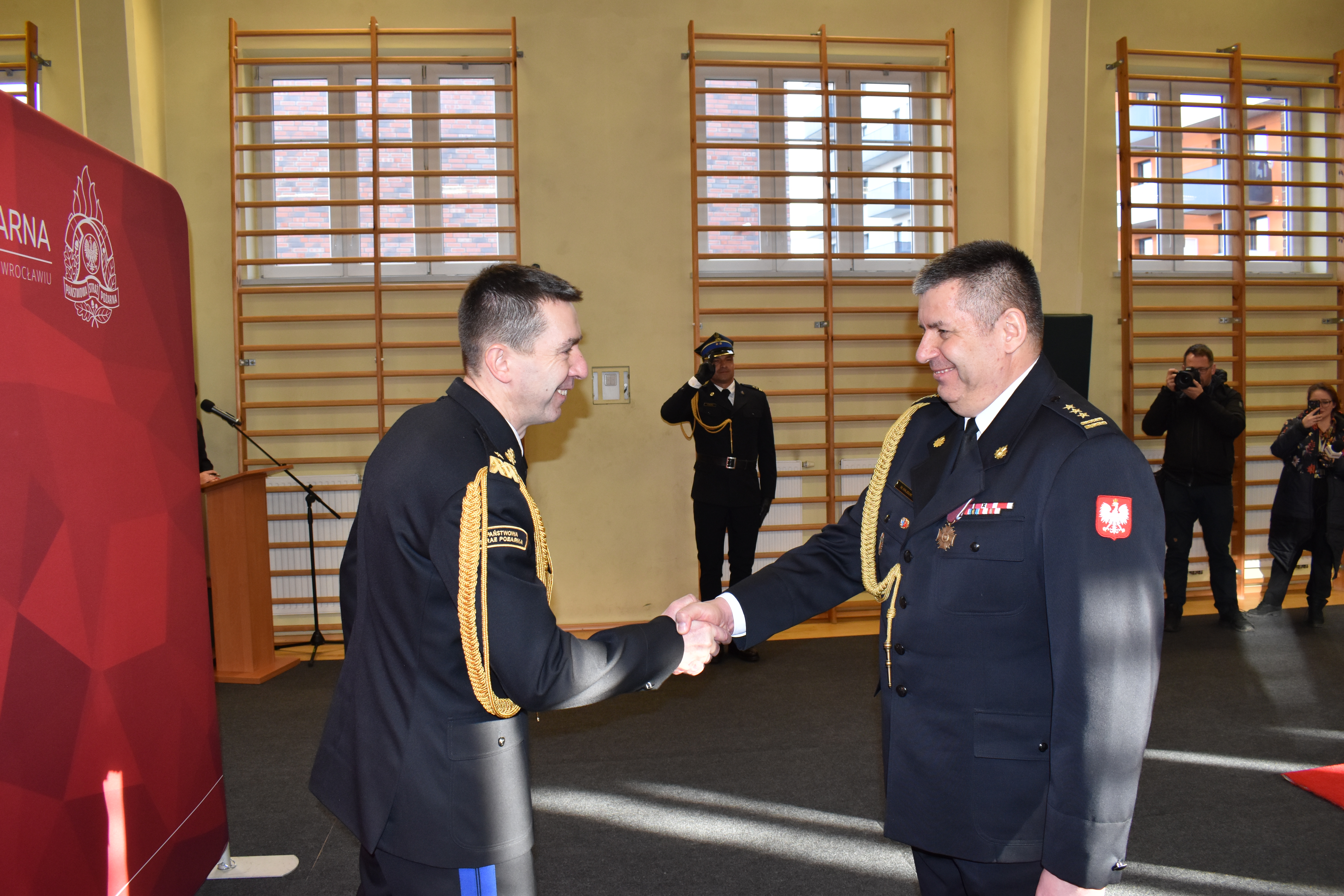 Po zakończonej ceremonii, Komendant Główny PSP w przemówieniu okolicznościowym podziękował nowo powołanemu Szefowi dolnośląskich strażaków, że podjął się tego zadania. Wyrażając wdzięczność wobec st. bryg. Marka Hajduka za to, że całą swoją służbę realizuje na terenie województwa dolnośląskiego, przekazał gratulacje i życzenia dalszej, dobrej współpracy ze środowiskiem pożarniczym.
