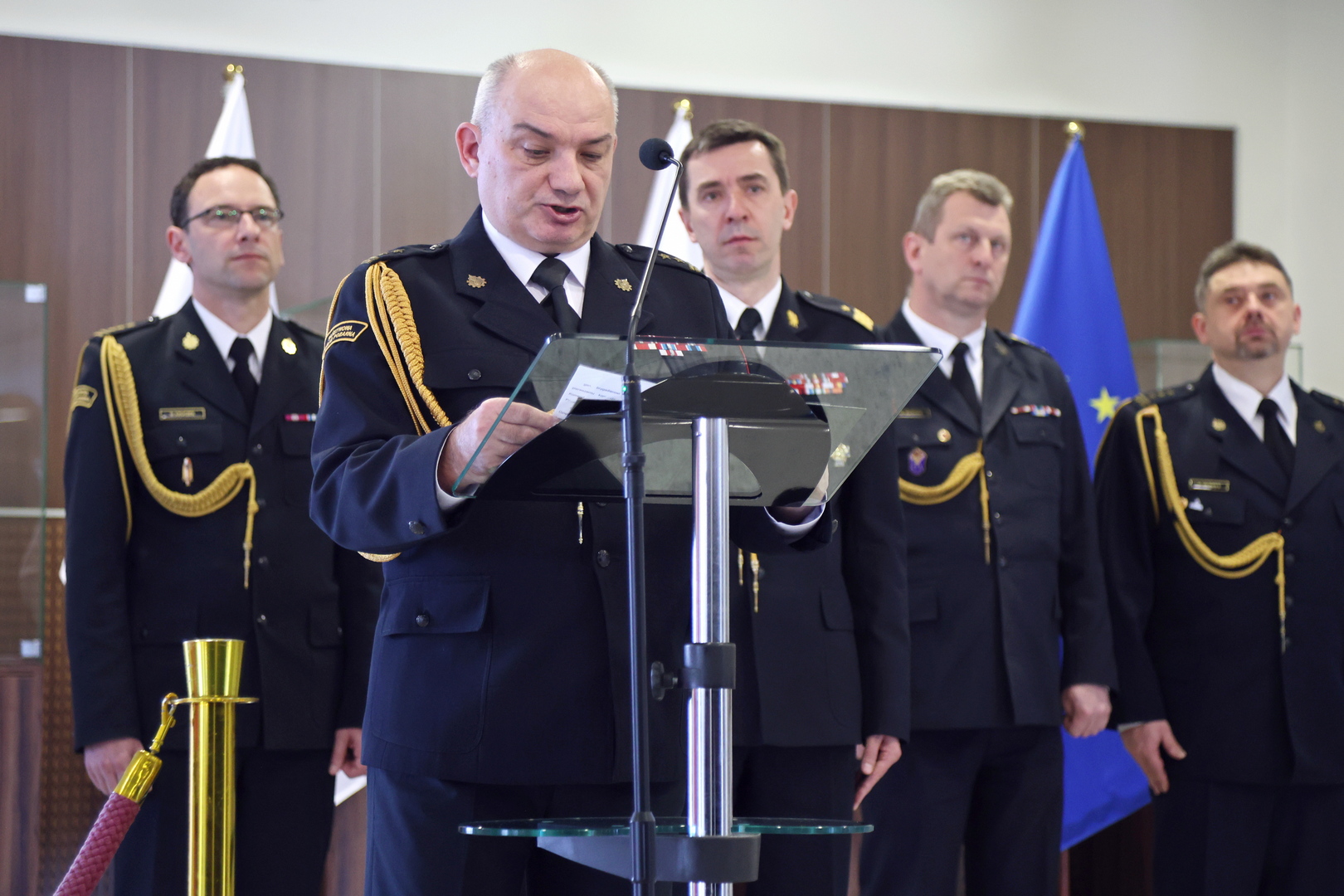 Komendant główny PSP podczas przemówienia zwrócił się do gości, kadry oraz słuchaczy Centralnej Szkoły PSP w następujących słowach: