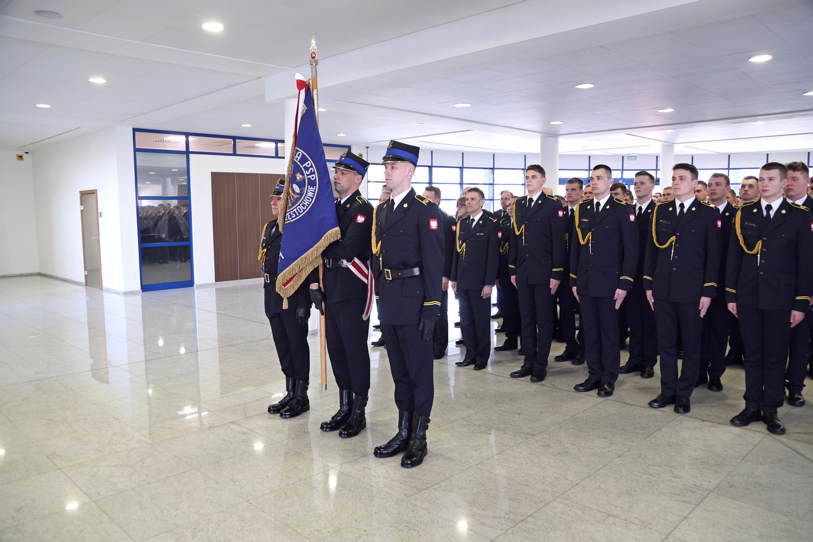 „W przyszłym roku będziemy obchodzili jubileusz 30-lecia krajowego systemu ratowniczo-gaśniczego. Patrząc na Was, przyszli technicy pożarnictwa, którzy otrzymacie stopnie aspirantów, to do Was należy przyszłość. Chciałbym, abyście maksymalnie wykorzystali czas spędzony w służbie kandydackiej, bo jeśli chodzi o zadania Państwowej Straży Pożarnej i ochotniczych straży pożarnych, to pracy nam nie ubędzie. Projektowana ustawa o ochronie ludności i obronie cywilnej spowoduje, że filarem ochrony ludności w Polsce zdecydowanie będzie PSP i ochotnicze straże pożarne.