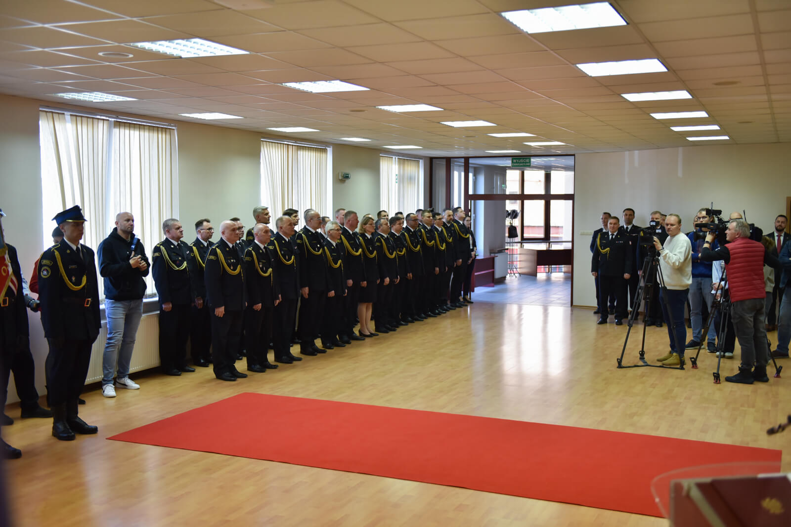 Uroczystość rozpoczęła się od złożenia meldunku Komendantowi Głównemu PSP – nadbryg. Wojciechowi Kruczkowi przez dowódcę uroczystości – st. kpt. Mateusza Kuzika, odegrania hymnu państwowego oraz powitania zaproszonych gości.