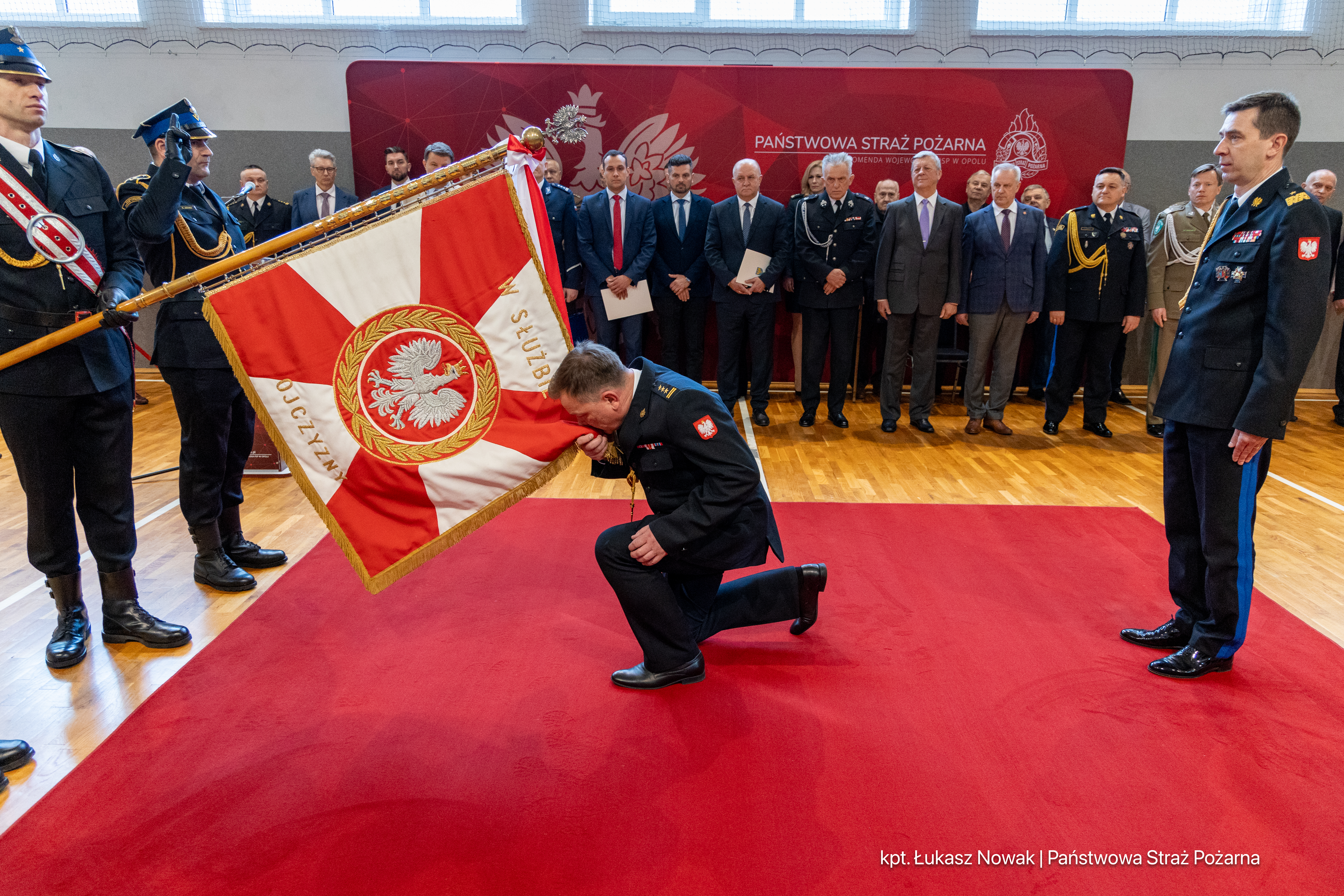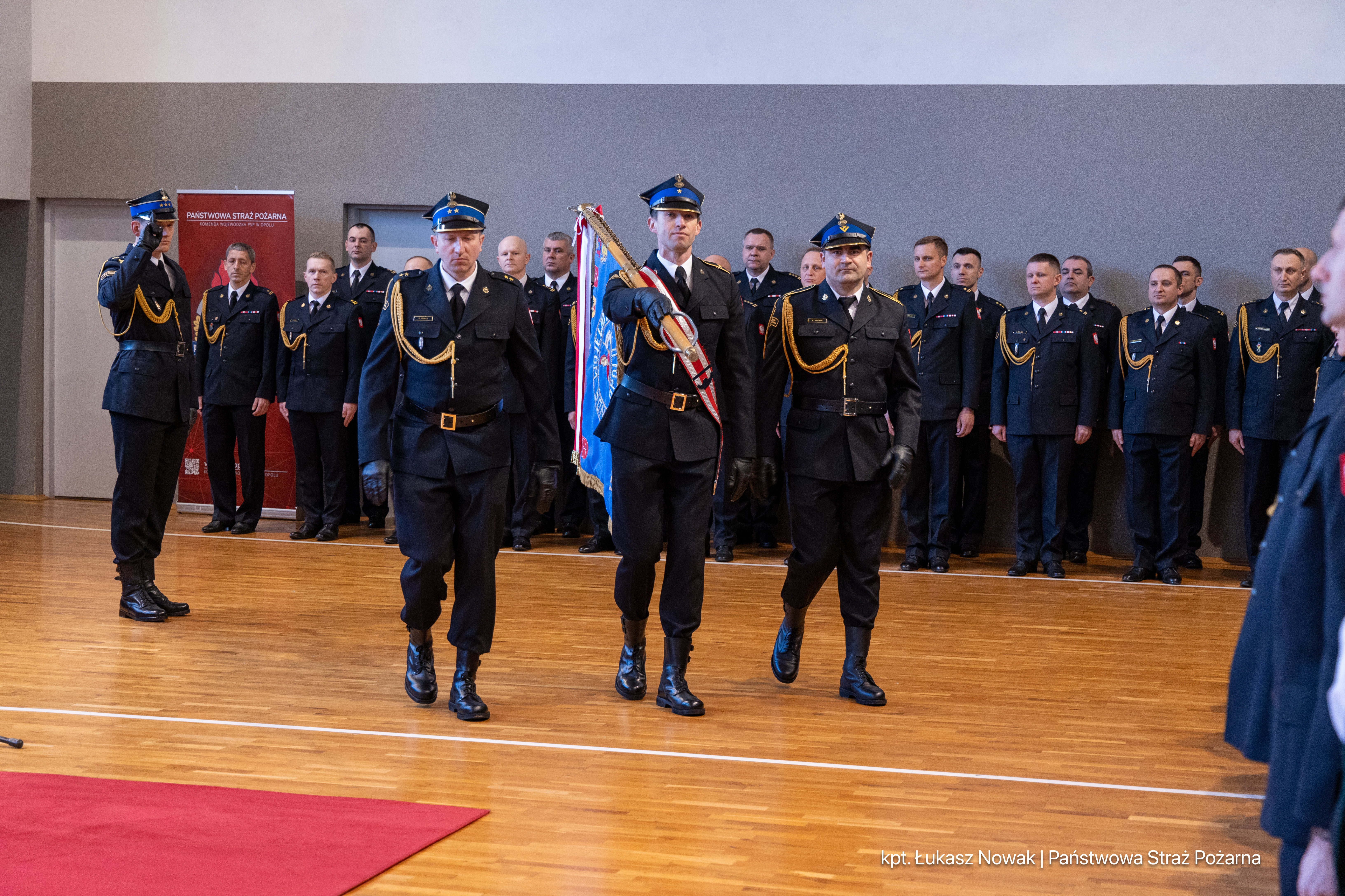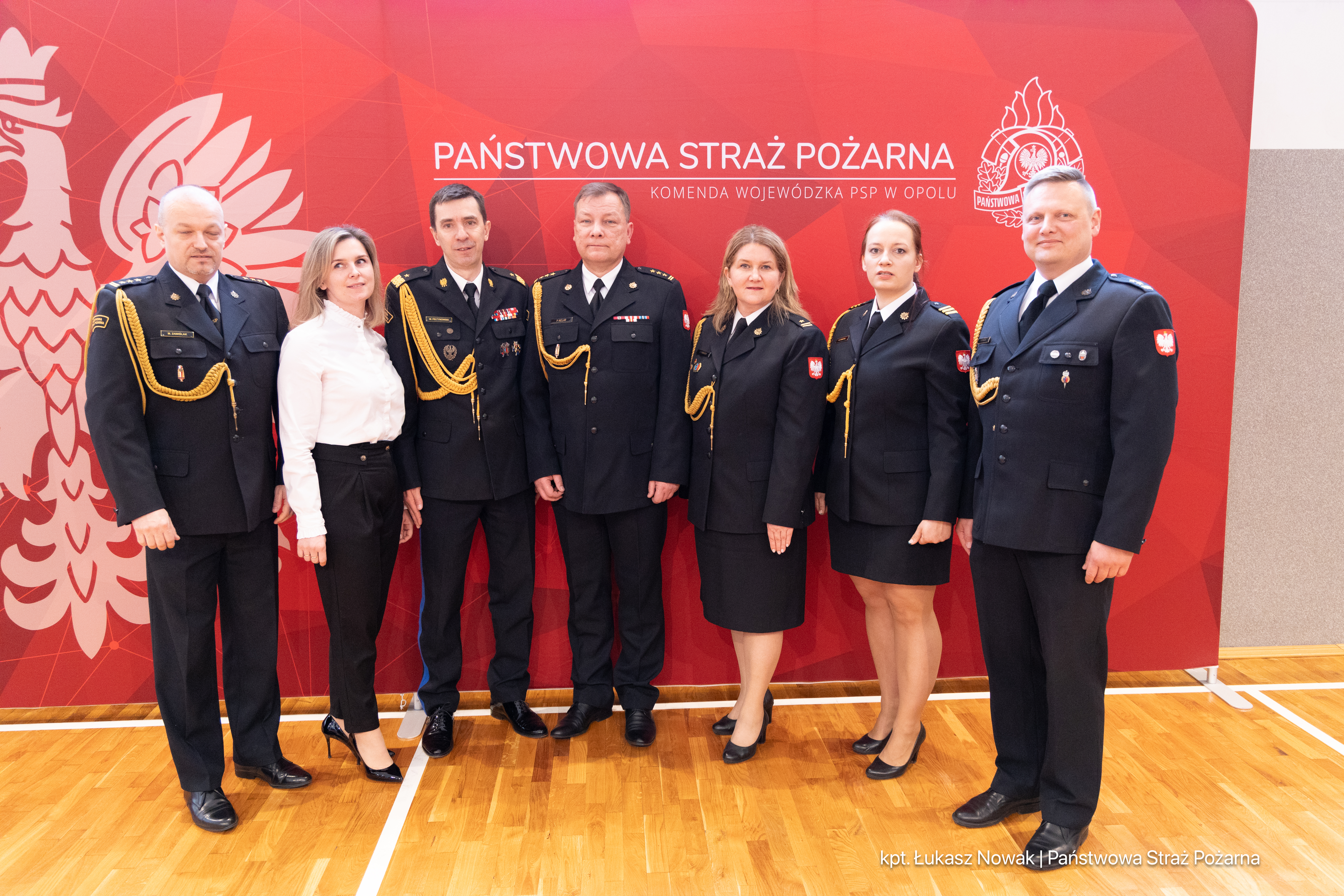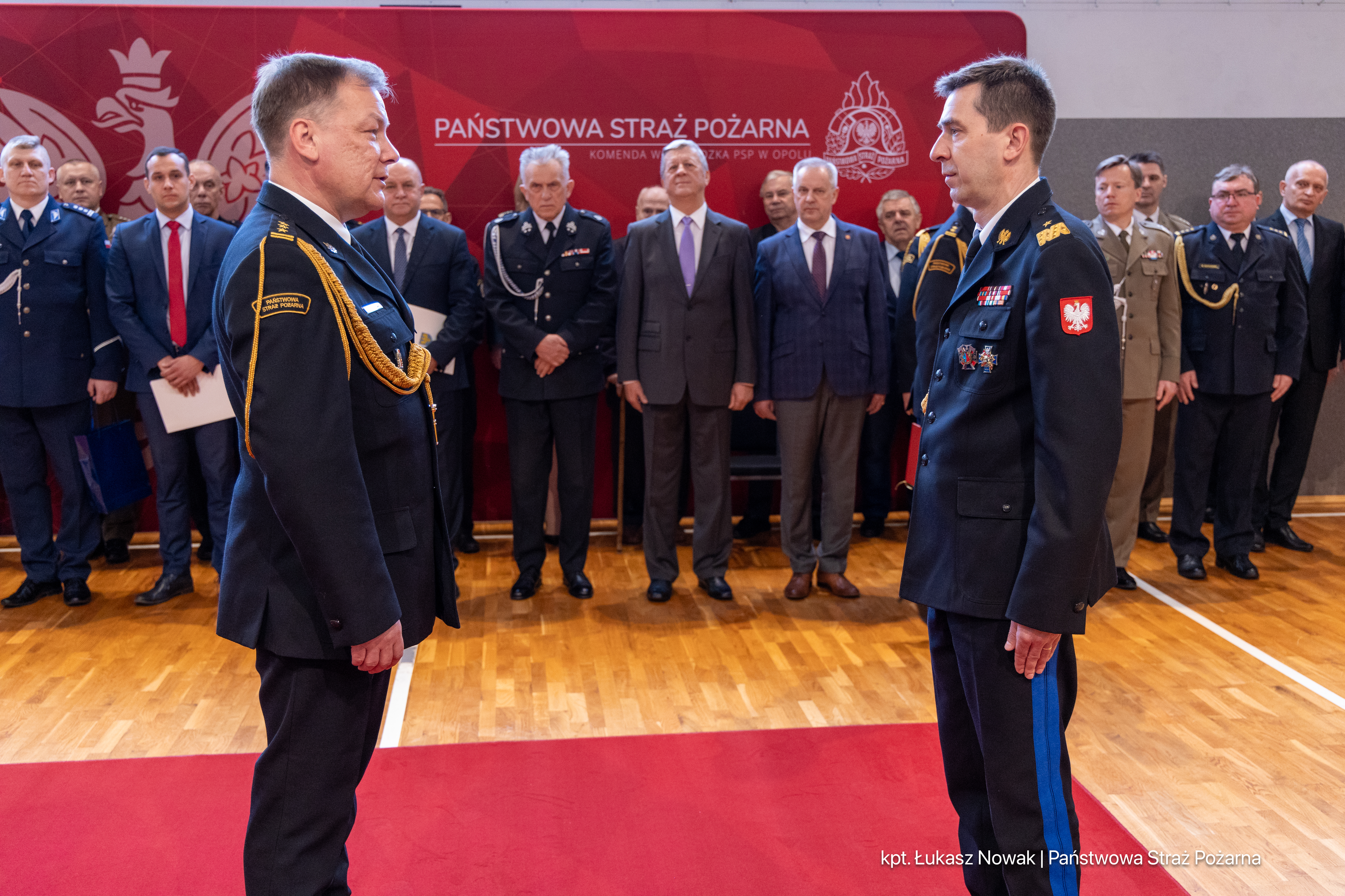 W uroczystości wzięli udział pracownicy cywilni i funkcjonariusze Komendy Wojewódzkiej PSP w Opolu oraz przedstawiciele władz wojewódzkich i samorządowych, służb współpracujących z Państwową Strażą Pożarną oraz byli funkcjonariusze Państwowej Straży Pożarnej.