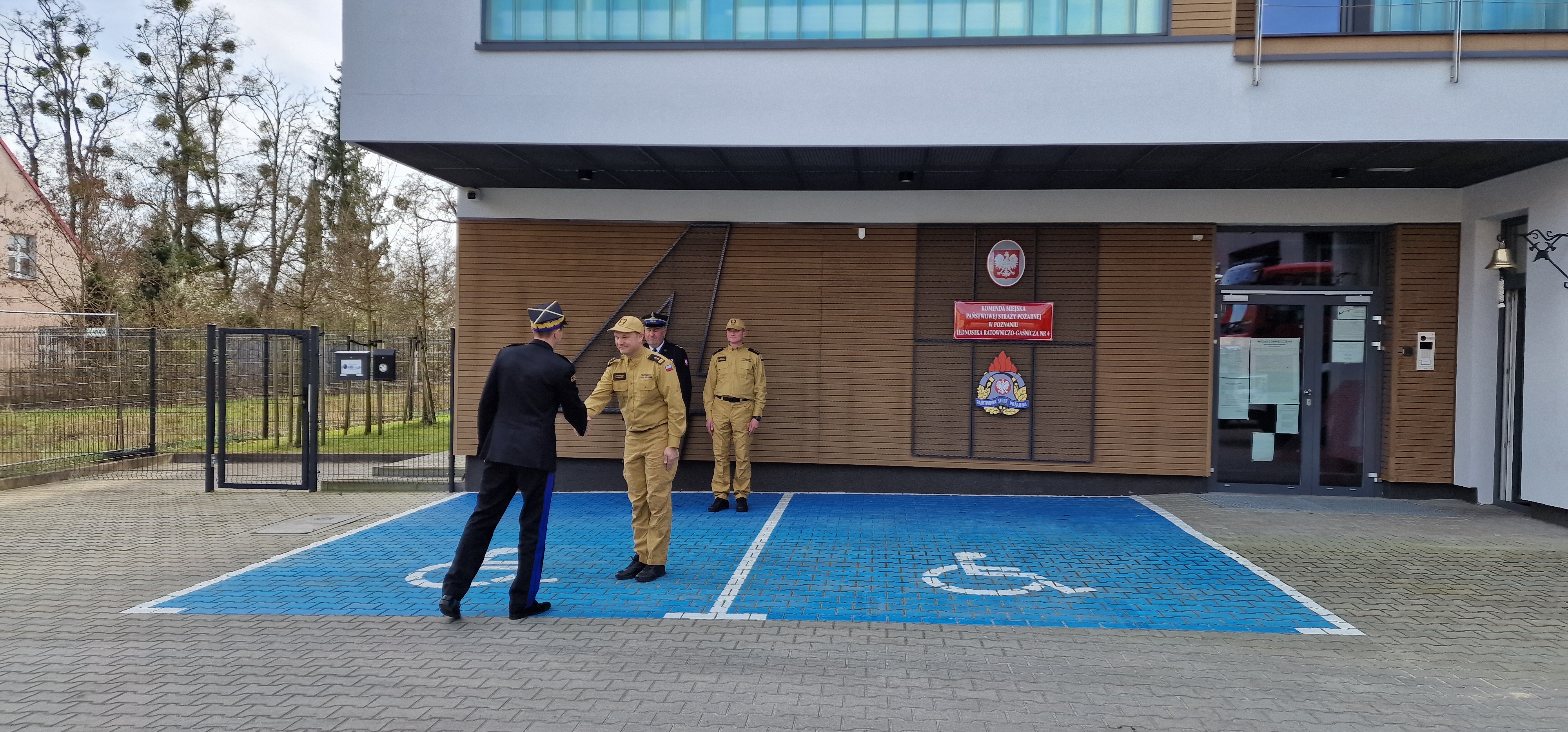 Po uroczystej zbiórce w KW PSP w Poznaniu komendant główny PSP nadbryg. dr inż. Mariusz Feltynowski, udał się z wizytą do strażaków Jednostki Ratowniczo-Gaśniczej nr 4 Komendy Miejskiej PSP w Poznaniu.