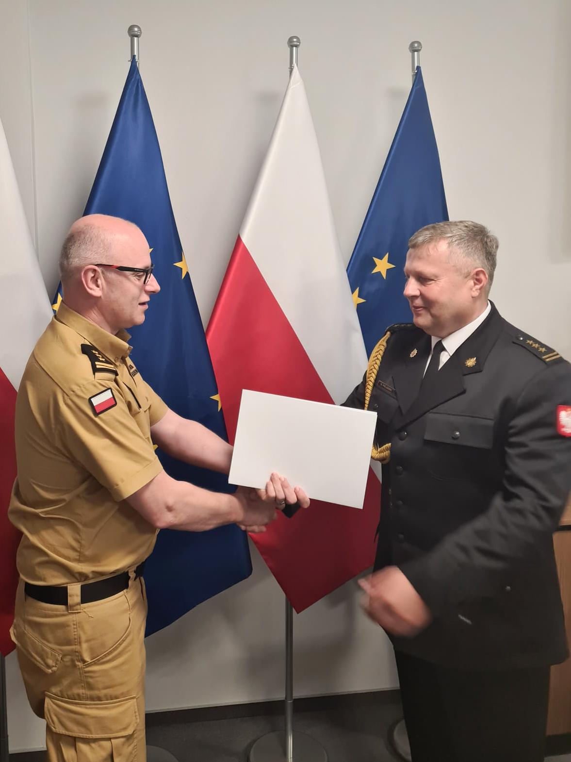 Decyzję personalną wręczył w siedzibie Komendy Głównej PSP zastępca komendanta głównego PSP st. bryg. Paweł Frysztak.