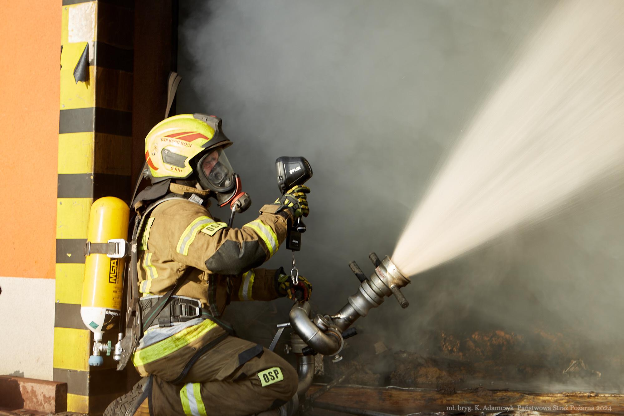 Działania mogą potrwać jeszcze kilka najbliższych godzin. Sytuacja jest bardzo trudna ze względu na wysoką temperaturę pożarową i zadymienie oraz warunki atmosferyczne (wysoka temperatura powietrza).