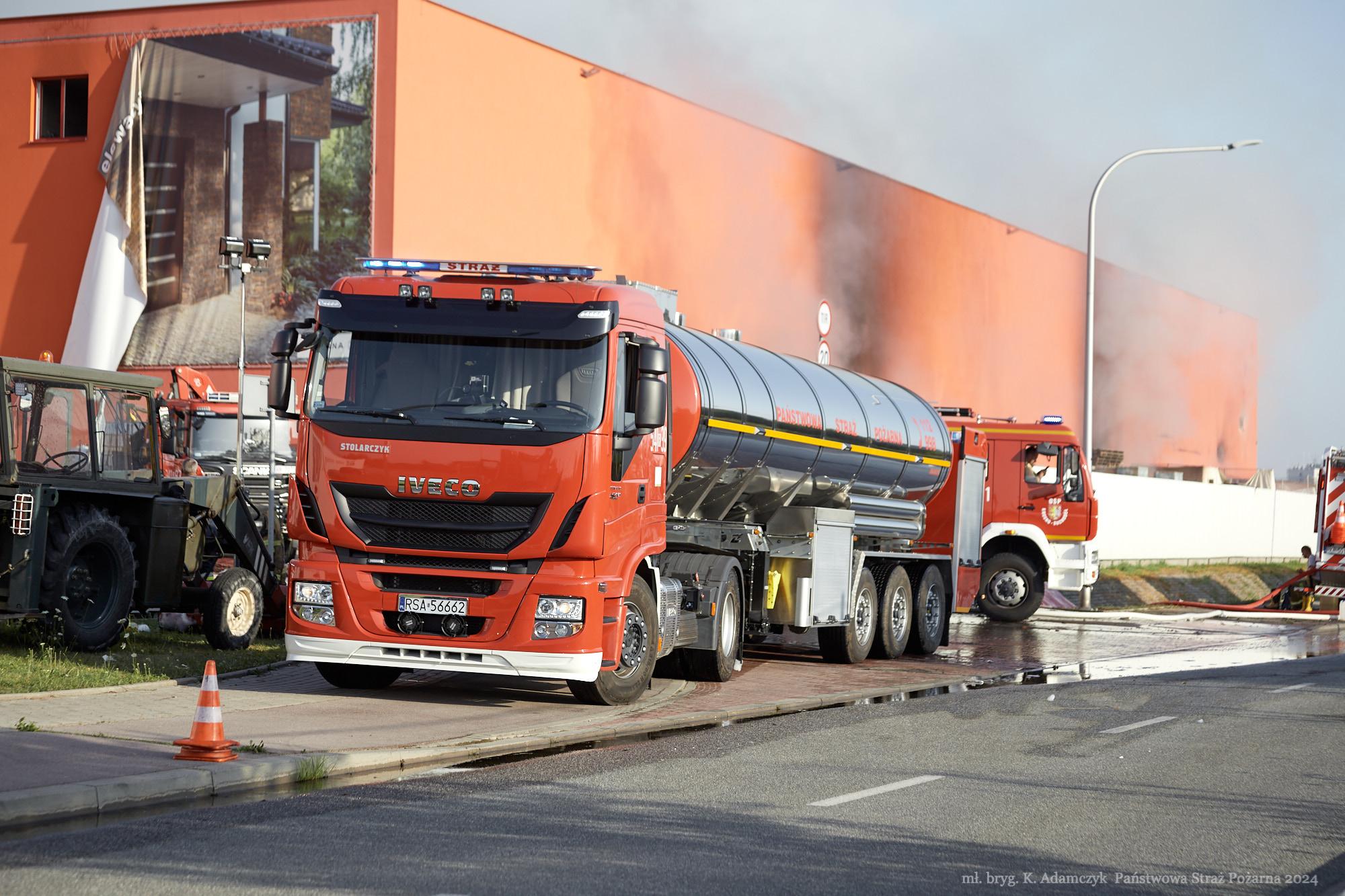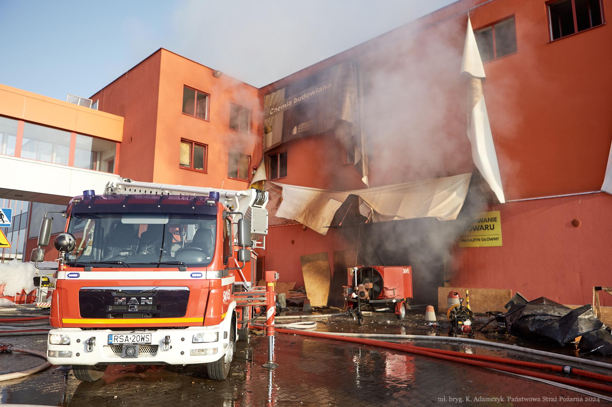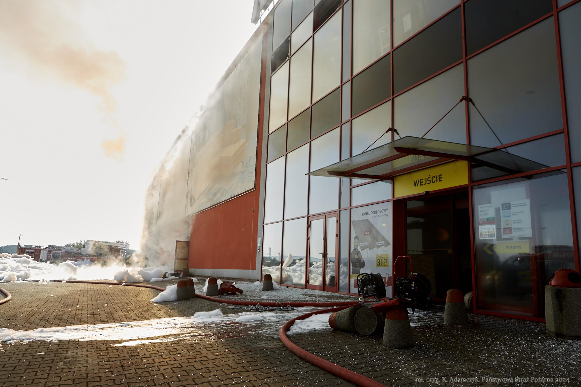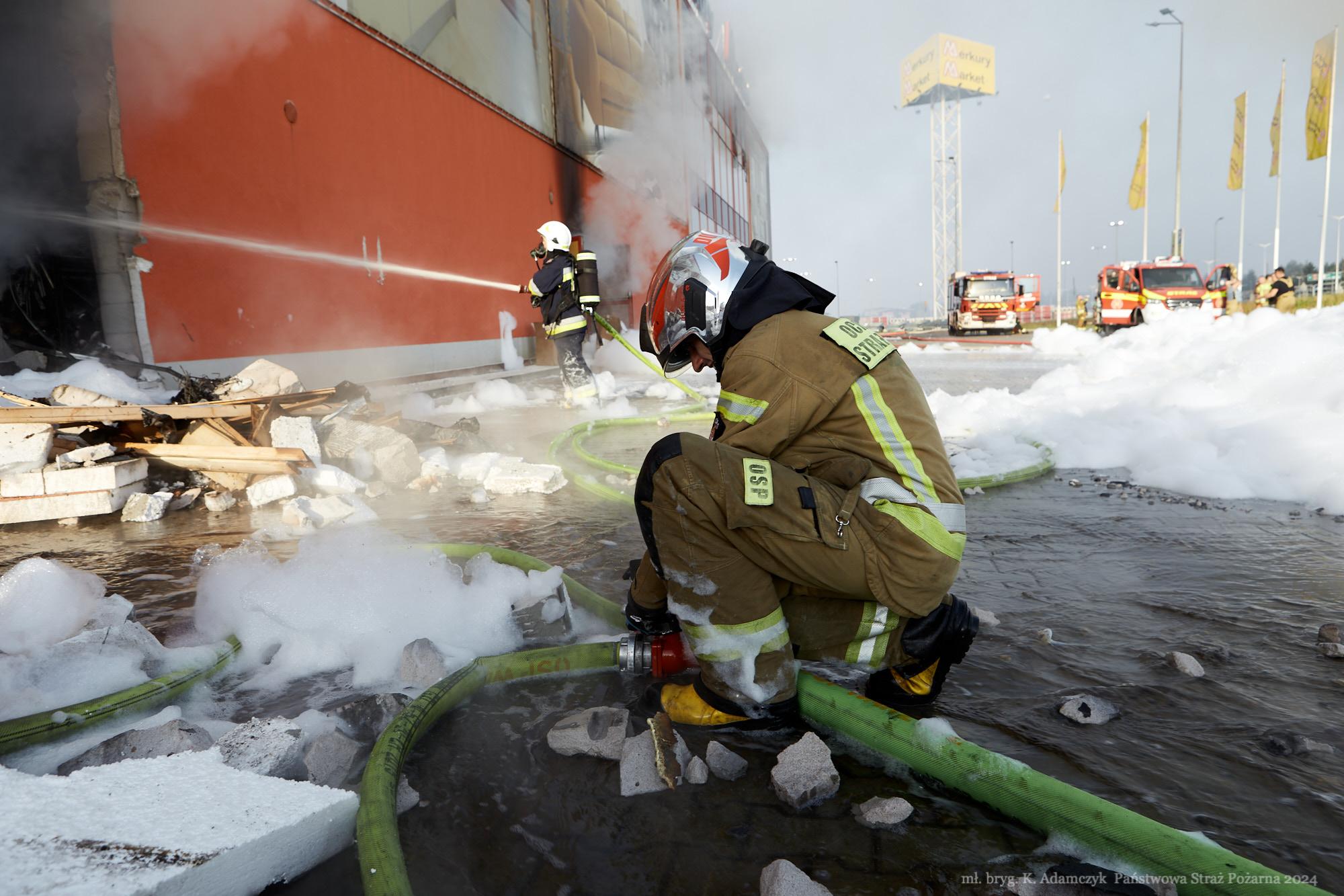 W czwartek w godzinach porannych w działaniach zaangażowanych było 277 strażaków PSP i OSP i 77 pojazdów pożarniczych. W dalszym ciągu trwa gaszenie ognia w części magazynowej i obrona sklepu przed pożarem. Na potrzeby akcji woda dostarczana jest z rzeki Lubatówka poprzez dwie magistrale wężowe o długości około 1900 m.