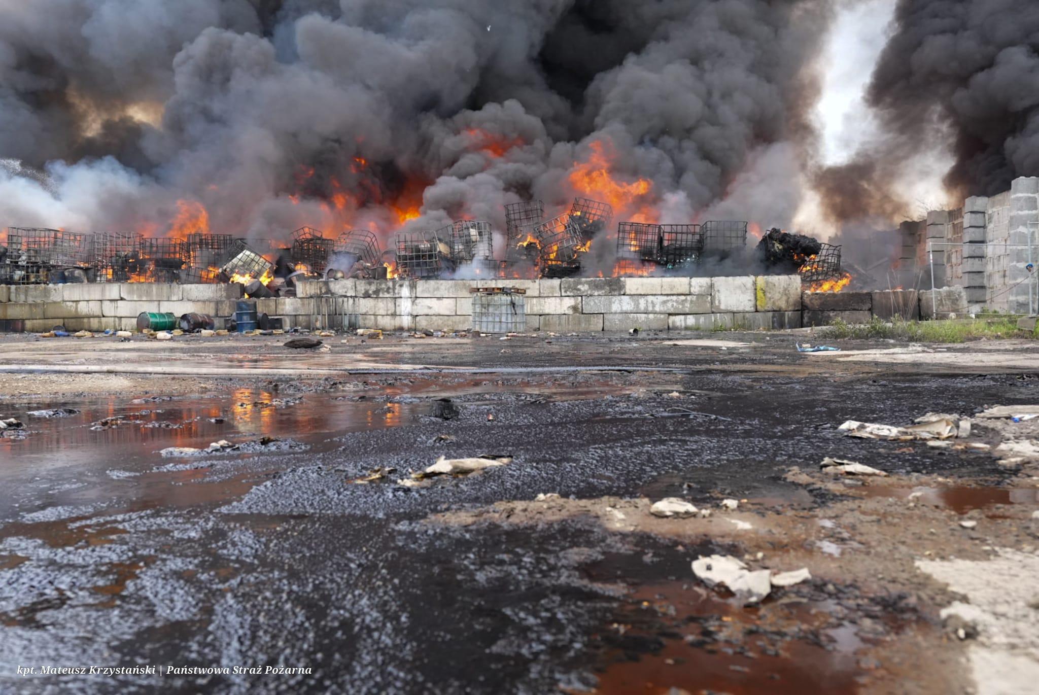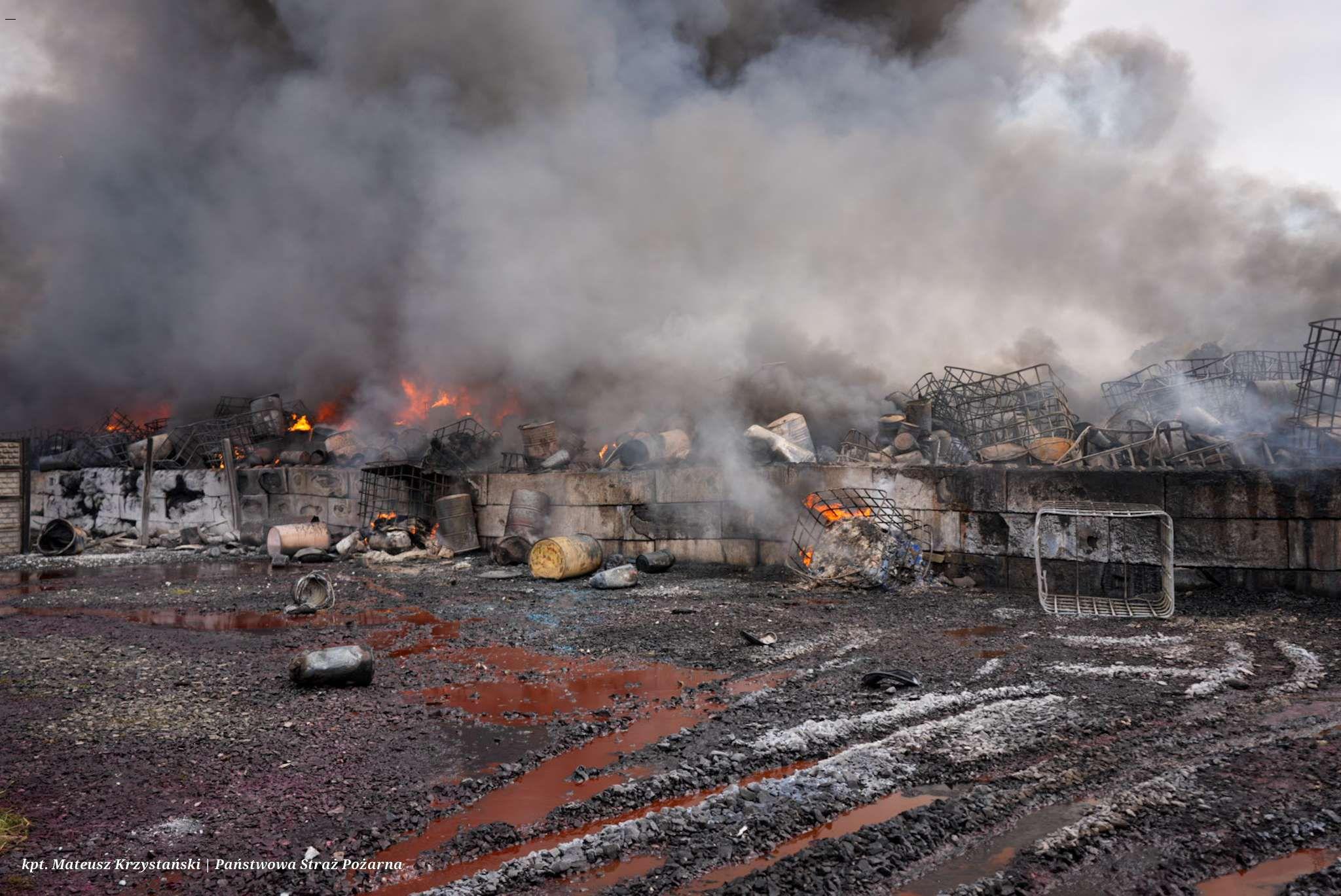 Część zanieczyszczeń pochodzących z pożaru dostała się do znajdującego się w pobliżu cieku wodnego: Rowu Michałkowickiego, dlatego straż pożarna ustawiła rękawy sorbcyjne i zapory, które mają na celu ograniczenie przepływu zanieczyszczeń.