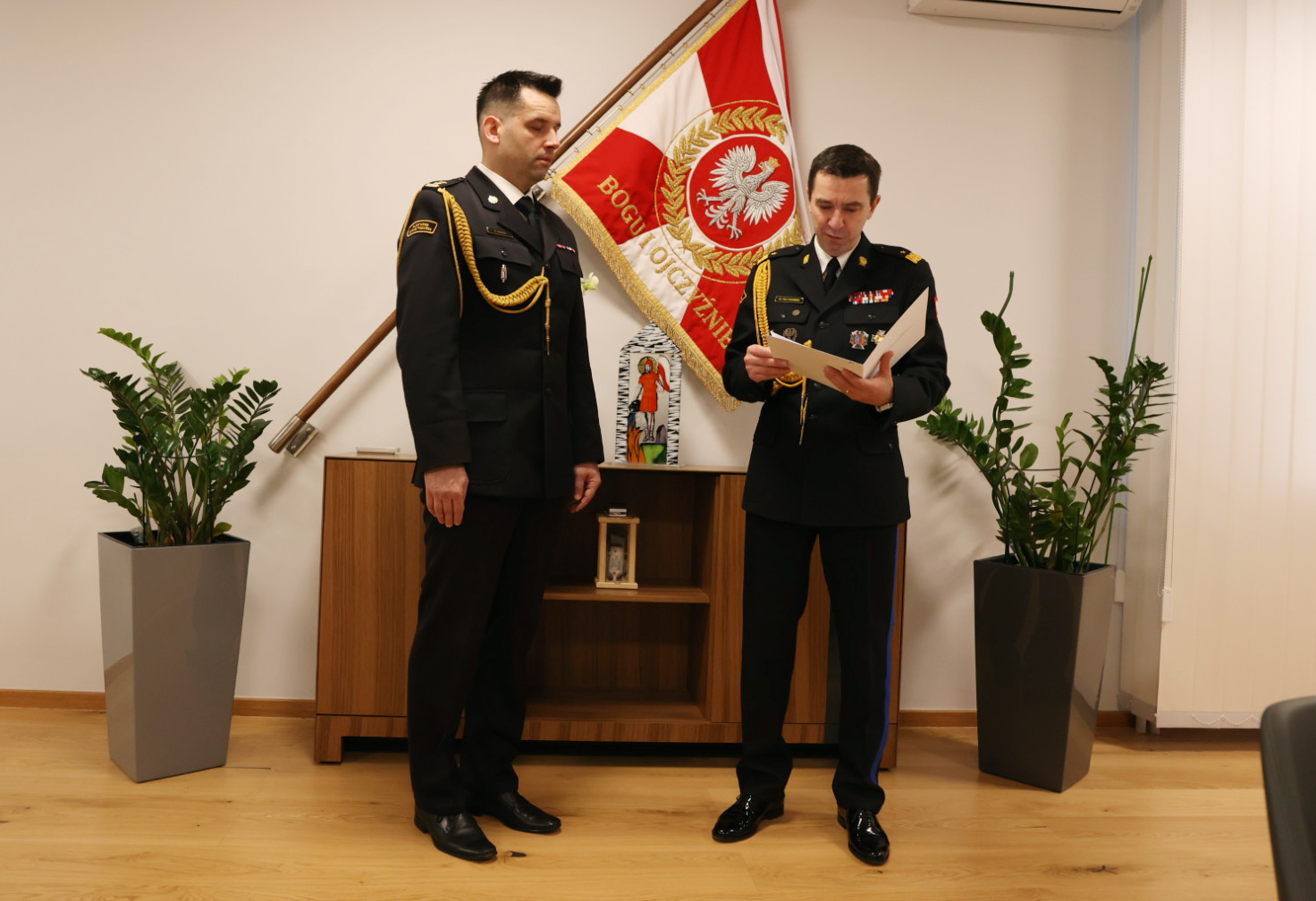 Meldunek o zakończeniu służby w Państwowej Straży Pożarnej złożyli: