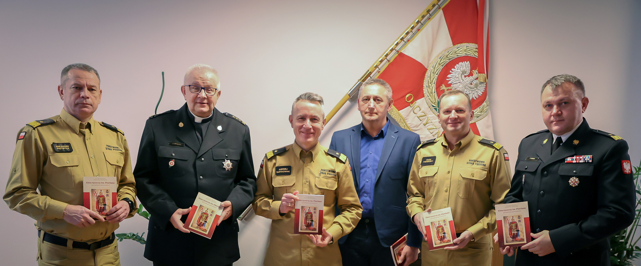 W spotkaniu udział wzięli: nadbryg. Andrzej Bartkowiak komendant główny PSP, nadbryg. dr inż. Adam Konieczny zastępca komendanta głównego PSP, nadbryg. Arkadiusz Przybyła zastępca komendanta głównego PSP, nadbryg. Andrzej Babiec podkarpacki komendant wojewódzki PSP oraz autorzy publikacji ks. st. bryg. Jan Krynicki kapelan strażaków i Krysztof Bochenek.