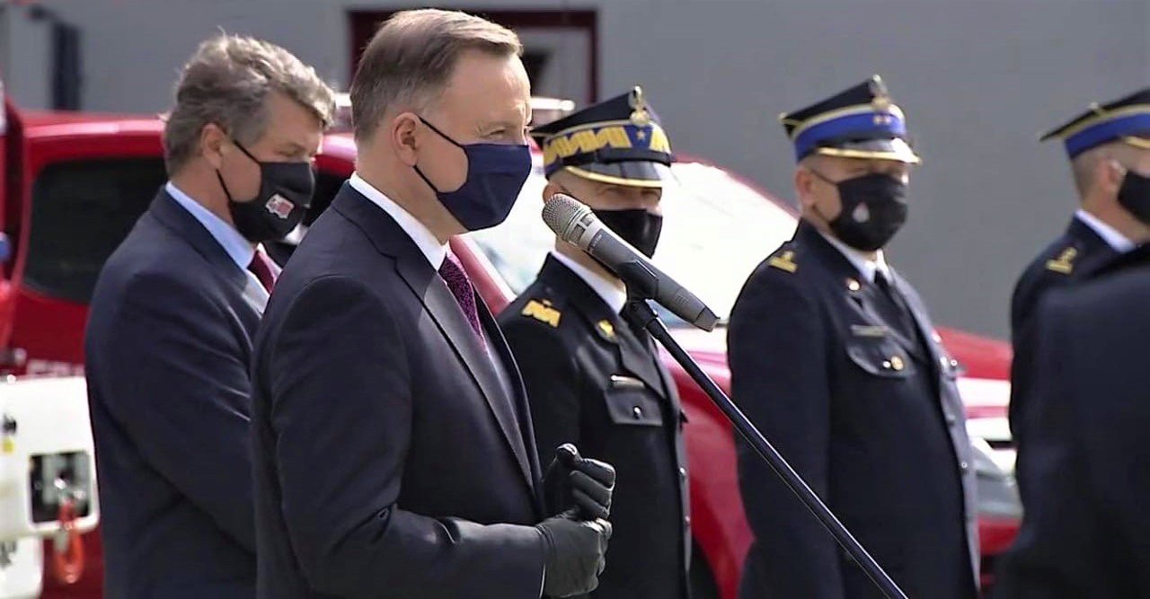 Prezydent Andrzej Duda podkreślił, że służba strażaków ochotników ma wielkie znaczenie dla budowy systemu bezpieczeństwa Polski.