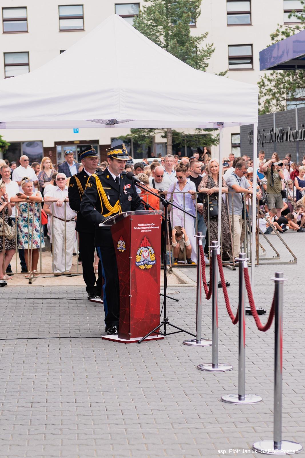 Chciałbym zwrócić uwagę, że st. str. kdt Sonia Zawada (tegoroczna absolwentka), brała udział w trzeciej edycji wydarzenia Young Civil Protection Professionals (YCPP), które zostało zorganizowane przez Komisję Europejską, pod egidą Unijnej Sieci Wiedzy Ochrony Ludności. Udział w tym wydarzeniu jest dużym wyróżnieniem i nobilitacją dla Szkoły Aspirantów PSP w Poznaniu”.