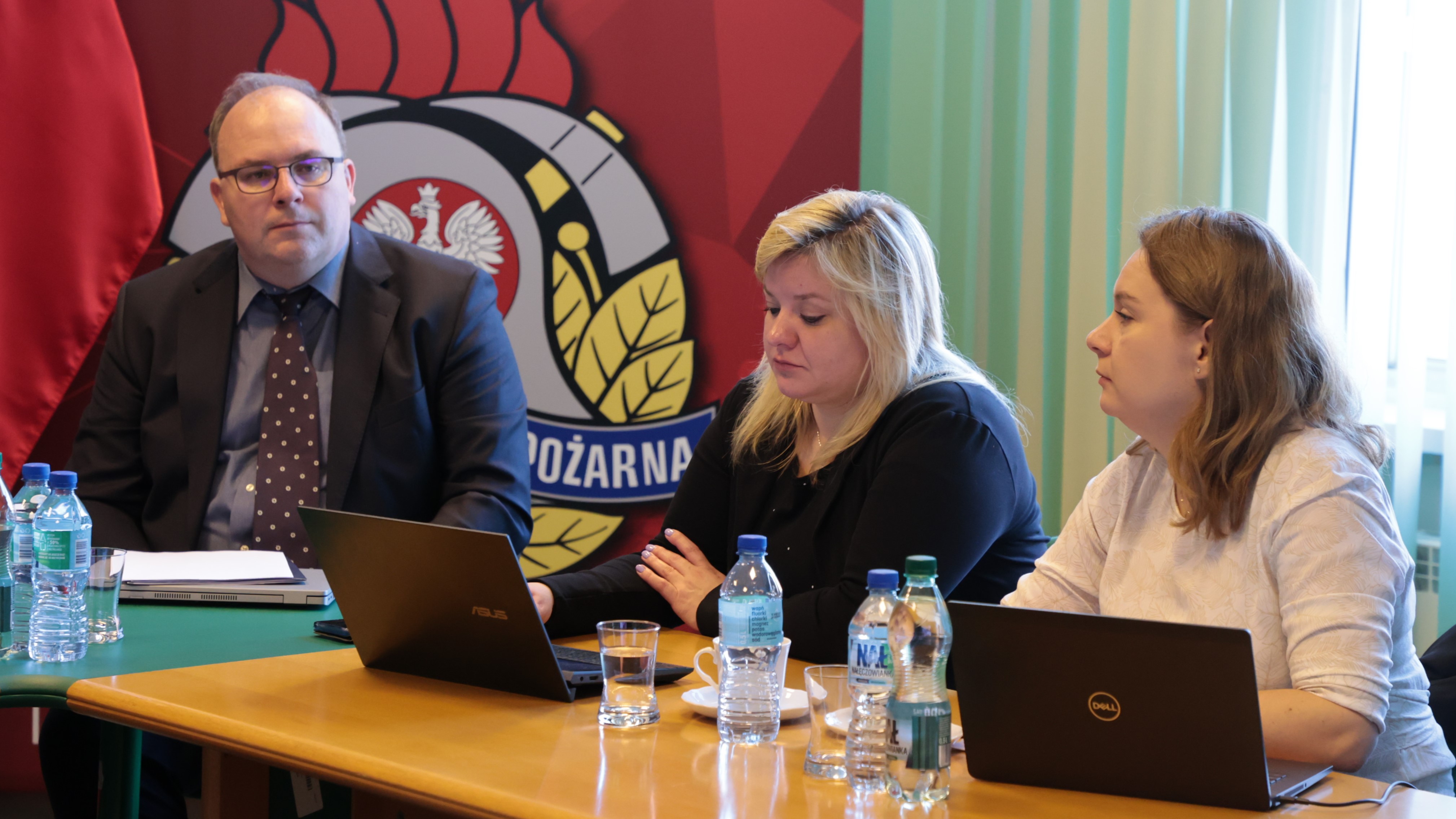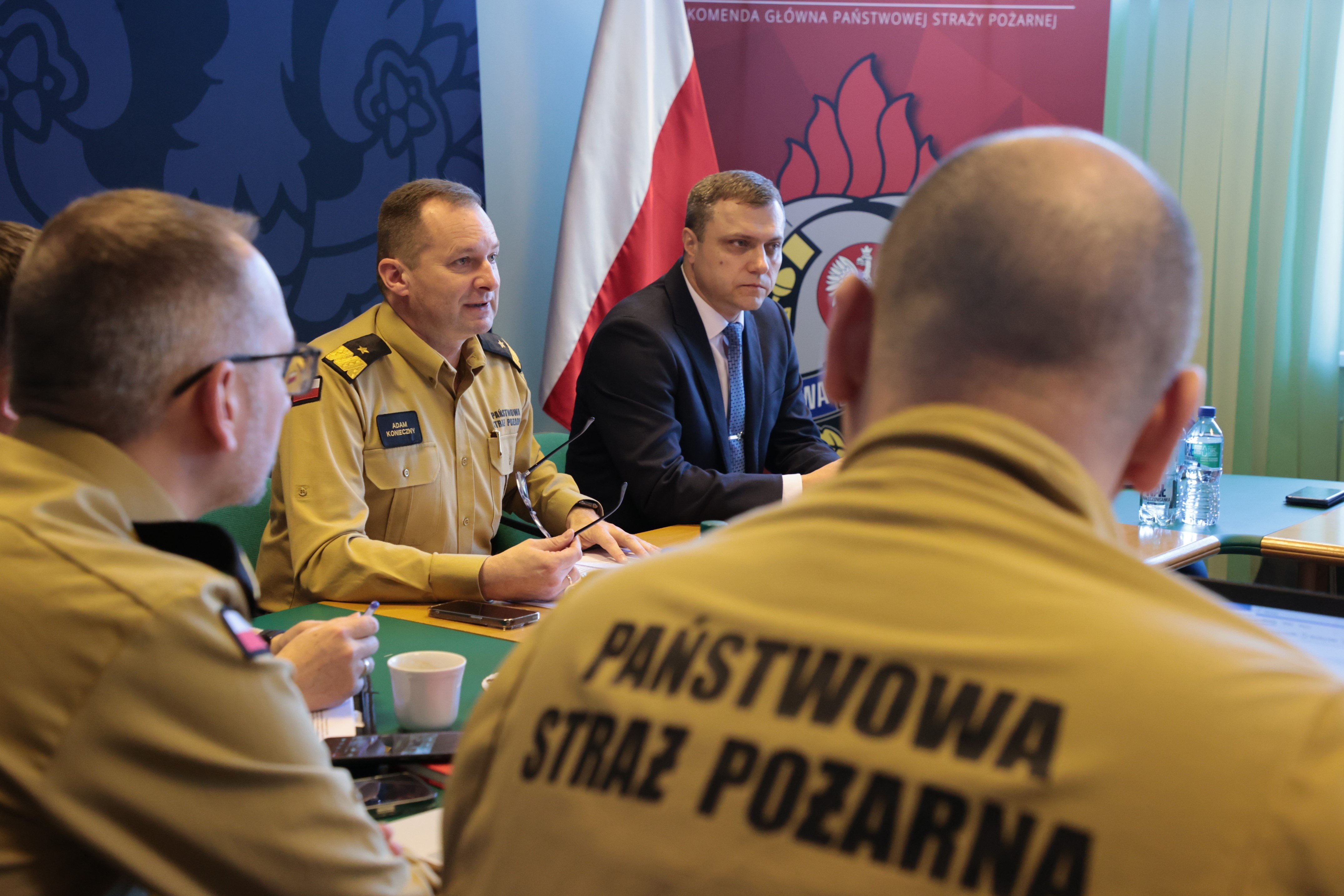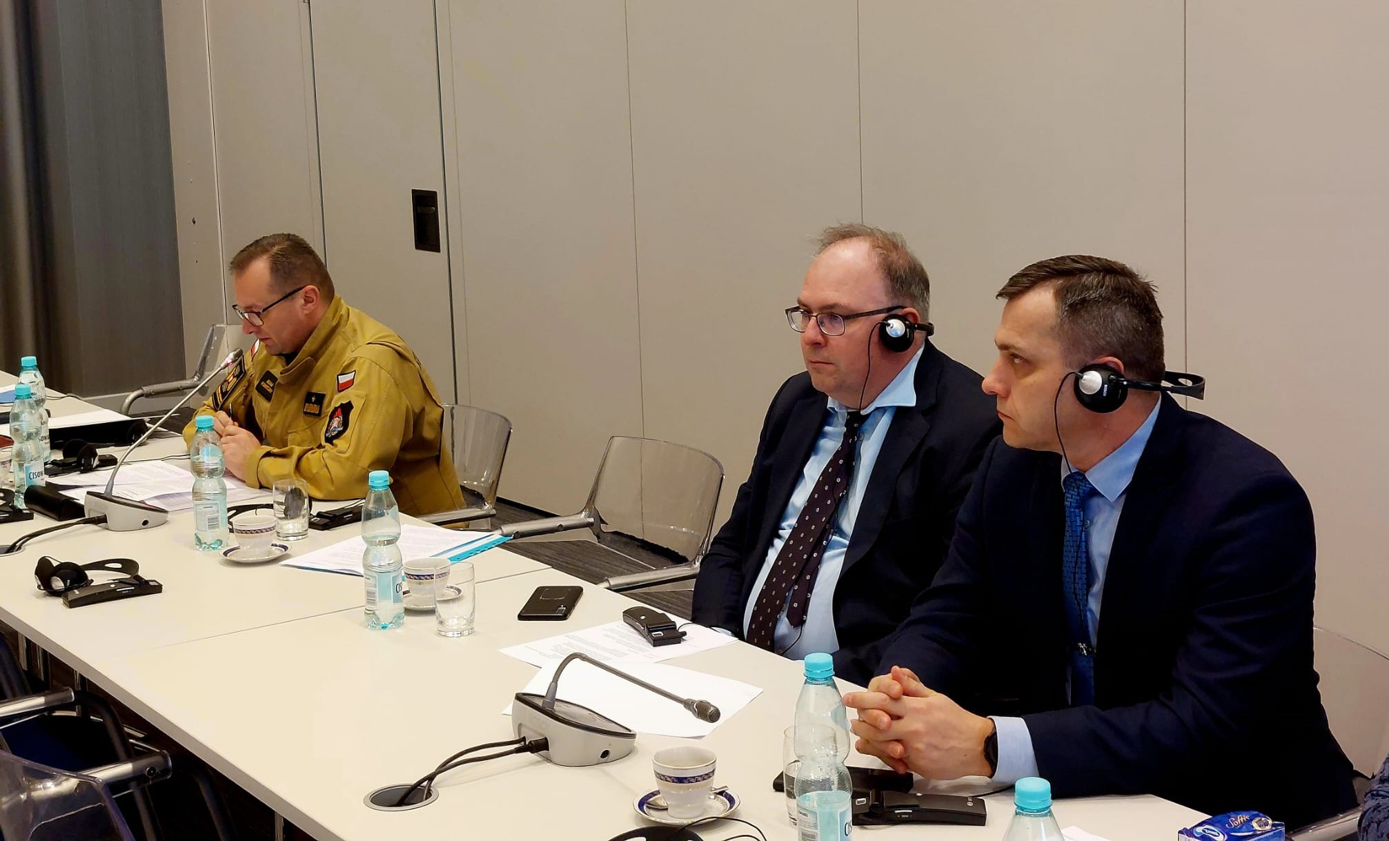 W spotkaniu udział wziął nadbryg. dr inż. Adam Konieczny zastępca komendanta głównego PSP przewodniczący polskiej części grupy, funkcjonariusze Komendy Głównej PSP oraz w trybie wideokonferencji przedstawiciele Komend Wojewódzkich PSP z Wrocławia, Opola i Katowic.