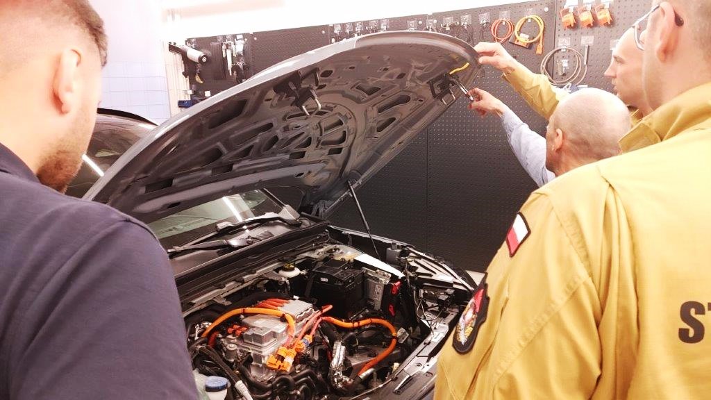Przedstawiciele PSP wzięli udział w warsztatach z zakresu działania służb ratowniczych w kontaktach z pojazdami nowej generacji