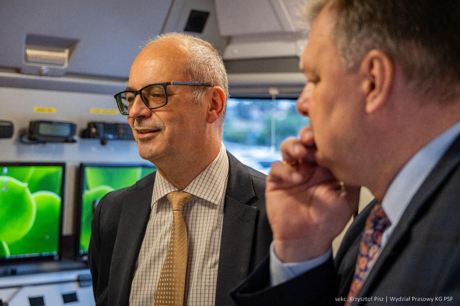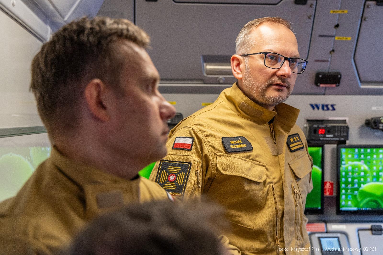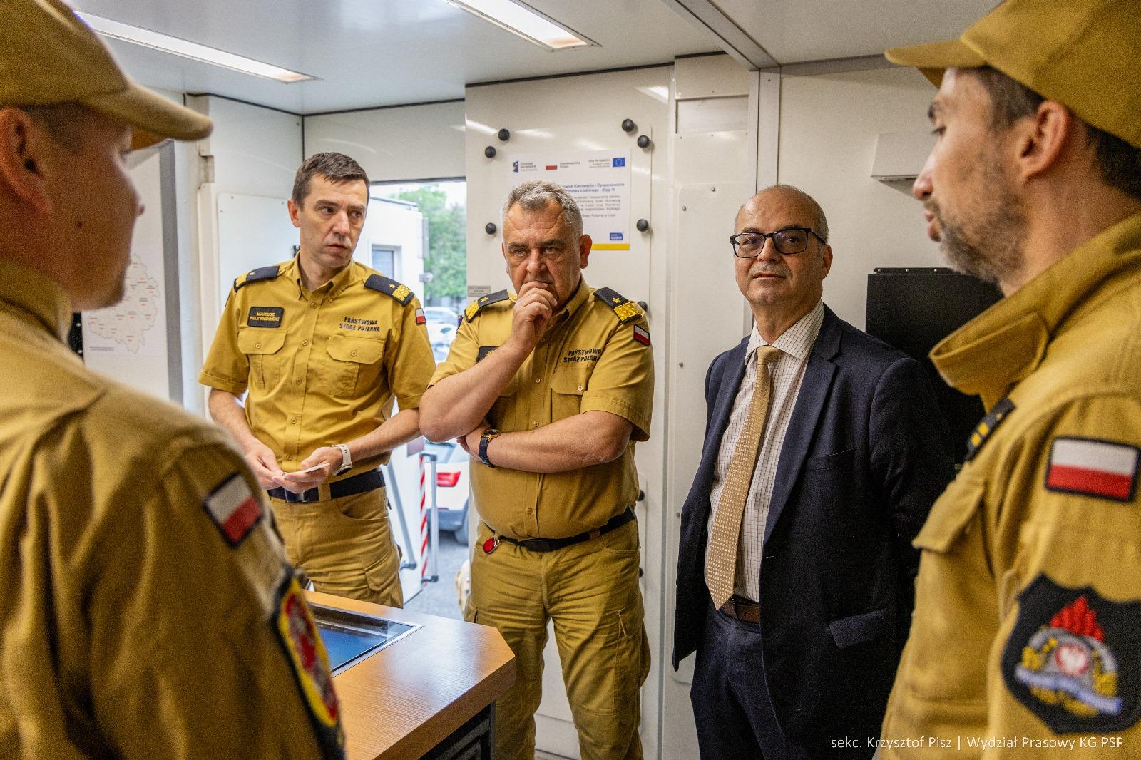 Przedstawiciele RCB zapoznali się w KG PSP z nowoczesnymi rozwiązaniami technologicznymi w zakresie wykorzystania Samochodów Dowodzenia i Łączności