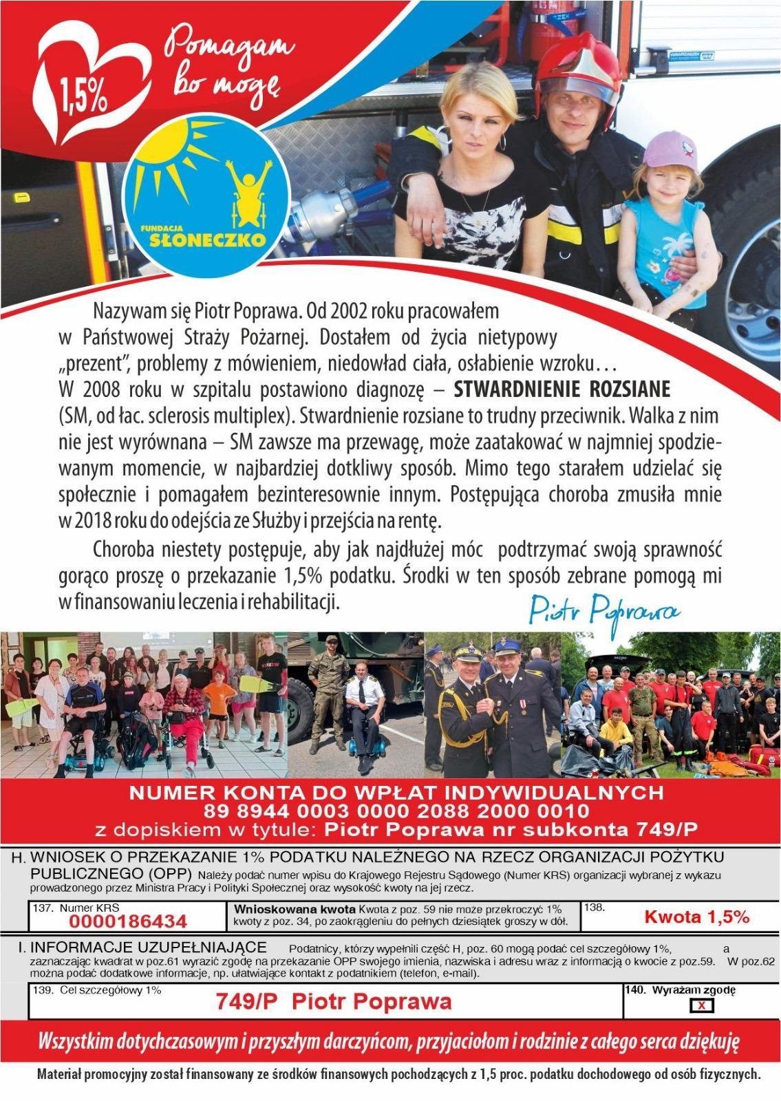 Przekaż 1,5% podatku dla Piotra Poprawy