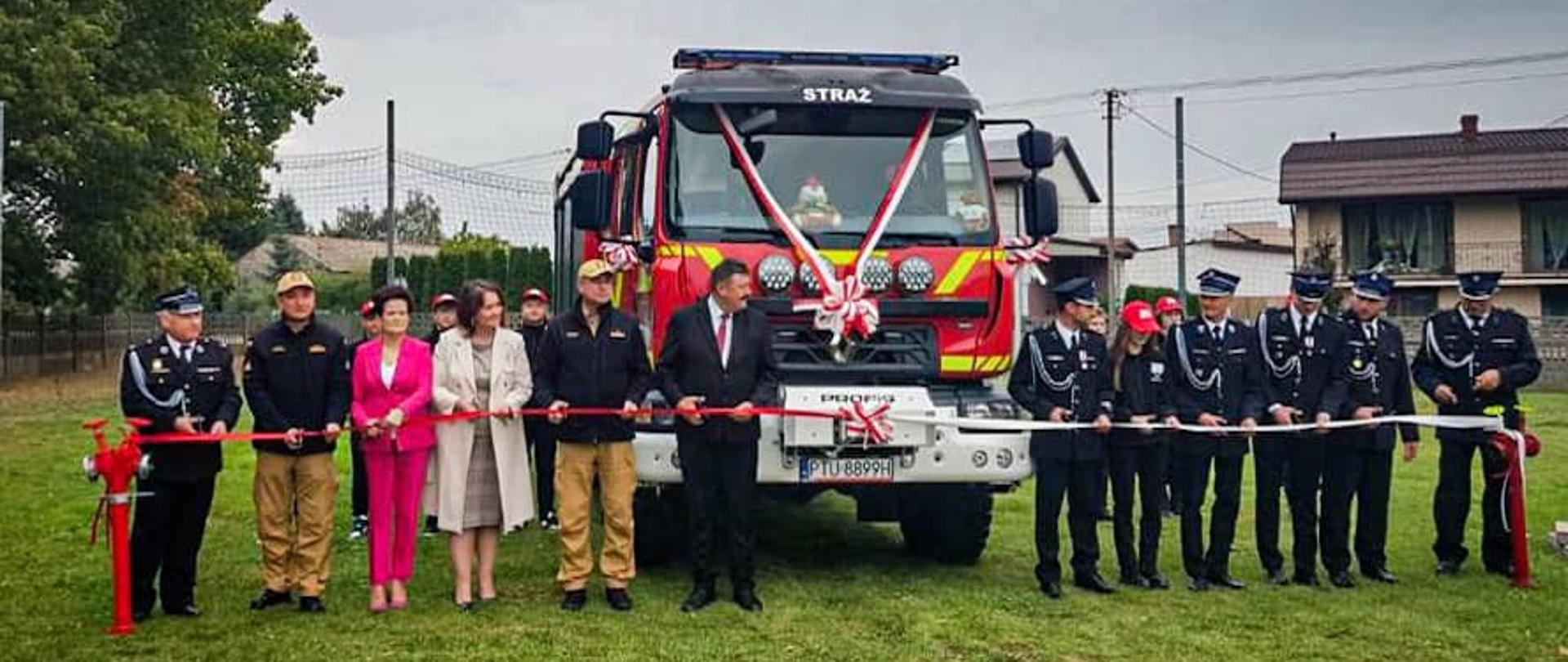 Kluczyki do nowego pojazdu zostały wręczone przedstawicielom jednostki przez nadbryg. dr inż. Arkadiusza Przybyłę - zastępcę komendanta głównego Państwowej Straży Pożarnej oraz zaproszonych gości.