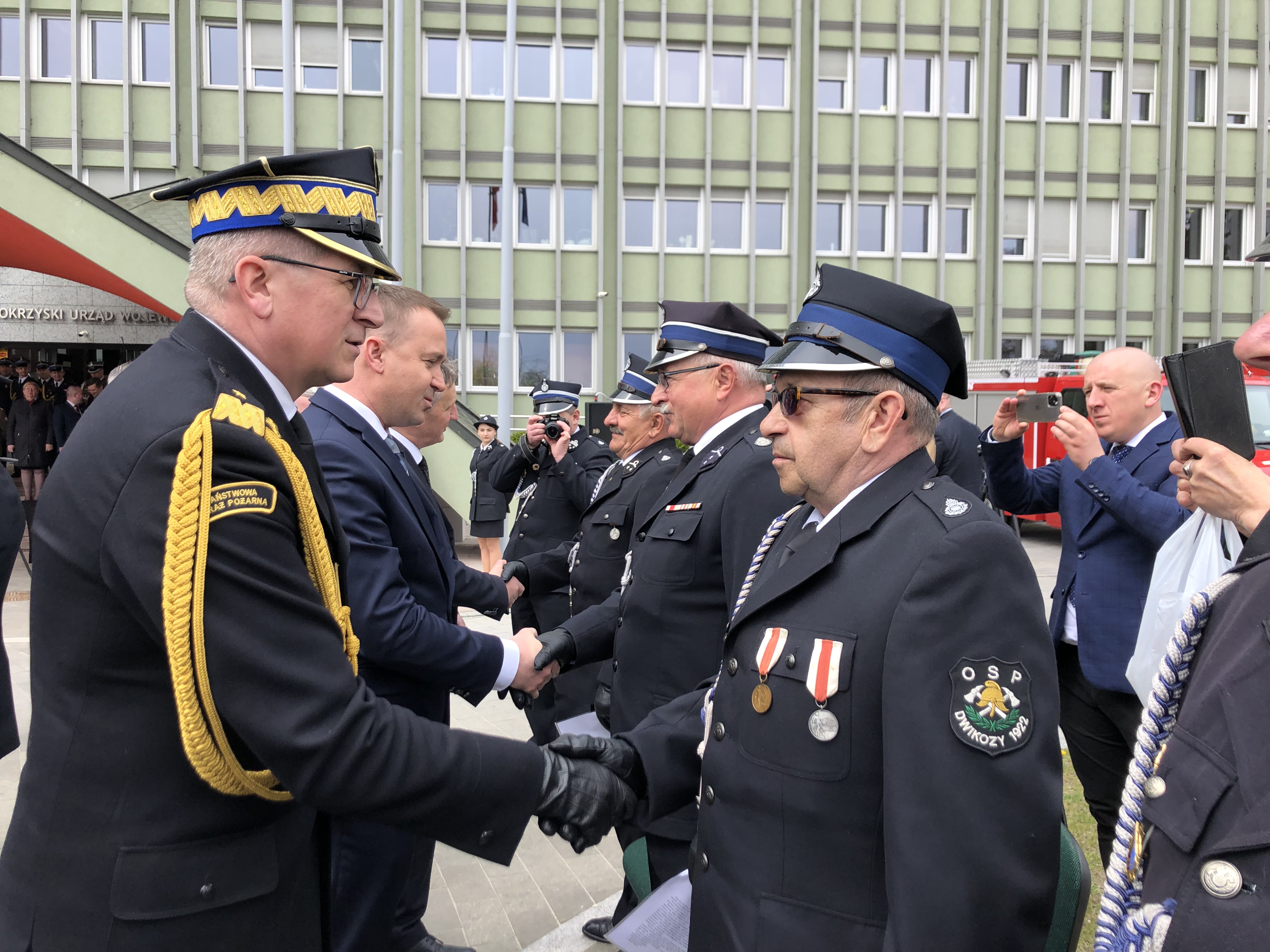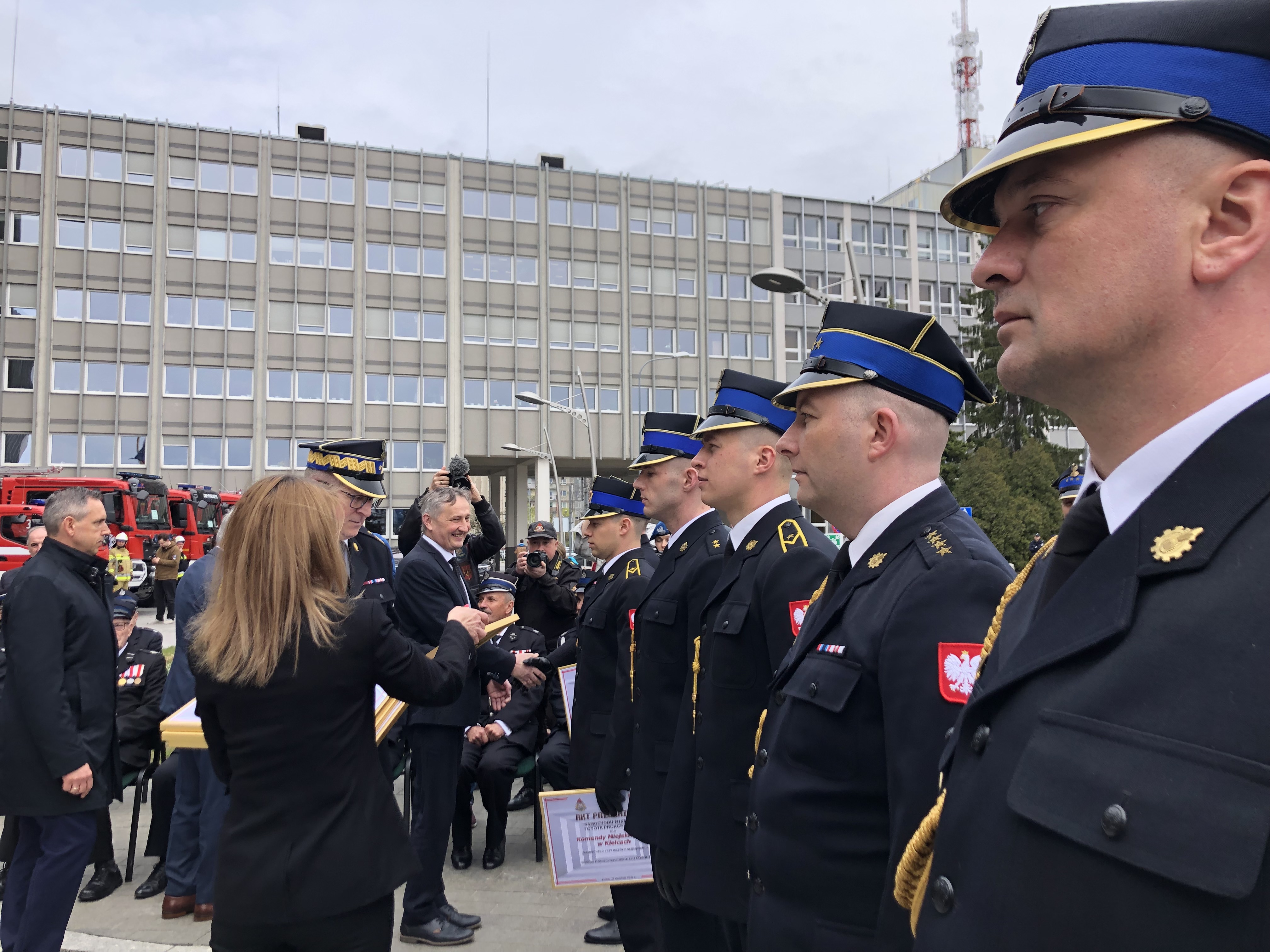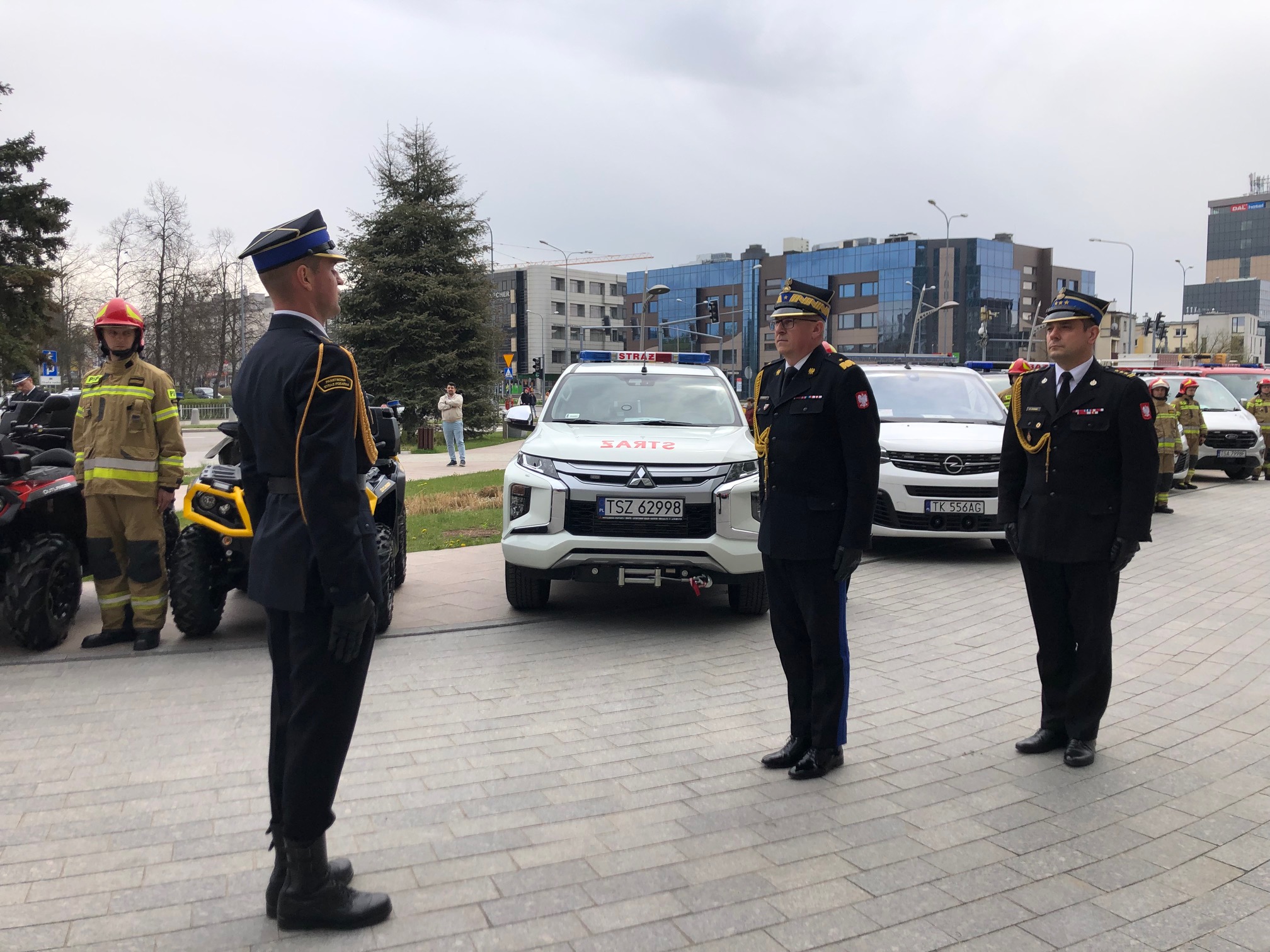Potencjał Państwowej Straży Pożarnej wzbogaciło 28 pojazdów, a 20 trafiło do jednostek Ochotniczych Straży Pożarnych. Wręczono również 26 promes na zakup nowych pojazdów ratowniczo-gaśniczych do świętokrzyskich jednostek Ochotniczych Straży Pożarnych w 2022 roku. Dodatkowo 15 weteranów strażackiego rzemiosła odebrało dziś z rąk zastępcy komendanta głównego Państwowej Straży Pożarnej decyzje o przyznaniu świadczenia ratowniczego dla strażaków OSP. Uroczystość miała wyjątkową oprawę, plac przed ŚUW wypełniony był po brzegi strażackimi samochodami.