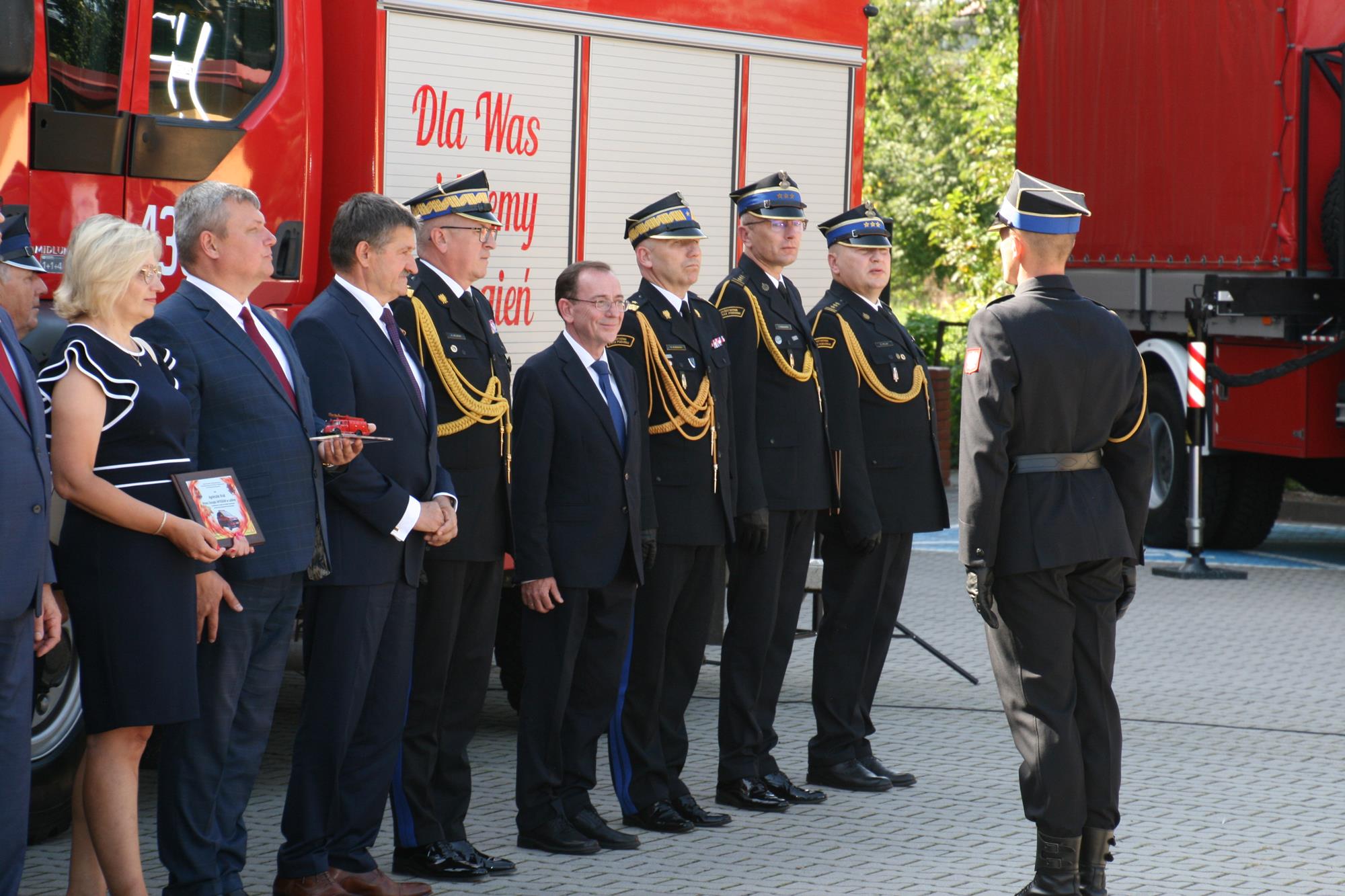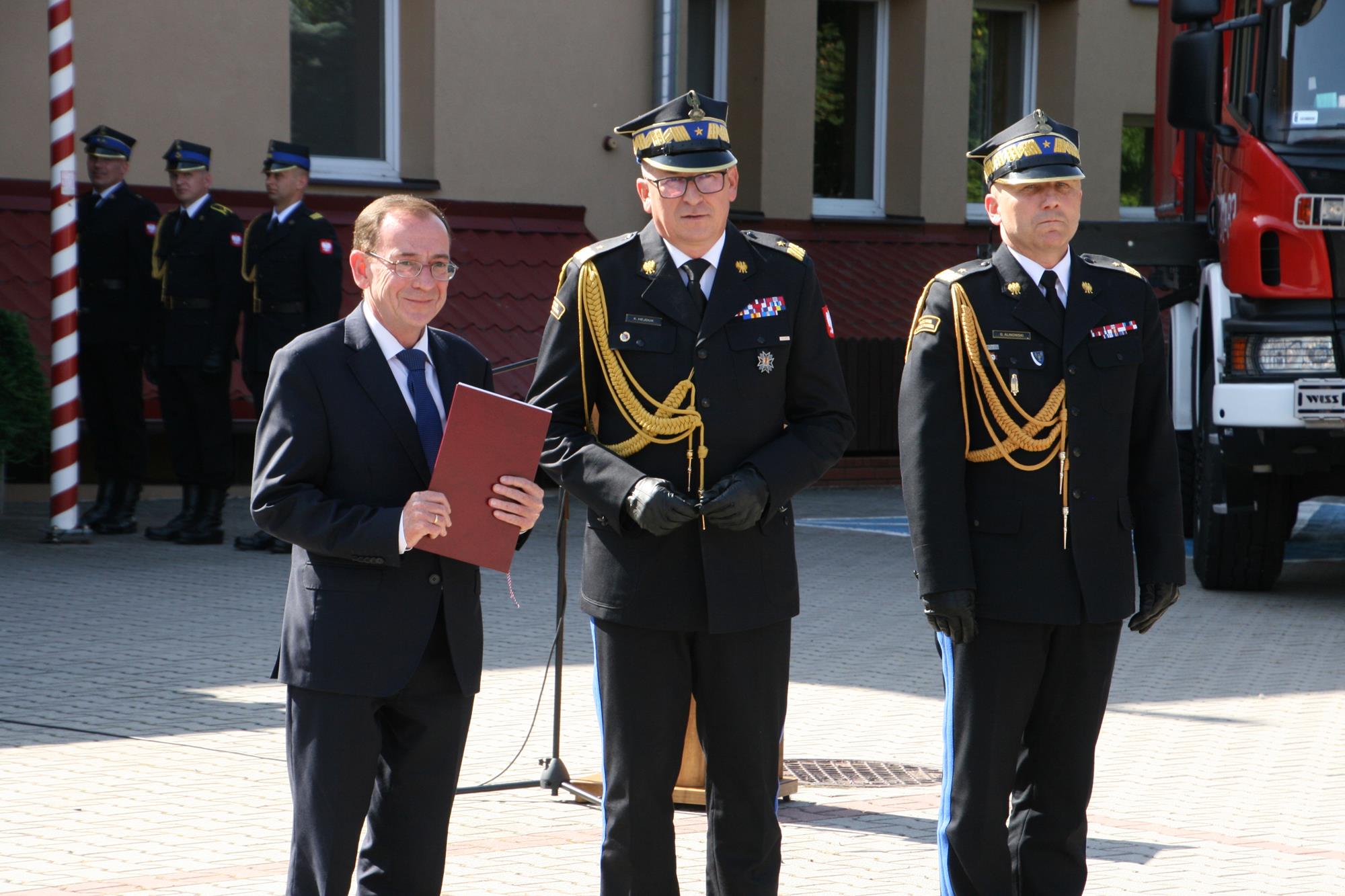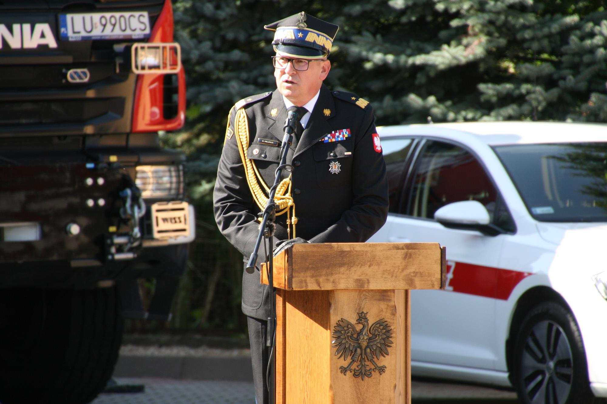 Zastępca komendanta głównego PSP nadbryg. Krzysztof Hejduk w swoim przemówieniu podkreślił: „Dzisiaj Państwowa Straż Pożarna jest reprezentantem na arenie międzynarodowej, gdzie w każdej chwili jesteśmy gotowi i coraz szybciej realizujemy łącznie z polską Policją działania ratowniczo-gaśnicze w innych krajach.(...) To właśnie zasługa doposażenia, wyszkolenia strażaków Państwowej Straży Pożarnej jak i druhów ochotników, na których zawsze możemy liczyć, którzy nam pomagają w ramach krajowego systemu ratowniczo-gaśniczego i nie tylko. (…) Chciałem podziękować za waszą ofiarną służbę, zarówno funkcjonariuszy PSP jak i ochotników, za to, co ostatnimi laty robiliśmy a robiliśmy wiele. Liczę na to że nadal będziemy się rozwijać, zawsze służyć pomocą".