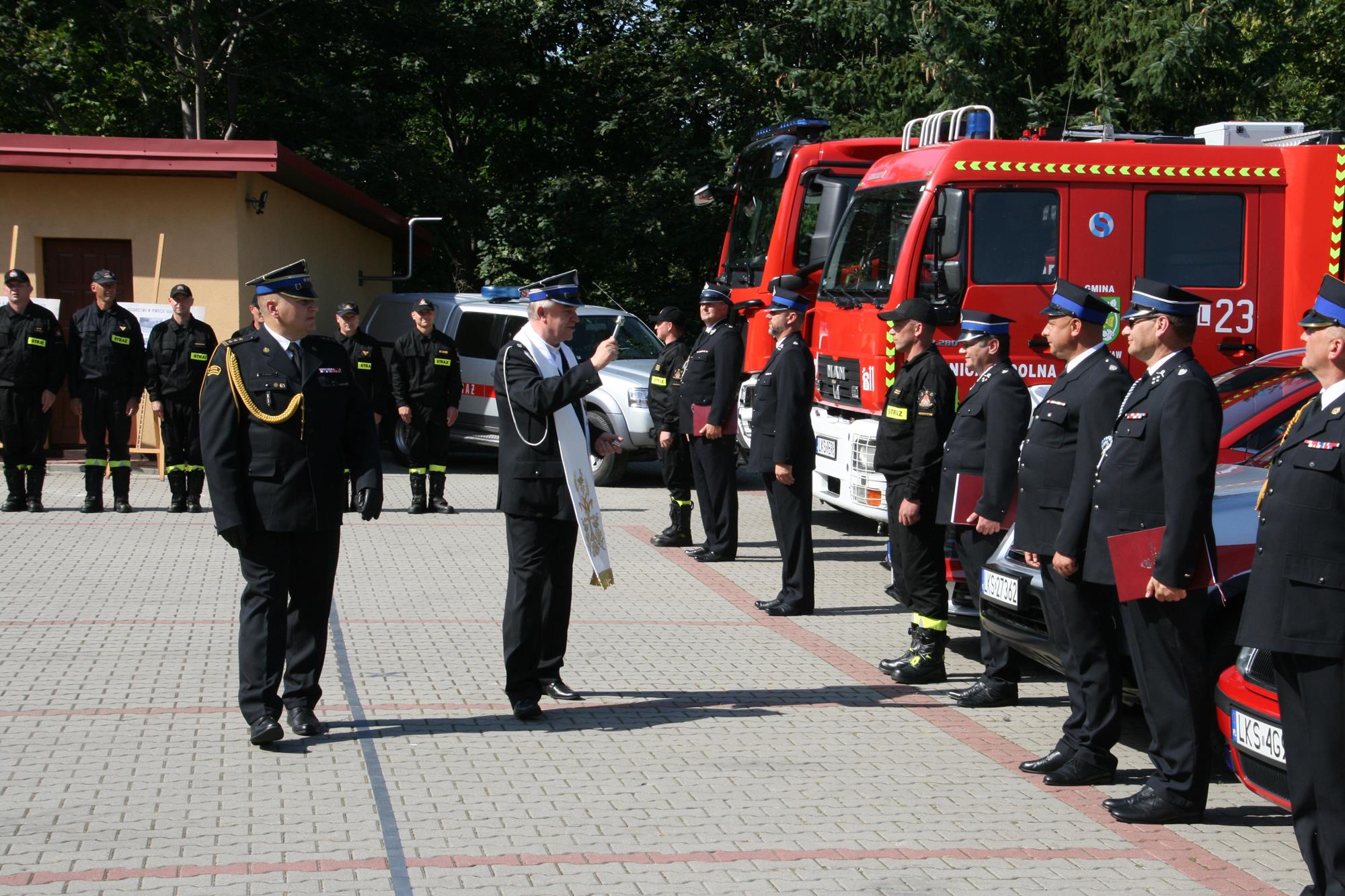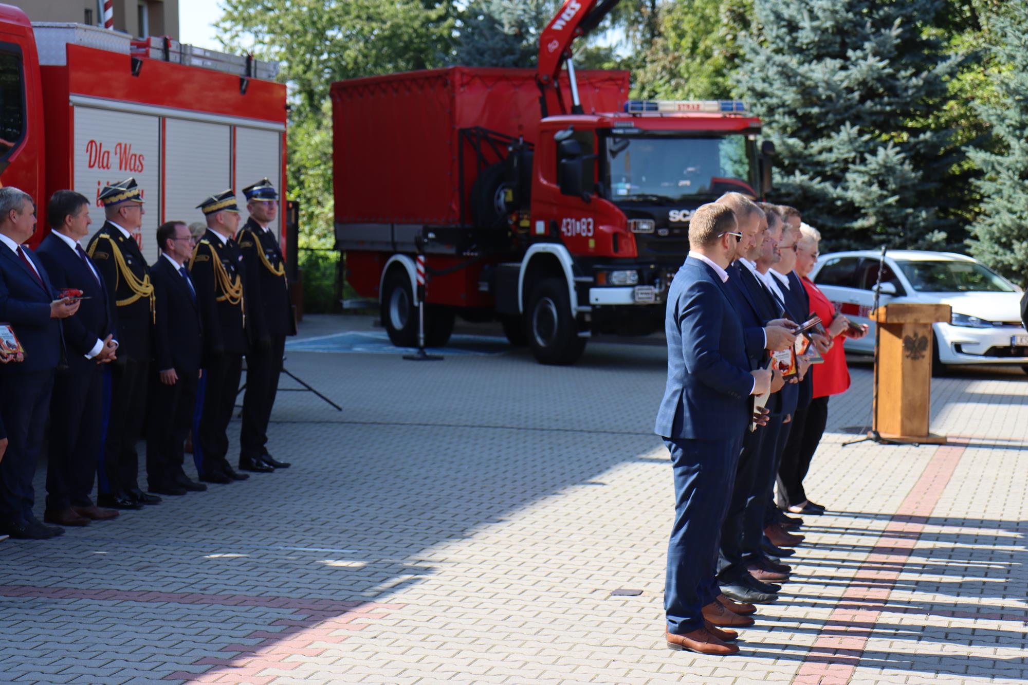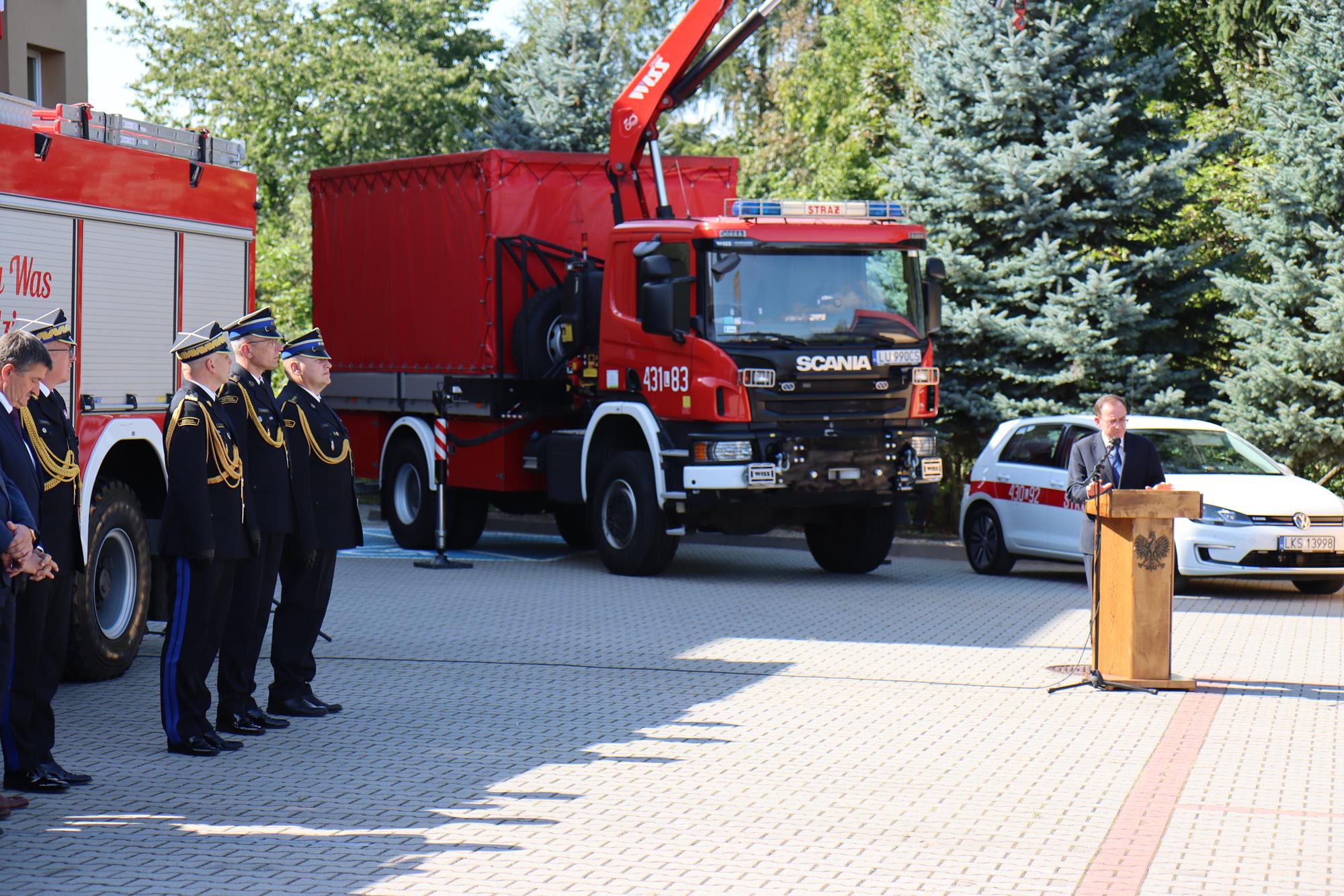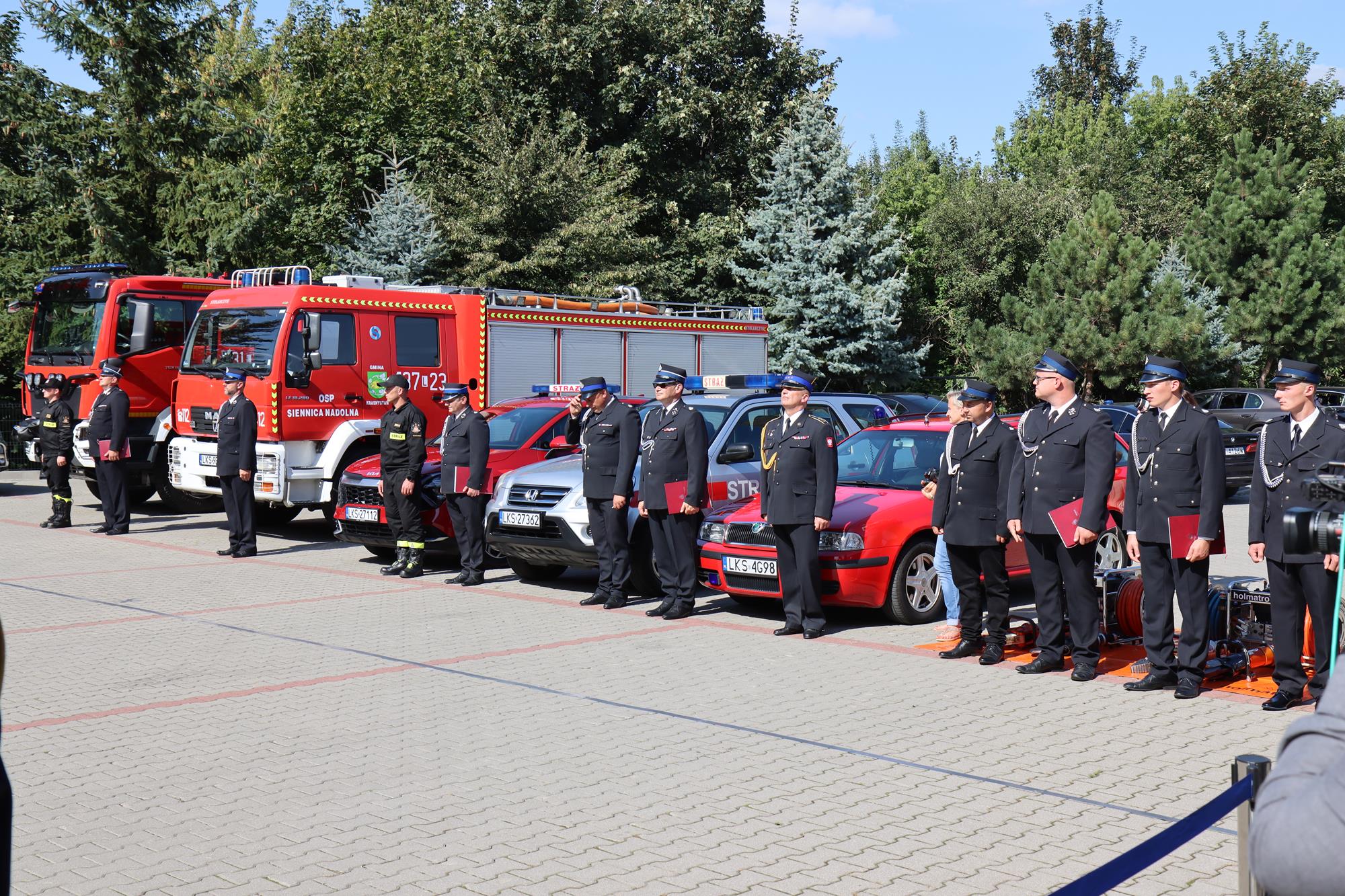 8 września 2023 roku na placu wewnętrznym krasnostawskiej komendy powiatowej PSP odbyło się uroczyste poświęcenie i przekazanie 5 samochodów pożarniczych oraz 2 ciężkich zestawów hydraulicznych do ratownictwa technicznego.