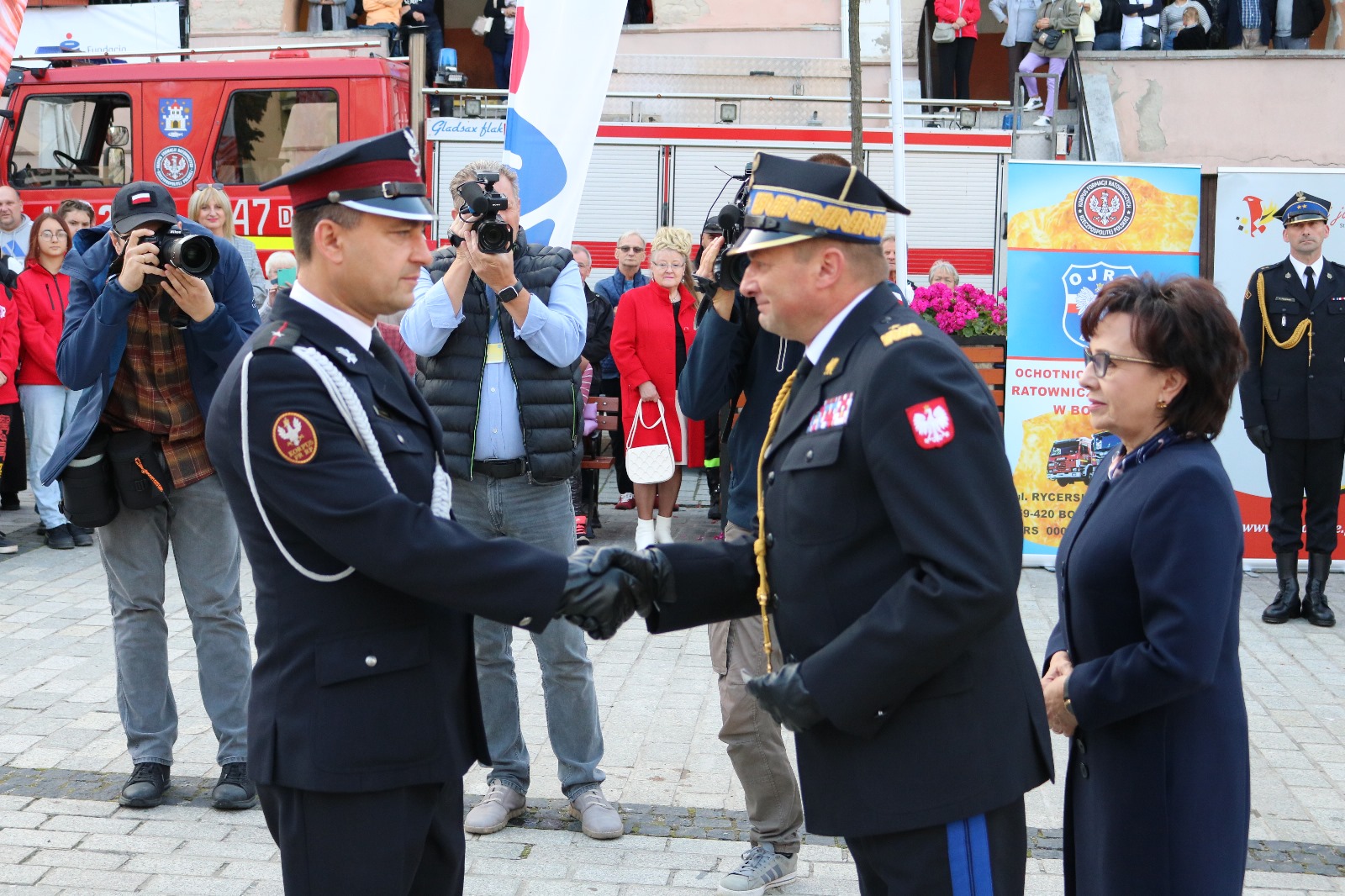 Przekazanie samochodu ratowniczo – gaśniczego w Bolkowie - uroczystość z udziałem Marszałek Sejmu RP oraz Zastępcy Komendanta Głównego PSP