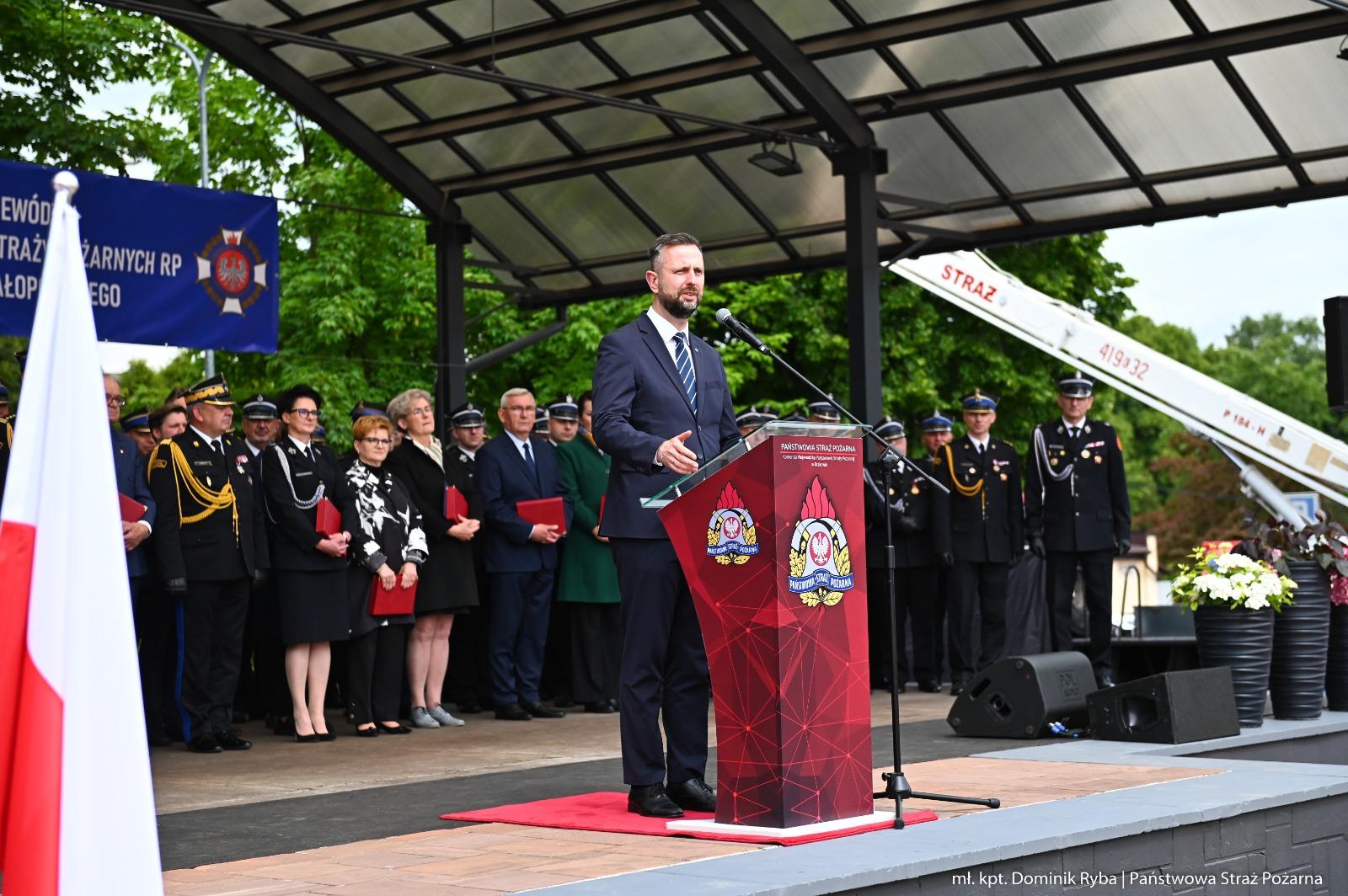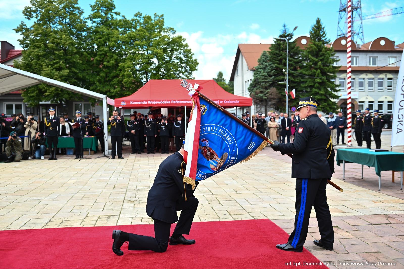 Podczas uroczystości szef małopolskich strażaków, st. bryg. Przemysław Przęczek, nawiązał do historii brzeskiej jednostki, przypominając o tragicznym pożarze z 1904 roku, który zniszczył ponad 400 budynków w mieście.