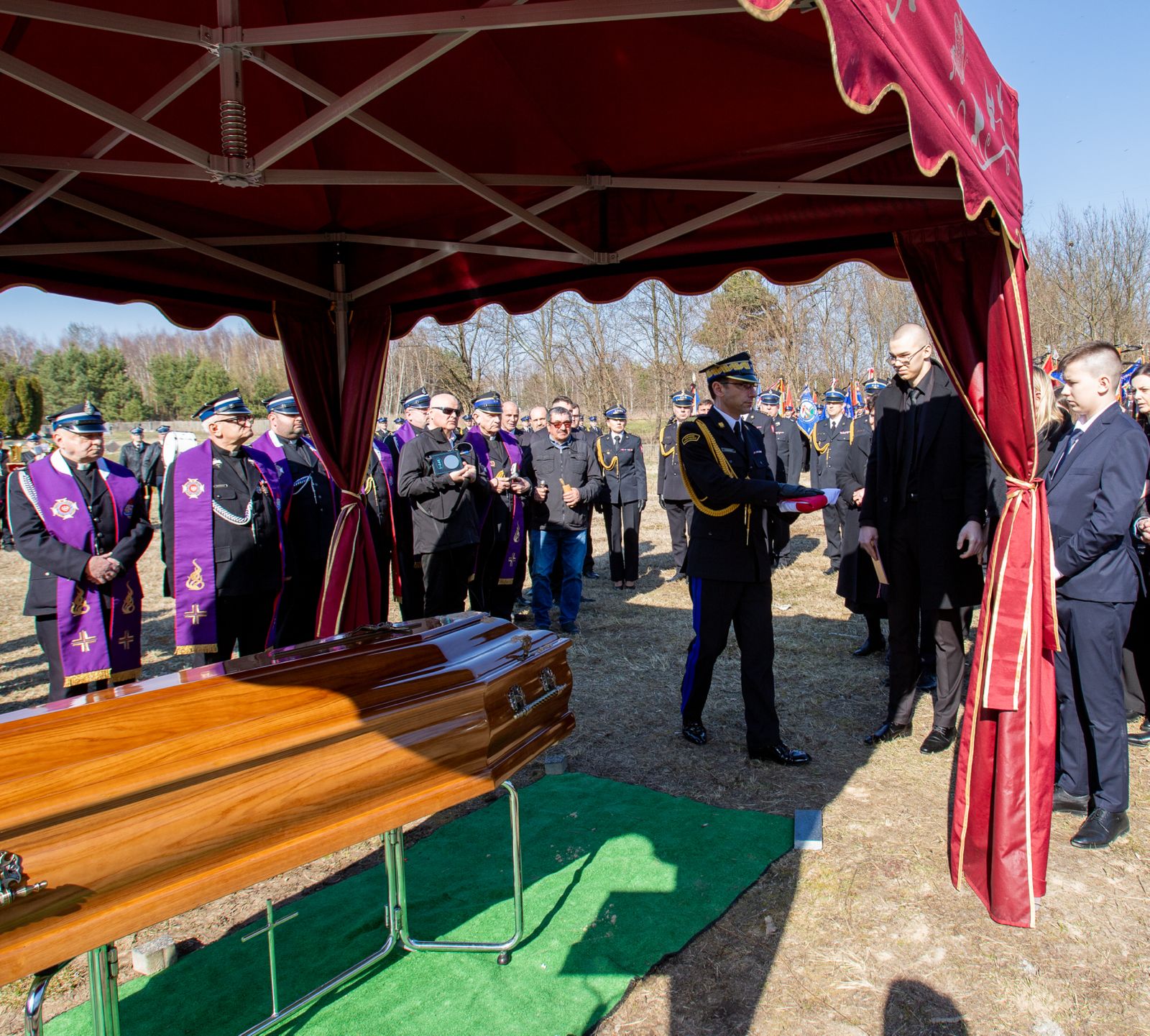 W ostatnim pożegnaniu śp. Sebastiana udział wzięła Kompania Reprezentacyjna Komendy Wojewódzkiej PSP w Kielcach, a także liczne poczty sztandarowe PSP i OSP.