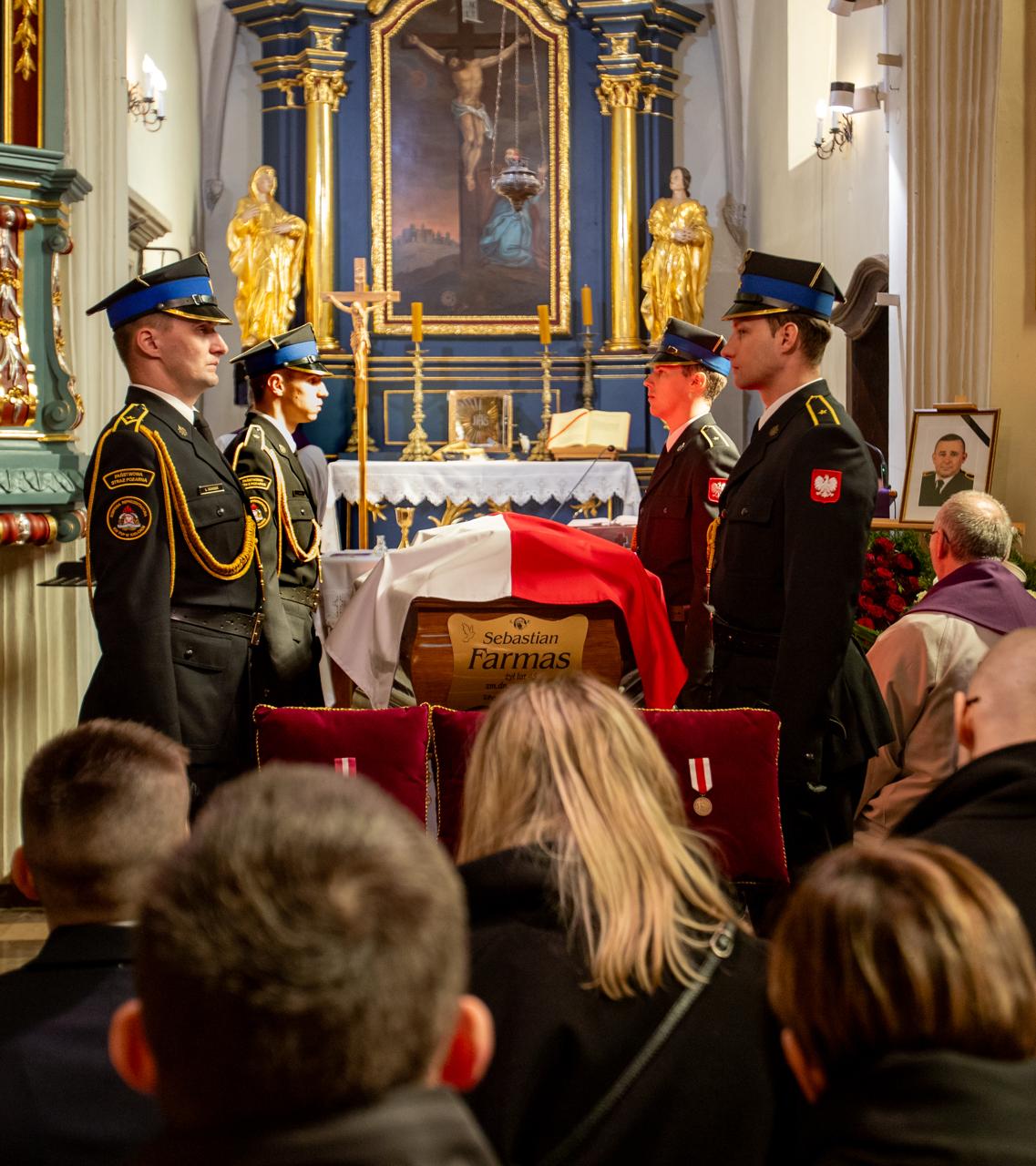 Podczas mszy świętej pogrzebowej we wspólnej modlitwie udział wzięła rodzina i przyjaciele śp. Sebastiana, a także liczne delegacje funkcjonariuszy i pracowników cywilnych Państwowej Straży Pożarnej na czele z komendantem głównym PSP nadbryg. Wojciechem Kruczkiem, druhowie Ochotniczych Straży Pożarnych oraz przedstawiciele służb, instytucji i formacji współpracujących z Państwową Strażą Pożarną.