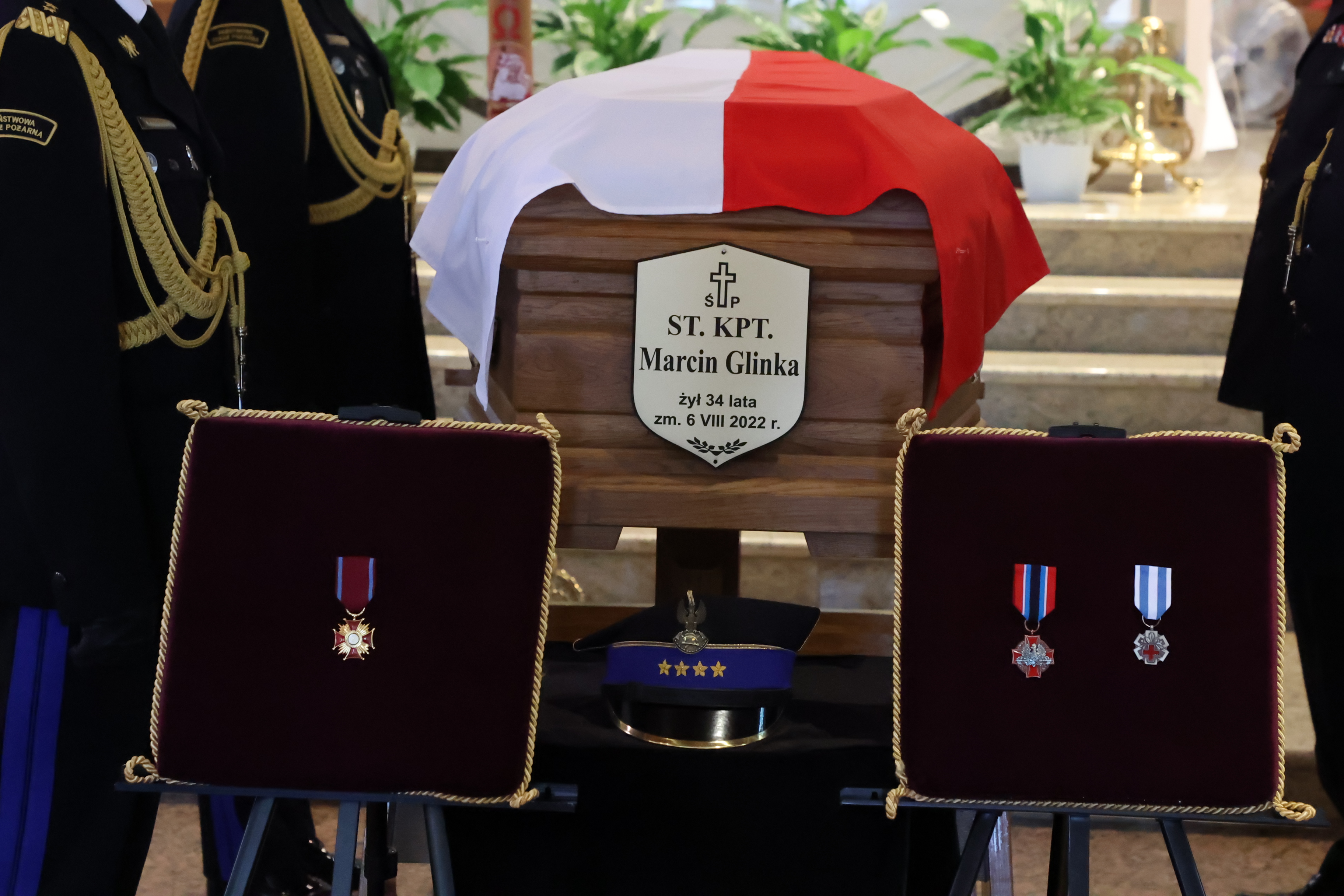 Z pełnym ceremoniałem, przy udziale Kompanii Reprezentacyjnej Państwowej Straży Pożarnej, odbyły się dziś uroczystości pogrzebowe starszego kapitana Marcina Glinki – funkcjonariusza Komendy Głównej Państwowej Straży Pożarnej, który zmarł 6 sierpnia 2022 roku w nieszczęśliwym wypadku na służbie.