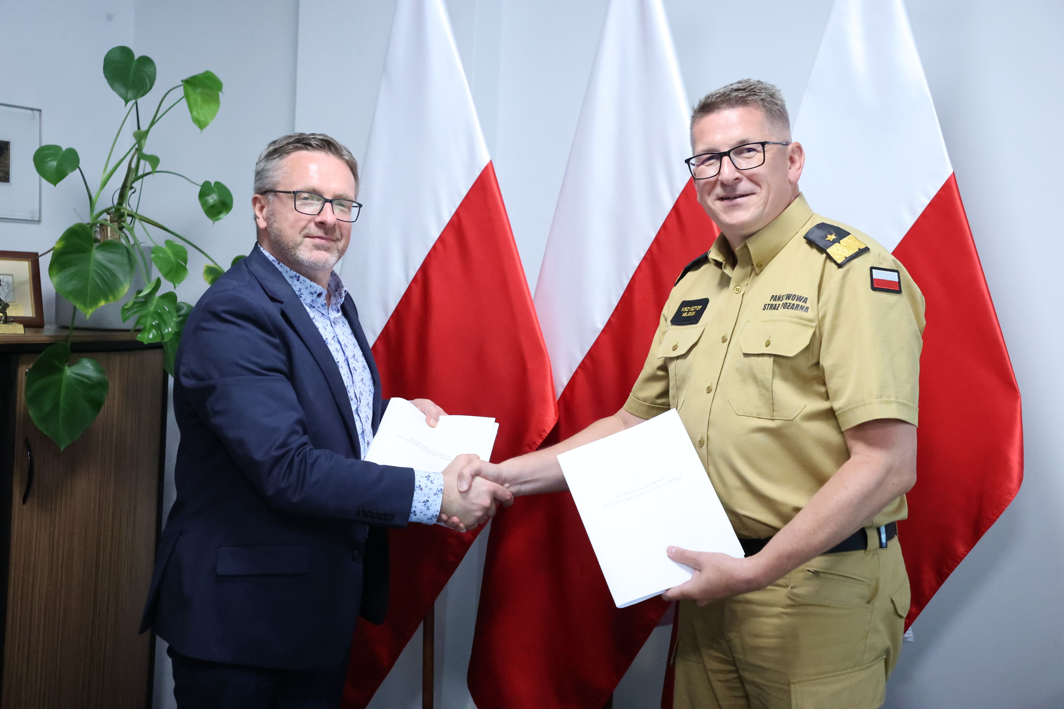 W piątek 29 lipca 2022 r. w siedzibie Komendy Głównej PSP podpisana została umowa na dostawę koszul służbowych według nowego wzoru umundurowania, wprowadzonego Rozporządzeniem Ministra Spraw Wewnętrznych i Administracji z dnia 29 września 2021 r. w sprawie umundurowania strażaków Państwowej Straży Pożarnej (Dz.U. 2021, poz. 1795).