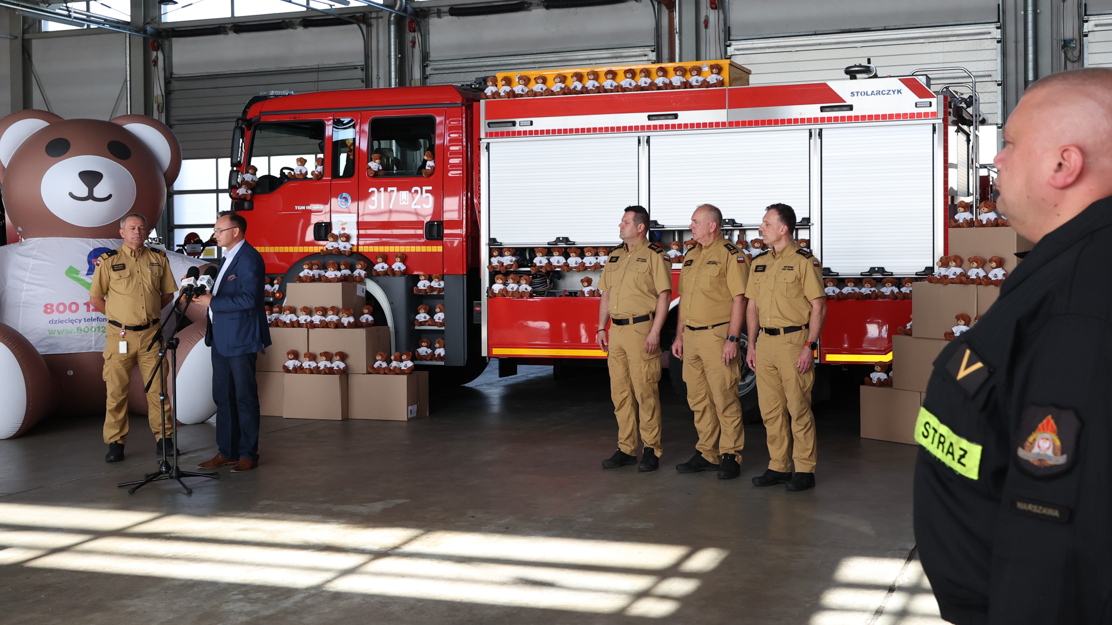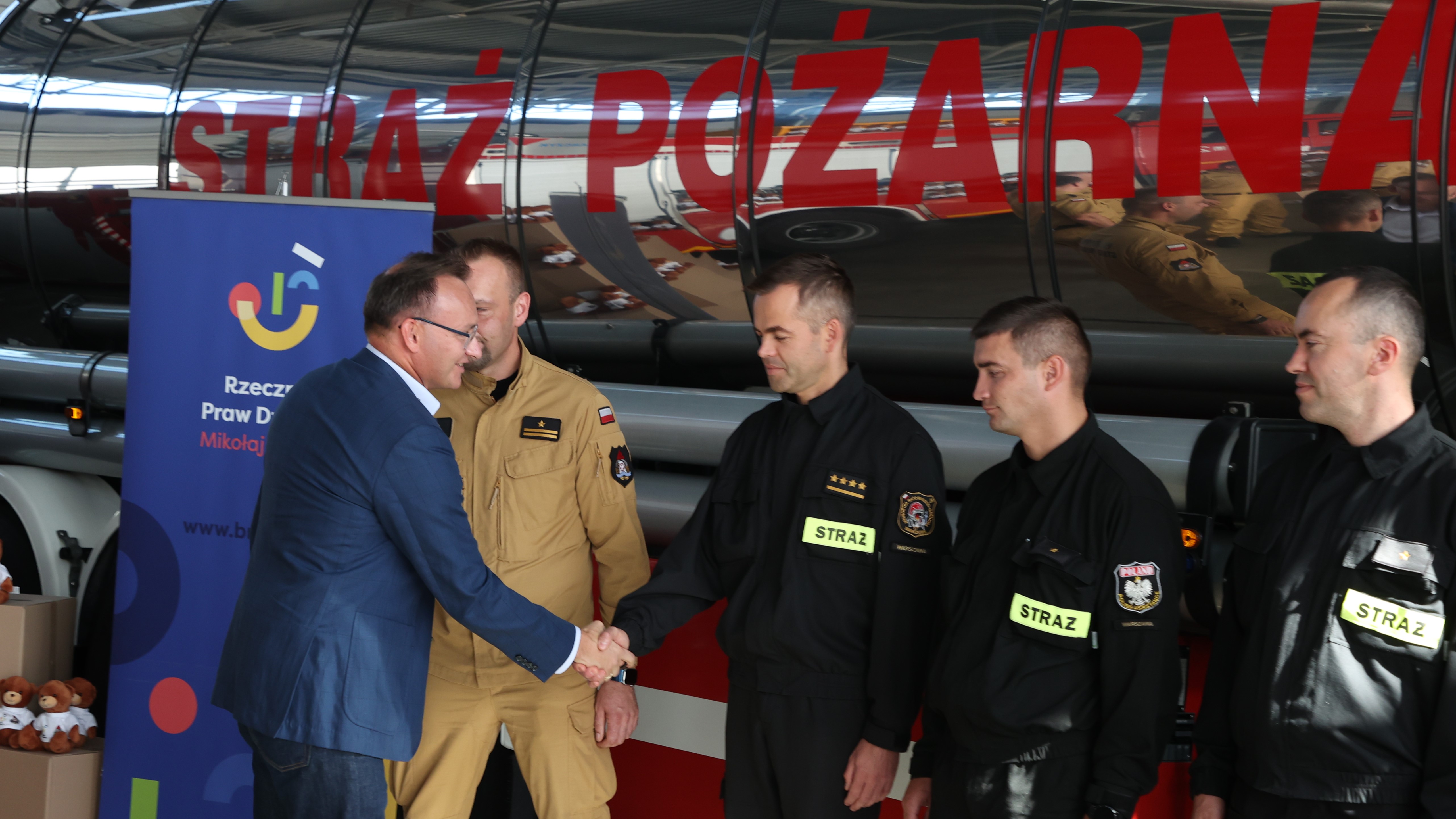 „W dramatycznych sytuacjach życiowych, nieraz związanych ze śmiercią bliskich osób, takich jak wypadki drogowe, niezwykle ważne jest wsparcie dziecka, rannego czy pogrążonego w traumie. Pomóc może każdy drobiazg, przytulenie, miłe słowo, a także wręczona zabawka. Takie zadanie mają właśnie nasi mali pluszowi pomocnicy strażaków. Ich sympatyczne buźki z pewnością pomogą uspokoić wiele dzieci”– podkreślił Rzecznik Praw Dziecka Mikołaj Pawlak podczas przekazania misiów strażakom. I podziękował strażakom za ich służbę na rzecz społeczeństwa, które obdarza straż pożarną ogromnym zaufaniem.