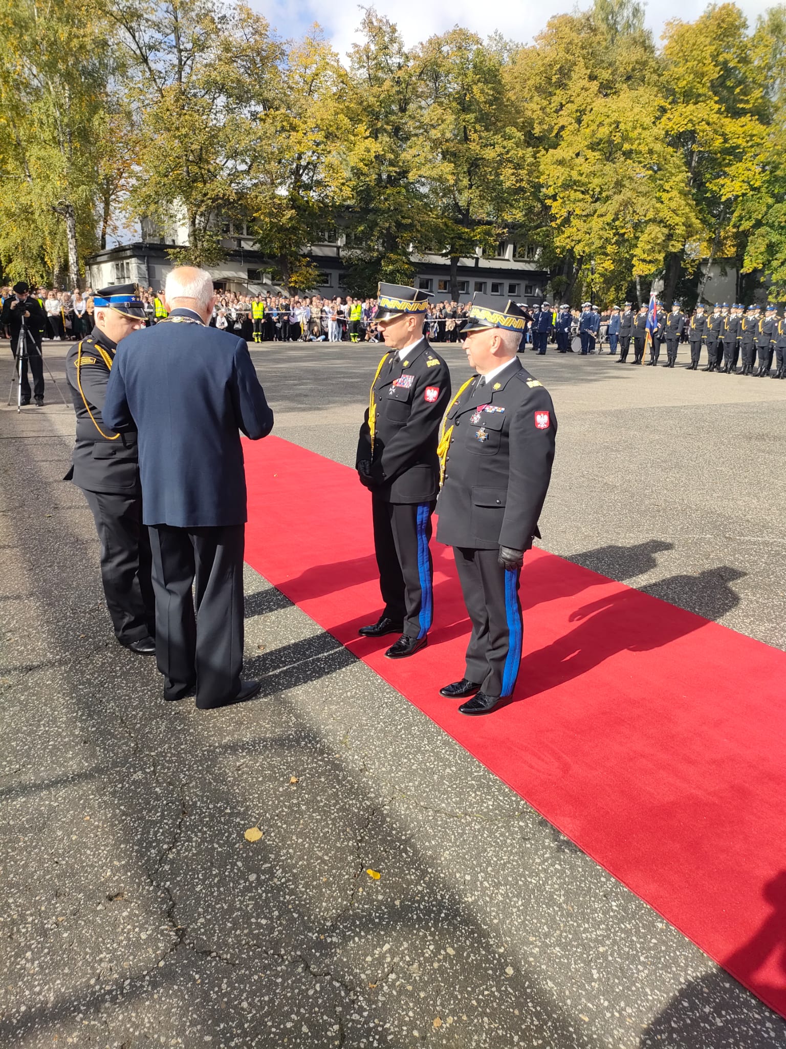 Dzisiaj o polskiej straży mówi się bardzo dobrze. Trafiacie do formacji kiedy jest w swoim najwyższym poziomie w historii. 31 lat wspaniałych pokoleń strażaków pracowało na to, że dzisiaj jesteśmy zupełnymi liderami. Ale to też jest dzięki temu, że były ochotnicze straże pożarne. Najstarsze jednostki w Polsce mają 200 lat! To tam kultywowano patriotyzm, tam właśnie przechowywano sztandary kiedy byliśmy okupowani i ta polskość przetrwała właśnie w strażach pożarnych. Dzisiaj jesteśmy efektem tego.(…) Z dumą nosicie orła na swoich mundurach i biało czerwoną zawsze w sercu!”