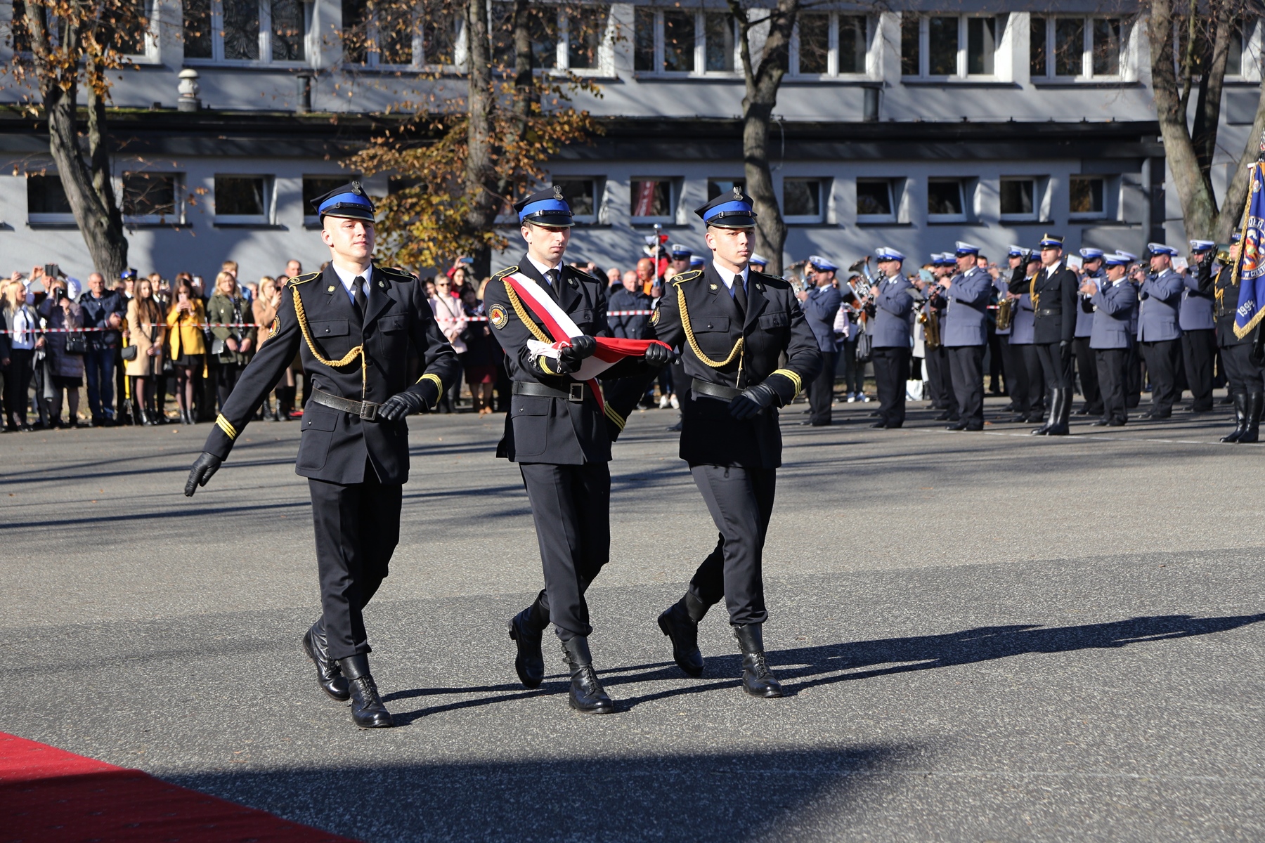 Szanowni Państwo, to też wyjątkowy czas, kiedy dołączacie do Państwowej Straży Pożarnej. Po pierwsze, to 30 lat funkcjonowania naszej instytucji. I po 3 dekadach jesteśmy naprawdę jedną z najlepszych ekip na świecie. Jeździmy po całym świecie, latamy po całym świecie, pomagamy. Nie dalej jak wczoraj, poleciało 11 ratowników medycznych z Państwowej Straży Pożarnej do Rumunii, pomagać w walce z pandemią.