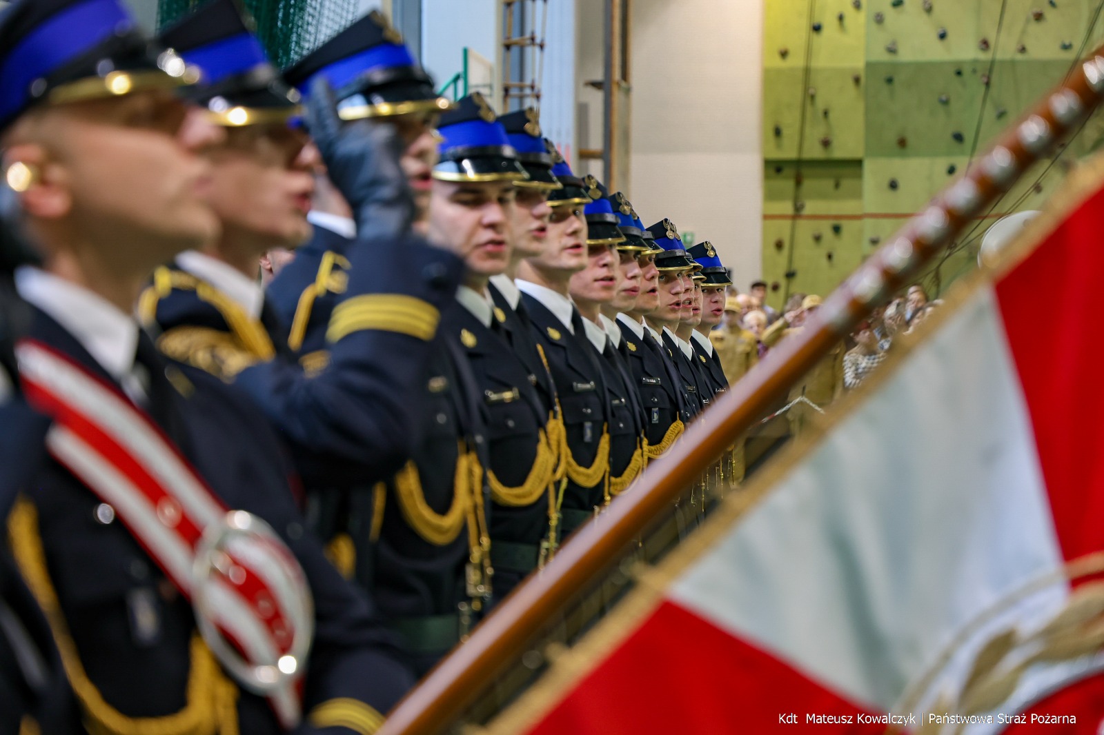 24 października 2025 roku odbyło się jedno z najważniejszych wydarzeń w życiu naszej społeczności – ślubowanie słuchaczy XXXV turnusu kształcenia dziennego Szkoły Aspirantów Państwowej Straży Pożarnej w Krakowie. Choć jesienna aura tym razem nie sprzyjała, uroczystość przeniesiono do hali gimnastycznej, która wypełniła się blaskiem mundurów, dźwiękiem orkiestry i emocjami towarzyszącymi tej wyjątkowej chwili.