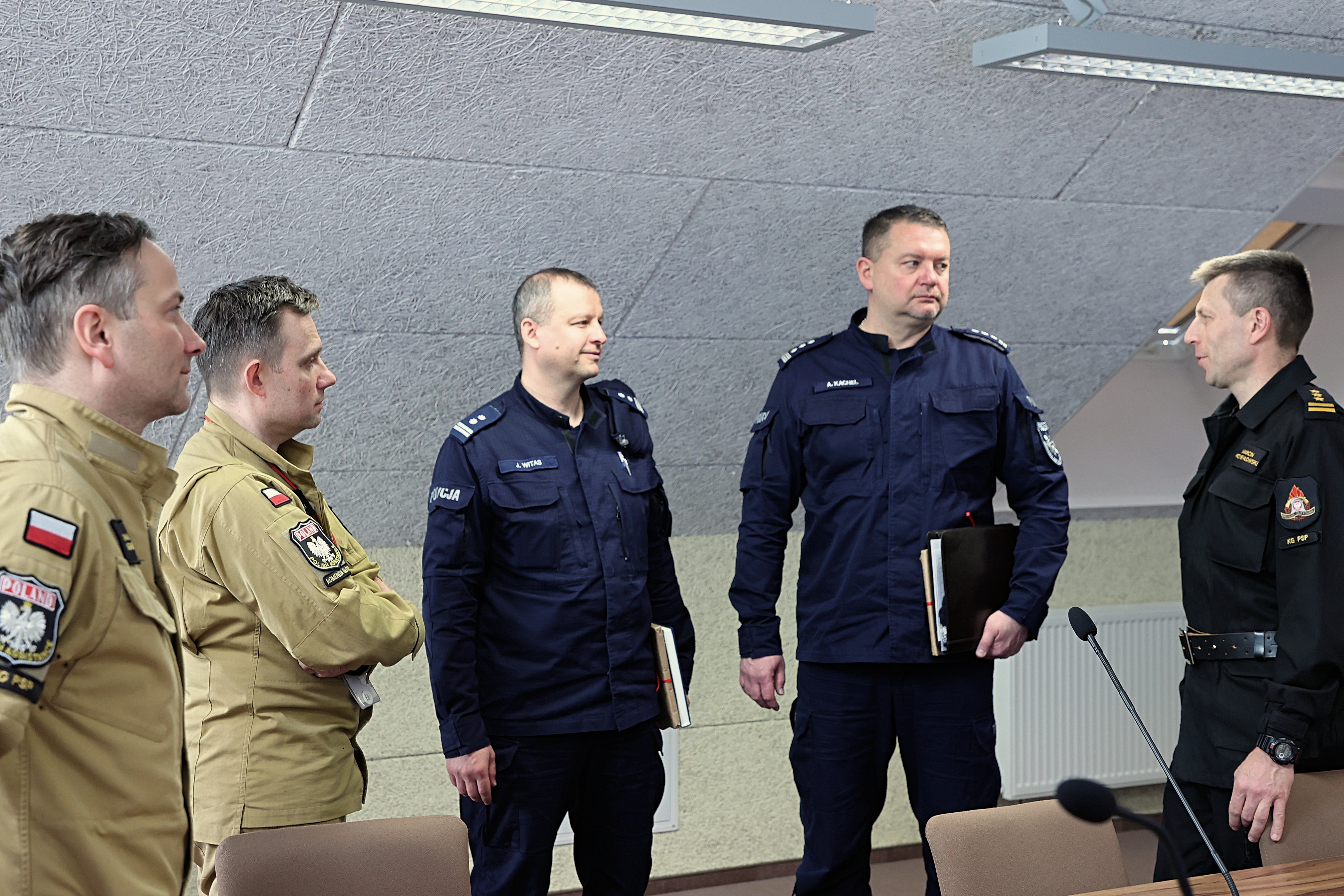 Spotkanie kierownictwa Głównego Sztabu Policji oraz Biura Planowania Operacyjnego Komendy Głównej Państwowej Straży Pożarnej