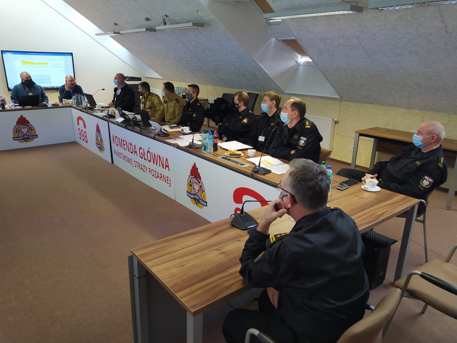 Z ramienia Komendy Głównej PSP w spotkaniu uczestniczyli pod przewodnictwem zastępcy komendanta głównego PSP nadbryg. Arkadiusza Przybyły, przedstawiciele Biura Planowania Operacyjnego, Biura Edukacji oraz koordynator Ratownictwa Medycznego Służby.