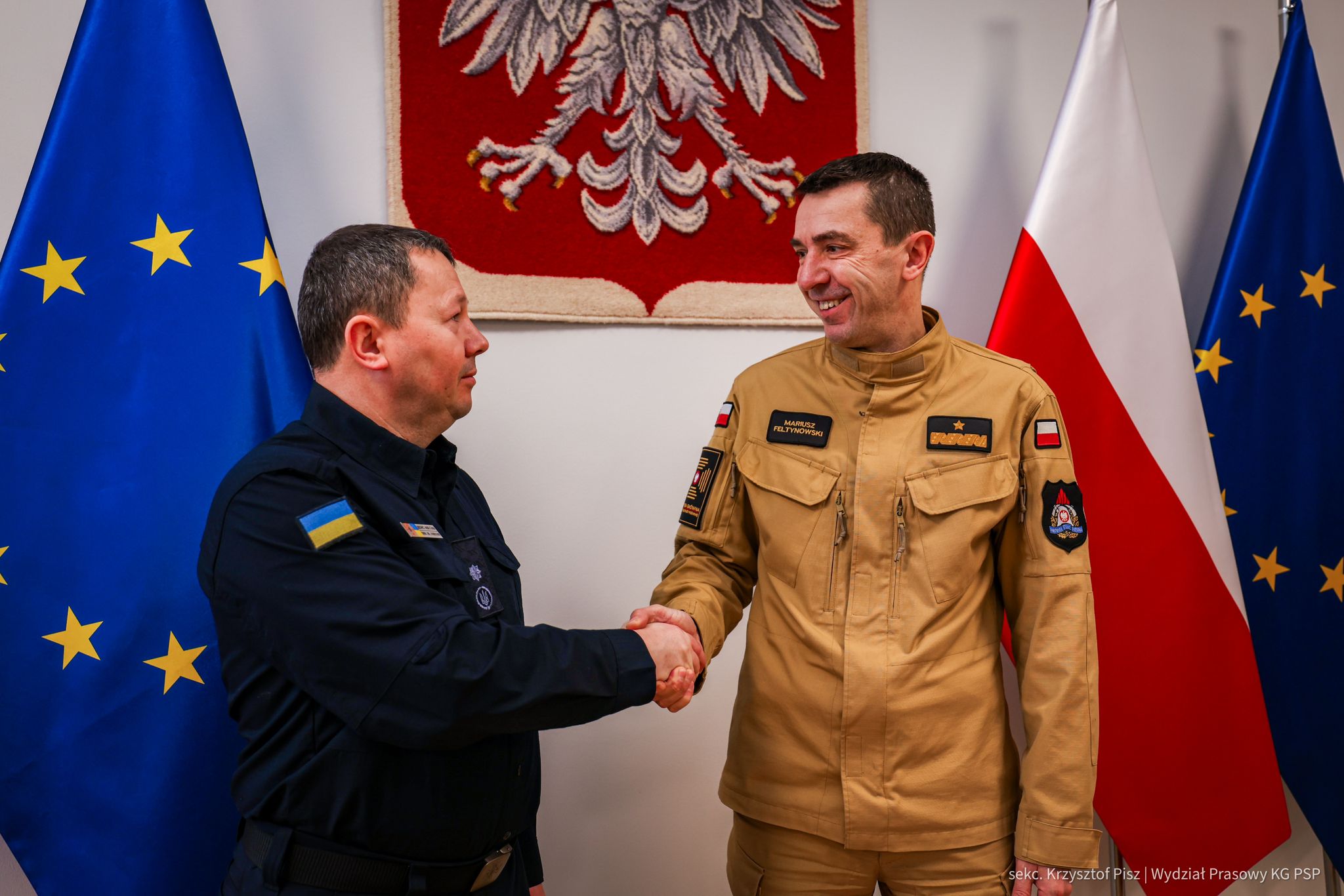 19 grudnia br. komendant główny PSP nadbryg. dr inż. Mariusz Feltynowski gościł Volodymyra Demchuka - Zastępcę Szefa Państwowej Służby Ukrainy ds. Sytuacji Nadzwyczajnych (DSNS). Przedstawiciele DSNS przebywają w Polsce w ramach kolejnego etapu projektu "Poprawa efektywności działań grupy poszukiwawczo-ratowniczej Ukrainy", realizowanego ze środków programu Polska Pomoc.