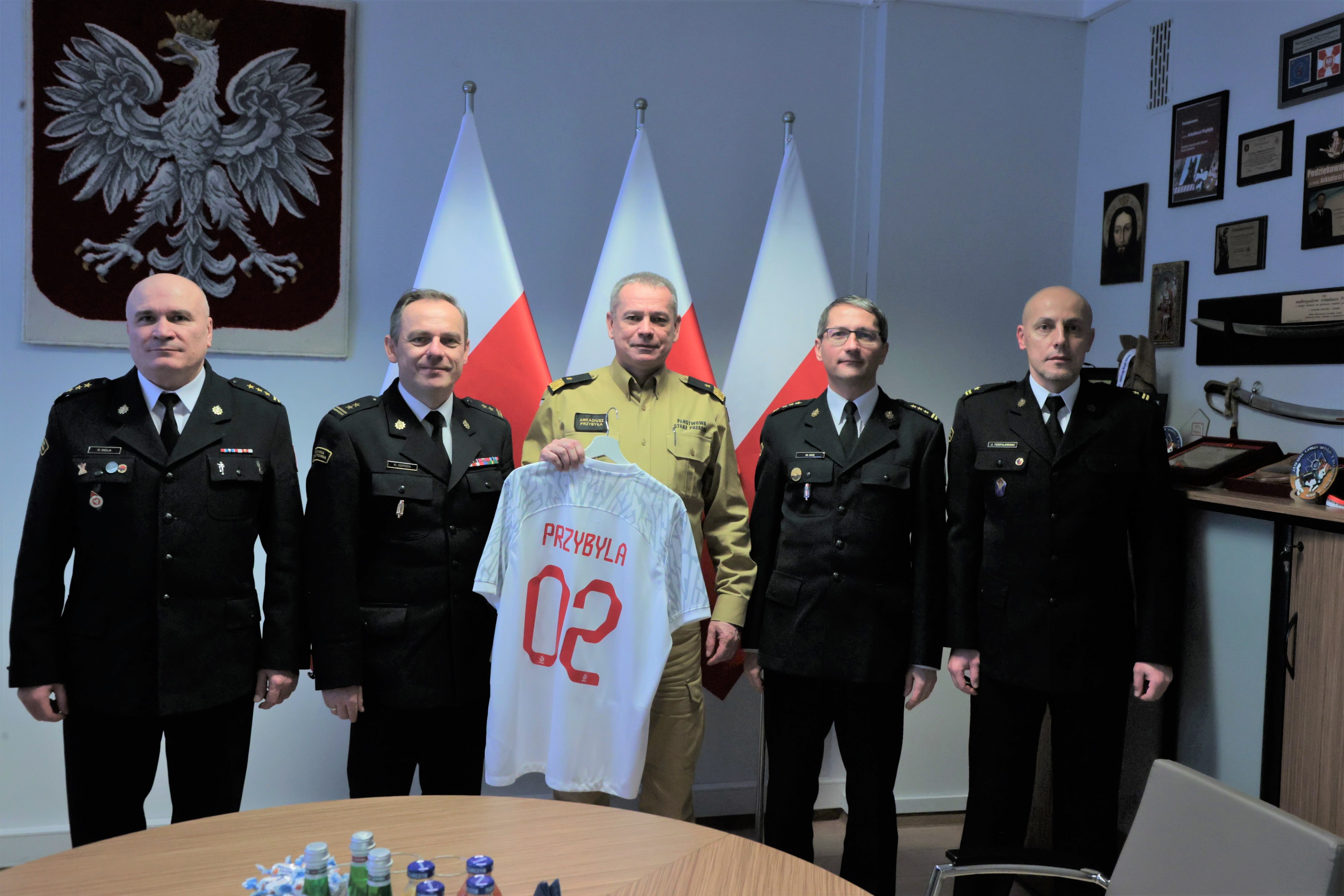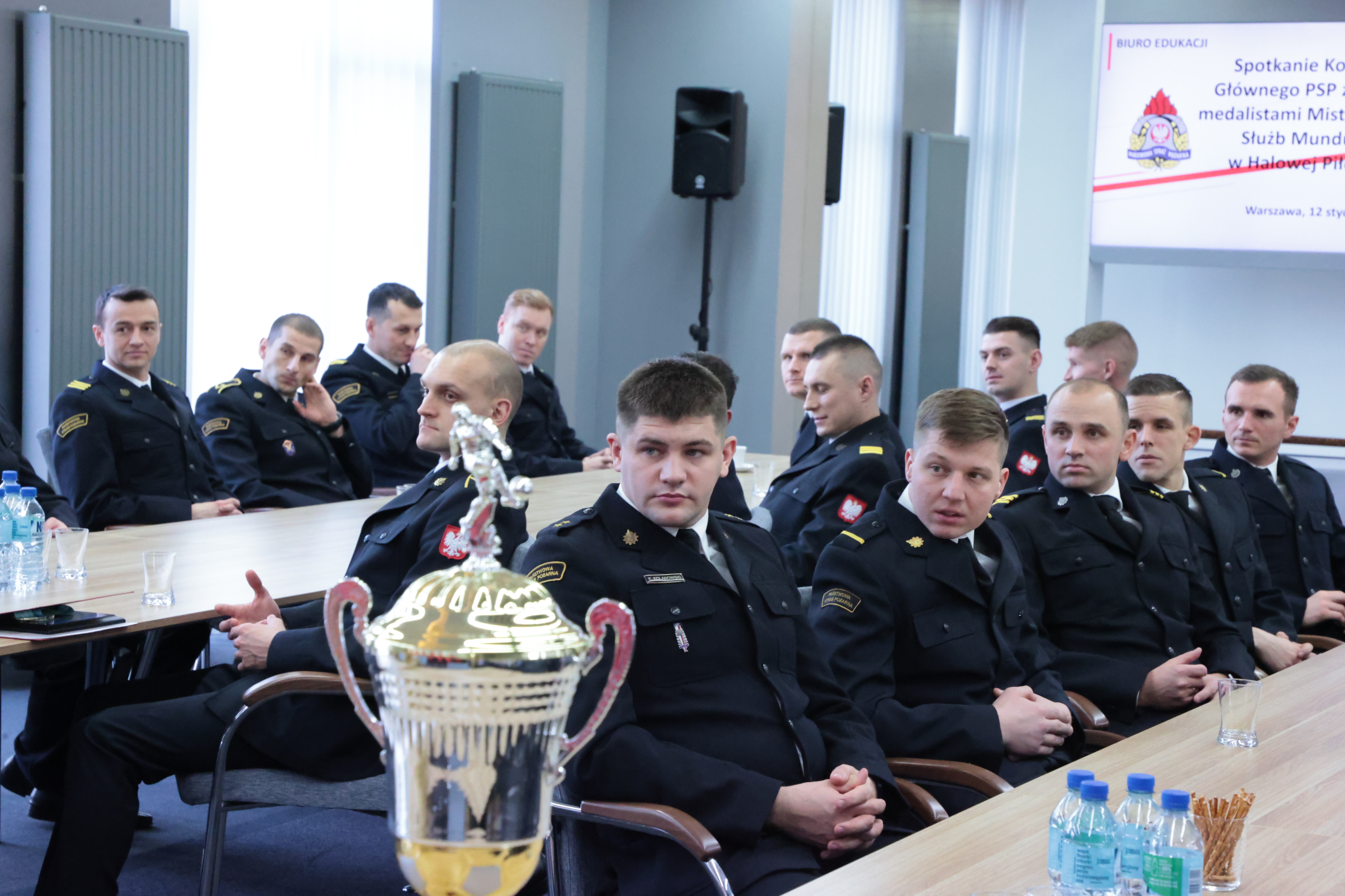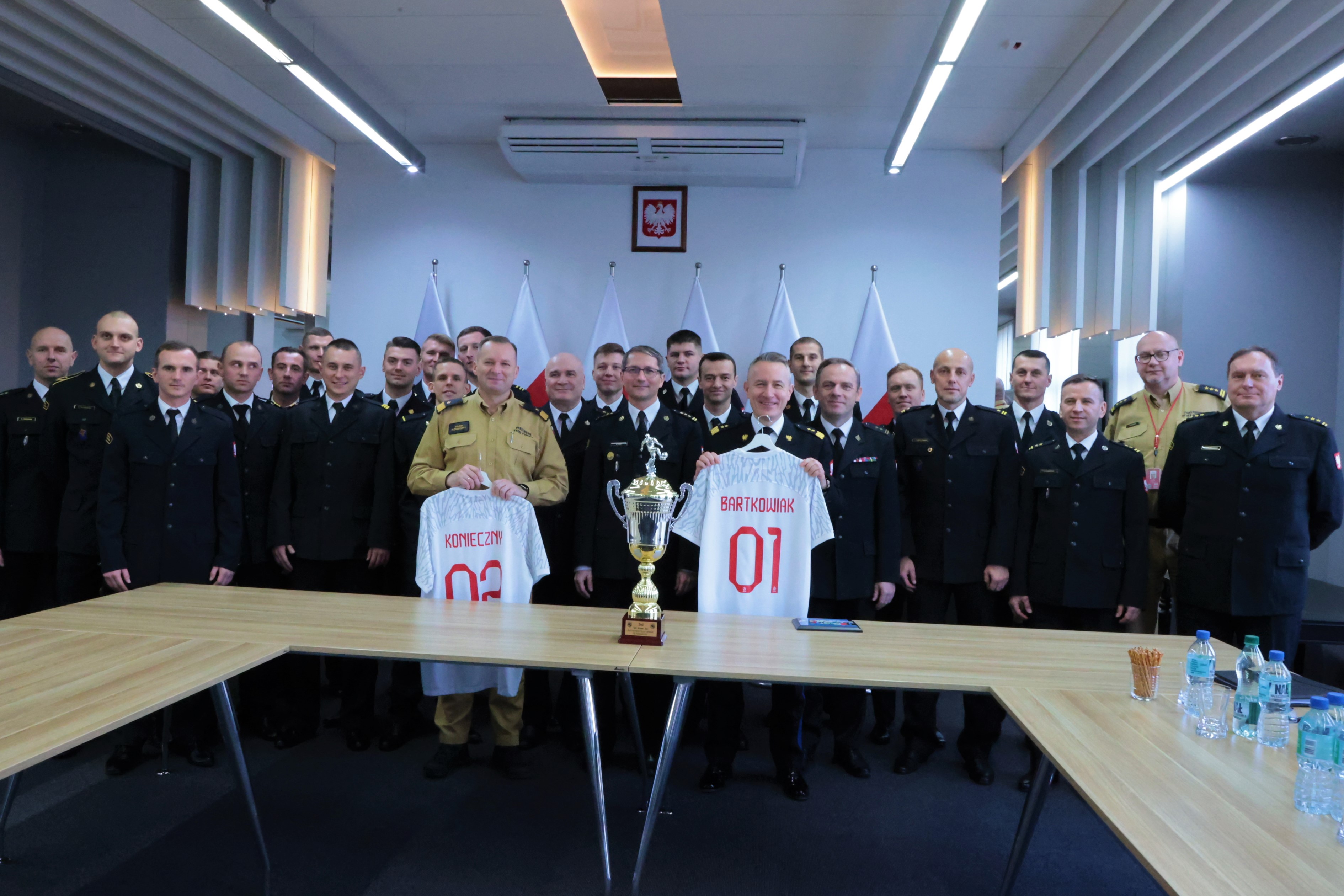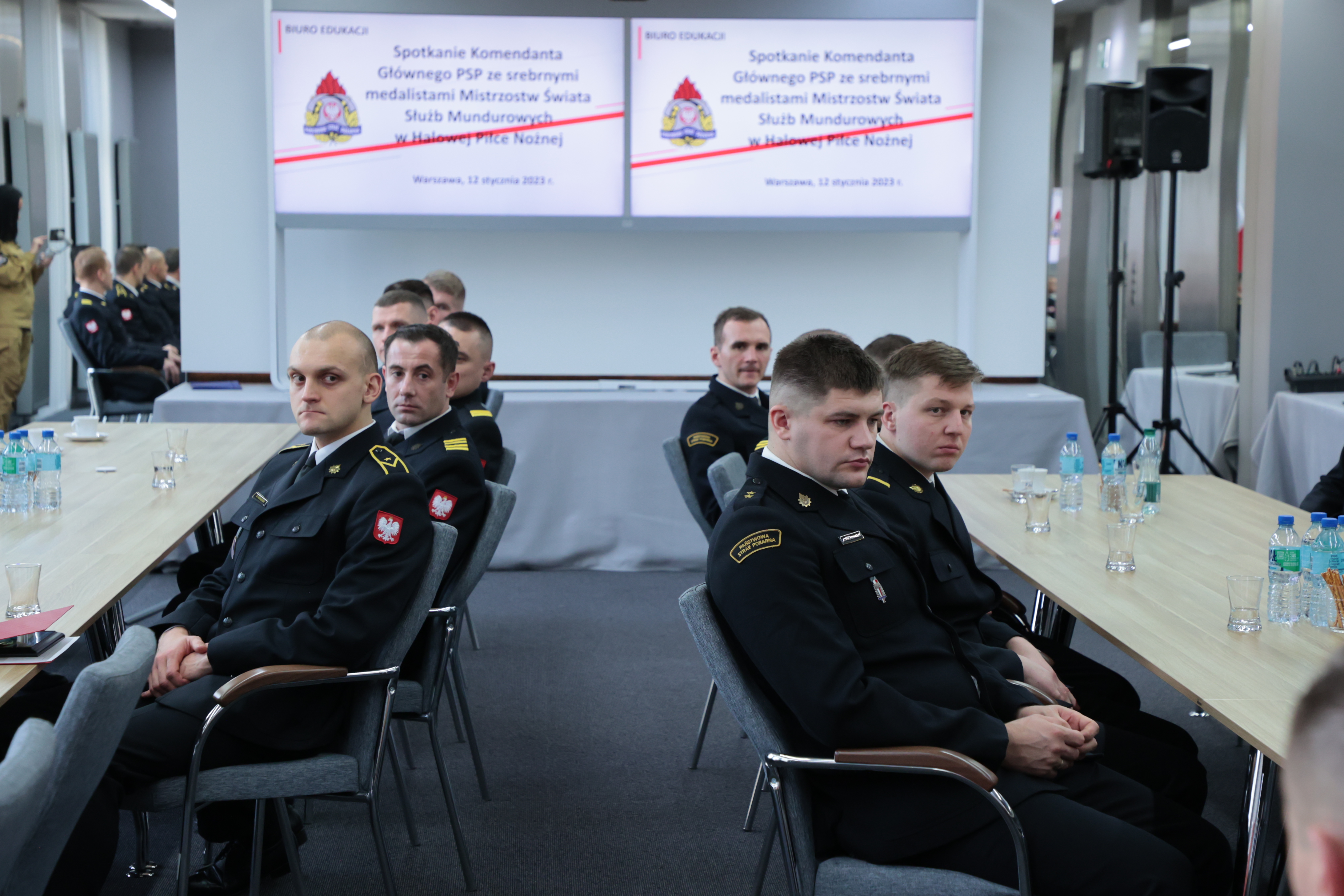 Spotkanie Komendanta Głównego PSP ze srebrnymi medalistami Mistrzostw Świata Służb Mundurowych w Halowej Piłce Nożnej