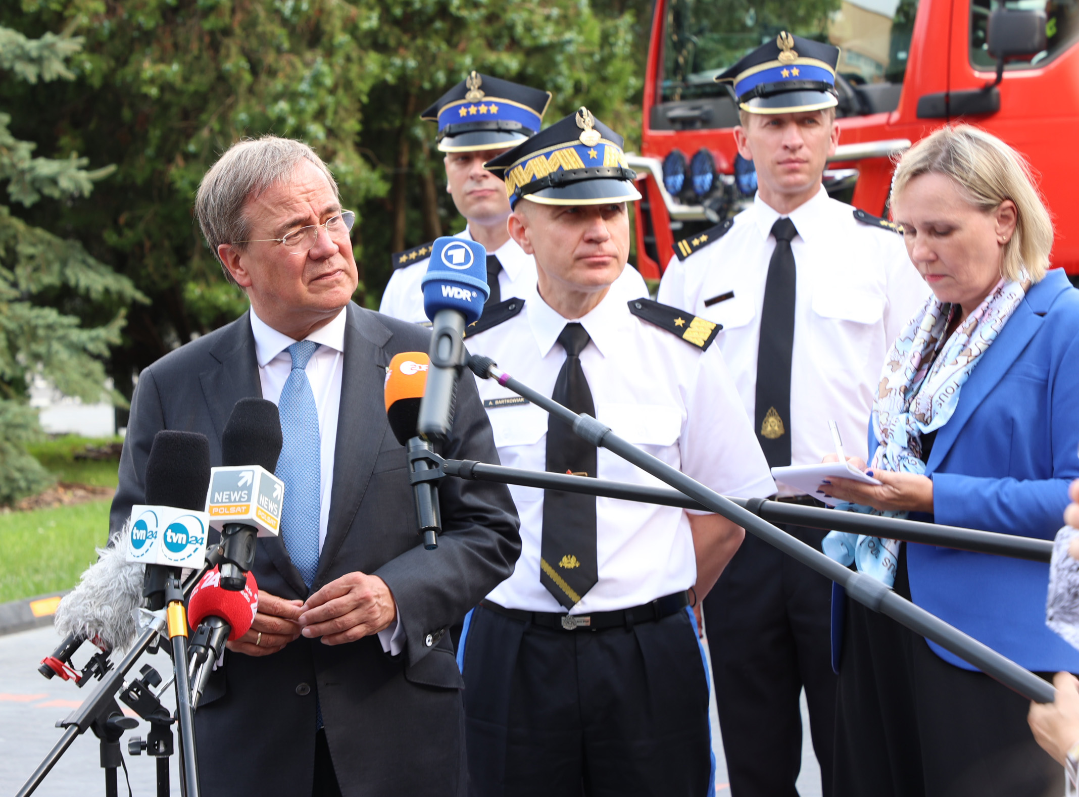 Komendant Główny Państwowej Straży Pożarnej nadbryg. Andrzej Bartkowiak spotkał się w sobotę 31.07.2021r. z premierem Nadrenii Północnej-Westfalii Arminem Laschetem Tematem spotkania była m.in. pomoc, której polscy strażacy udzielili Niemcom po niedawnej powodzi.