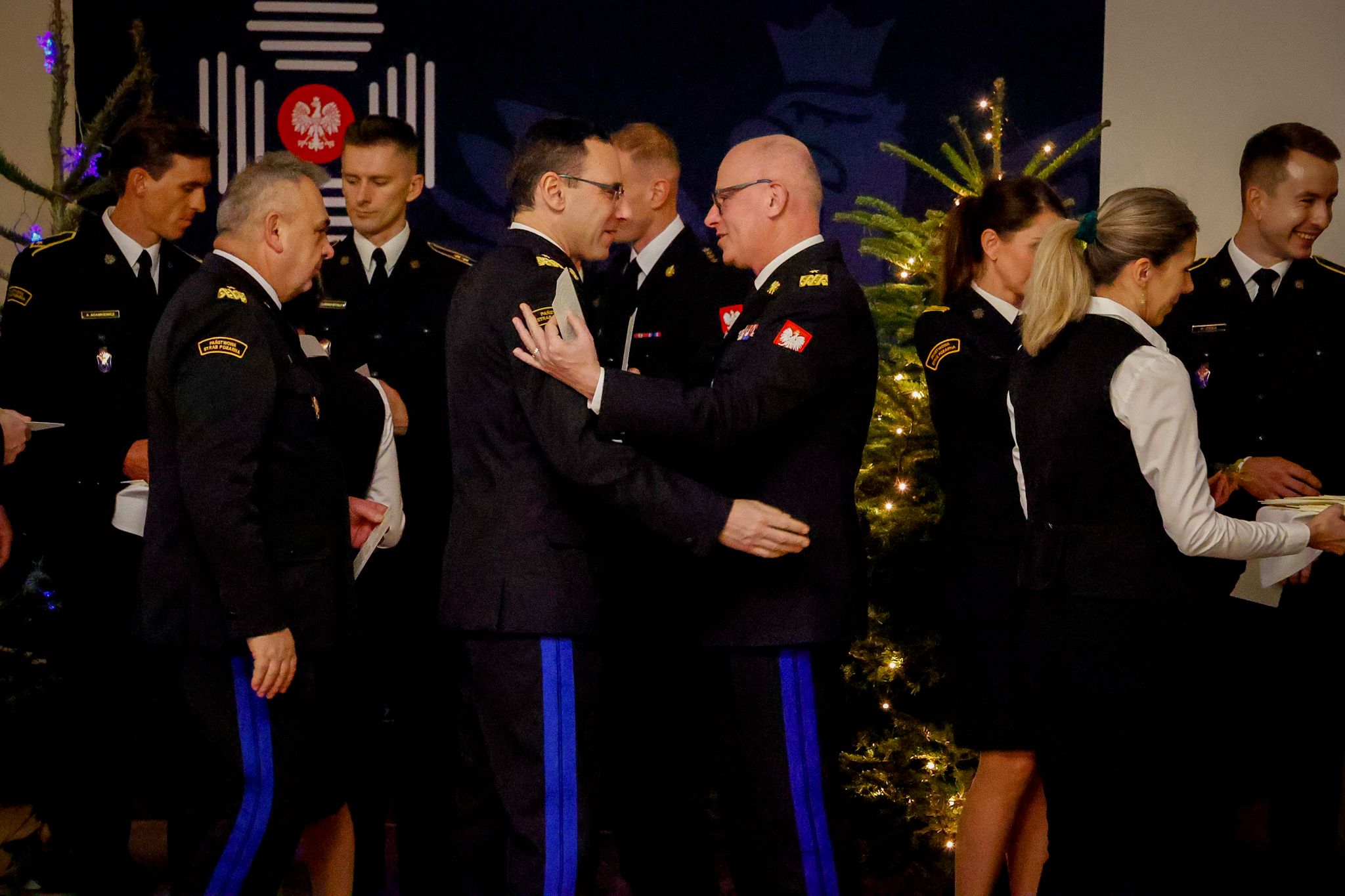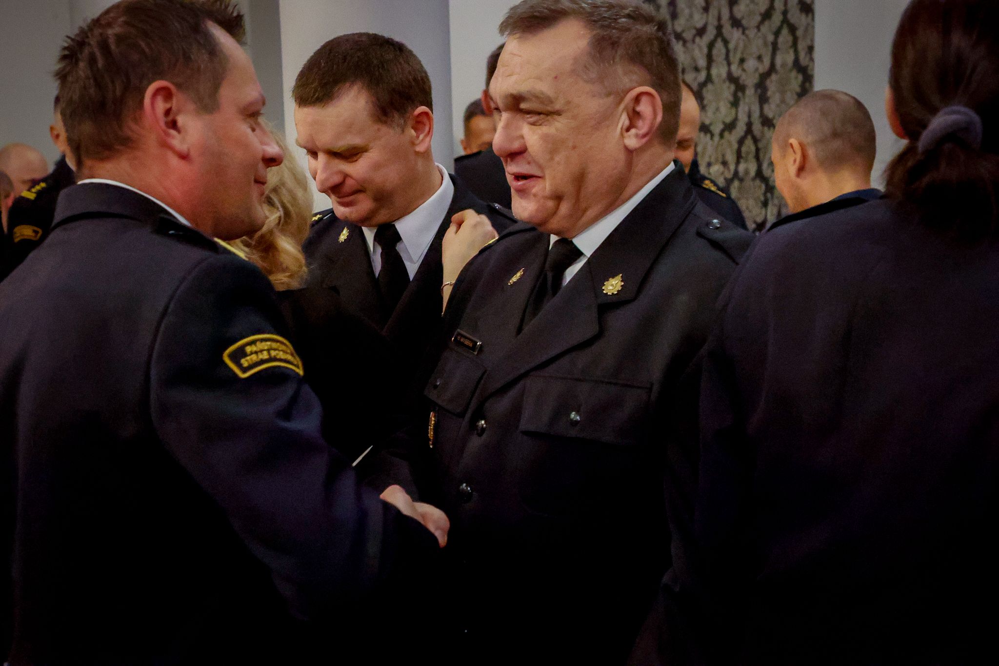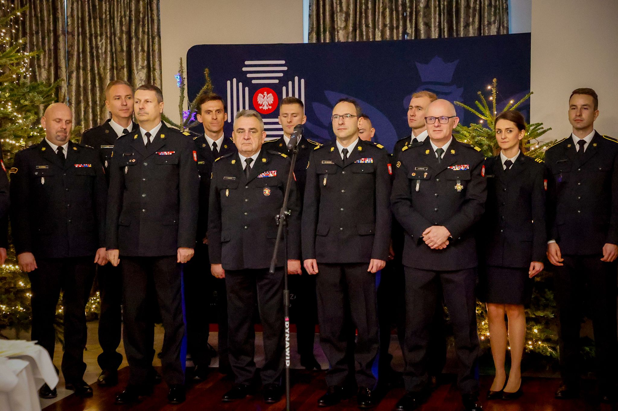 Komendant główny Państwowej Straży Pożarnej nadbryg. Wojciech Kruczek, w imieniu własnym oraz Zastępców, przekazał wszystkim funkcjonariuszom i pracownikom cywilnym, a także ich rodzinom, serdeczne życzenia bożonarodzeniowe i noworoczne. W swoim wystąpieniu podziękował za zaangażowanie, profesjonalizm i odpowiedzialność. Podkreślił, że to właśnie codzienna gotowość do działania, wzajemne wsparcie i poczucie wspólnoty sprawiają, że Państwowa Straż Pożarna może skutecznie realizować swoją misję – służbę drugiemu człowiekowi.