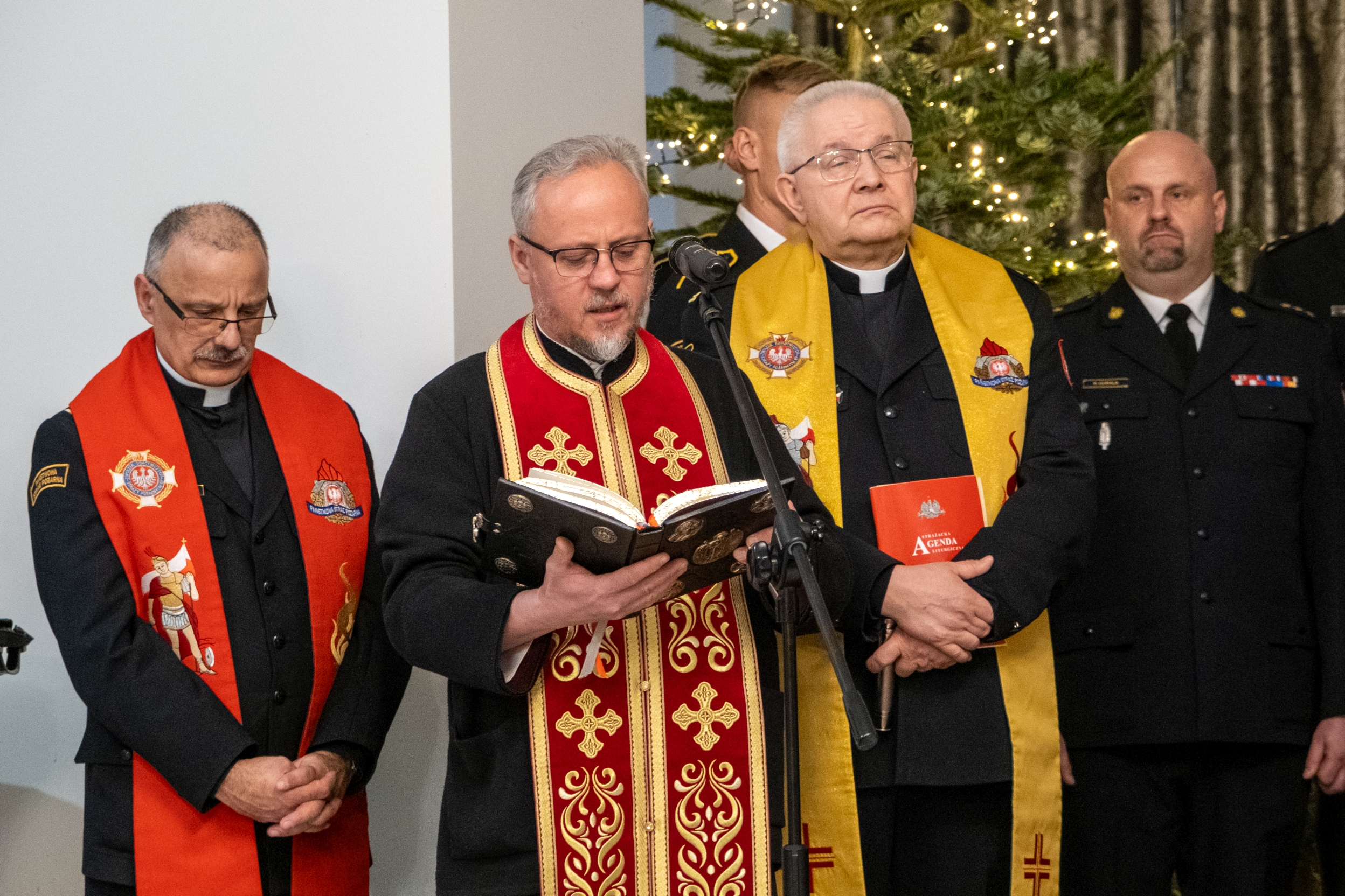 Boże błogosławieństwo przekazali wszystkim obecni na spotkaniu kapelani krajowi strażaków. Następnie uczestnicy spotkania wspólnie przełamali się poświęconym opłatkiem, składając sobie życzenia.