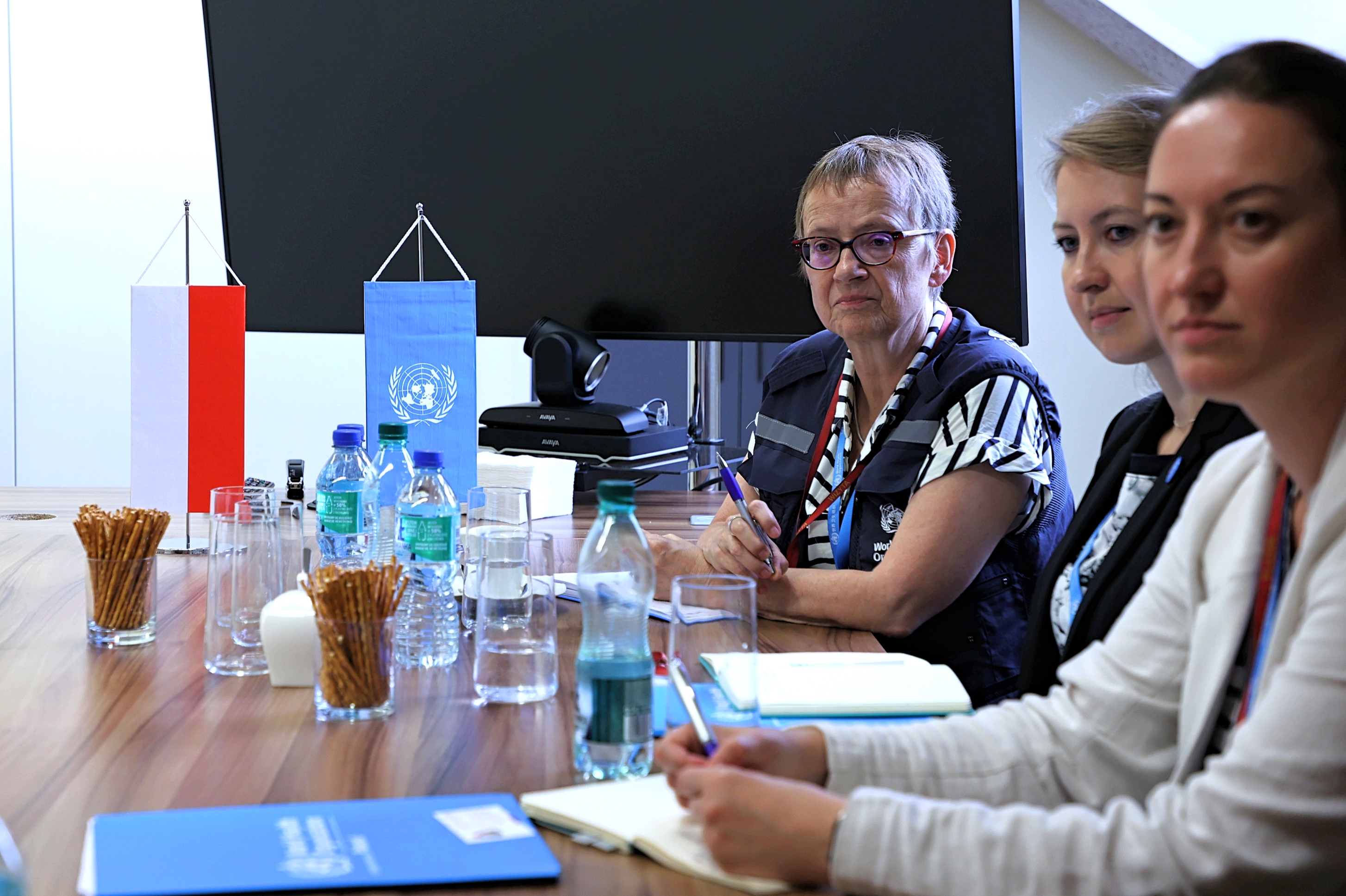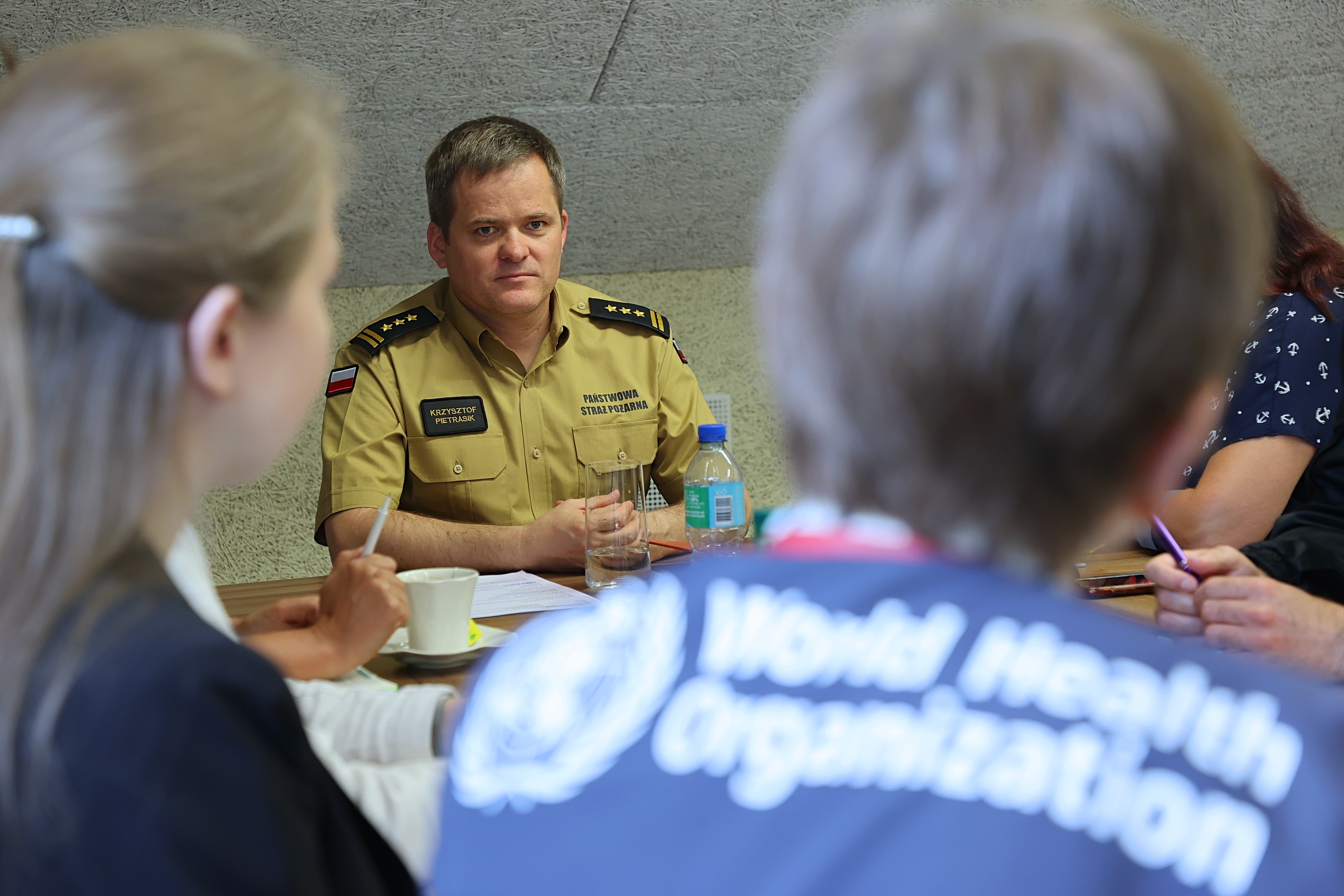 Delegacji WHO Polska przewodniczyła p. Patricia Kormoss, manager ds. incydentów WHO Polska, a towarzyszyły jej Panie Olga Khan i Joanna Brzezińska, odpowiedzialne za zdrowie psychiczne oraz Paulina Nowicka, która odpowiada za organizację warsztatów poświęconych monitorowaniu wystąpienia zagrożeń zarówno epidemicznych jak i z zakresu CBRNE.